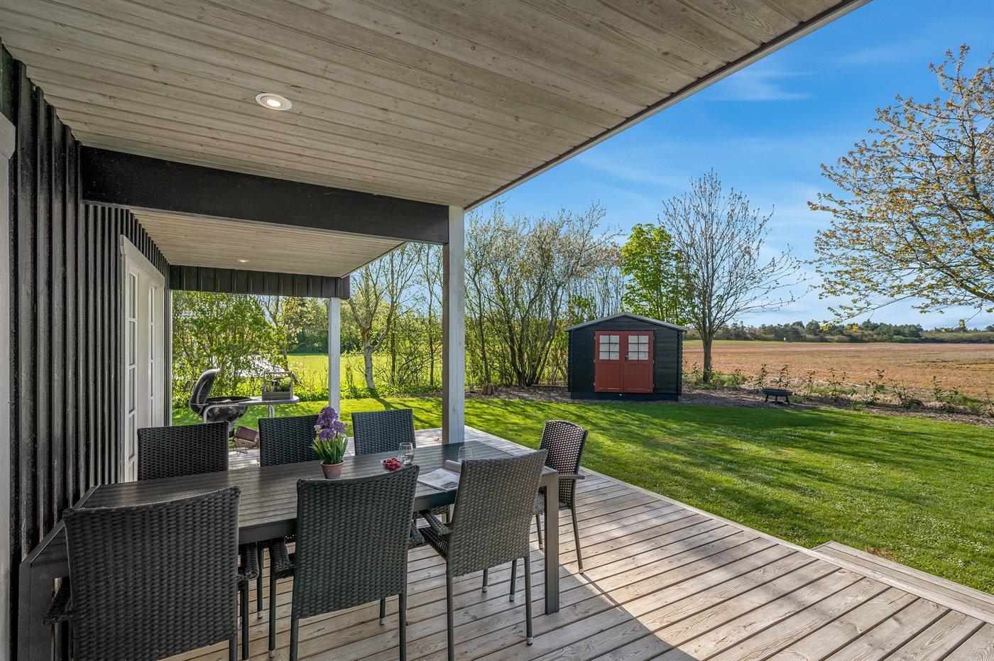 Ferieboligen er beliggende på en 1000 m² stor naturgrund. Der er 13500 m til havet. Der er 850 m til fjorden. Nærmeste forretning er beliggende i en afstand af 400 m. Desuden er der 20 m² overdækket terrasse. Sandkasse. Der er installeret stik til opladning af elbil. Type 2 stik. Med 11 kW ladeeffekt. Parkering ved ferieboligen.
