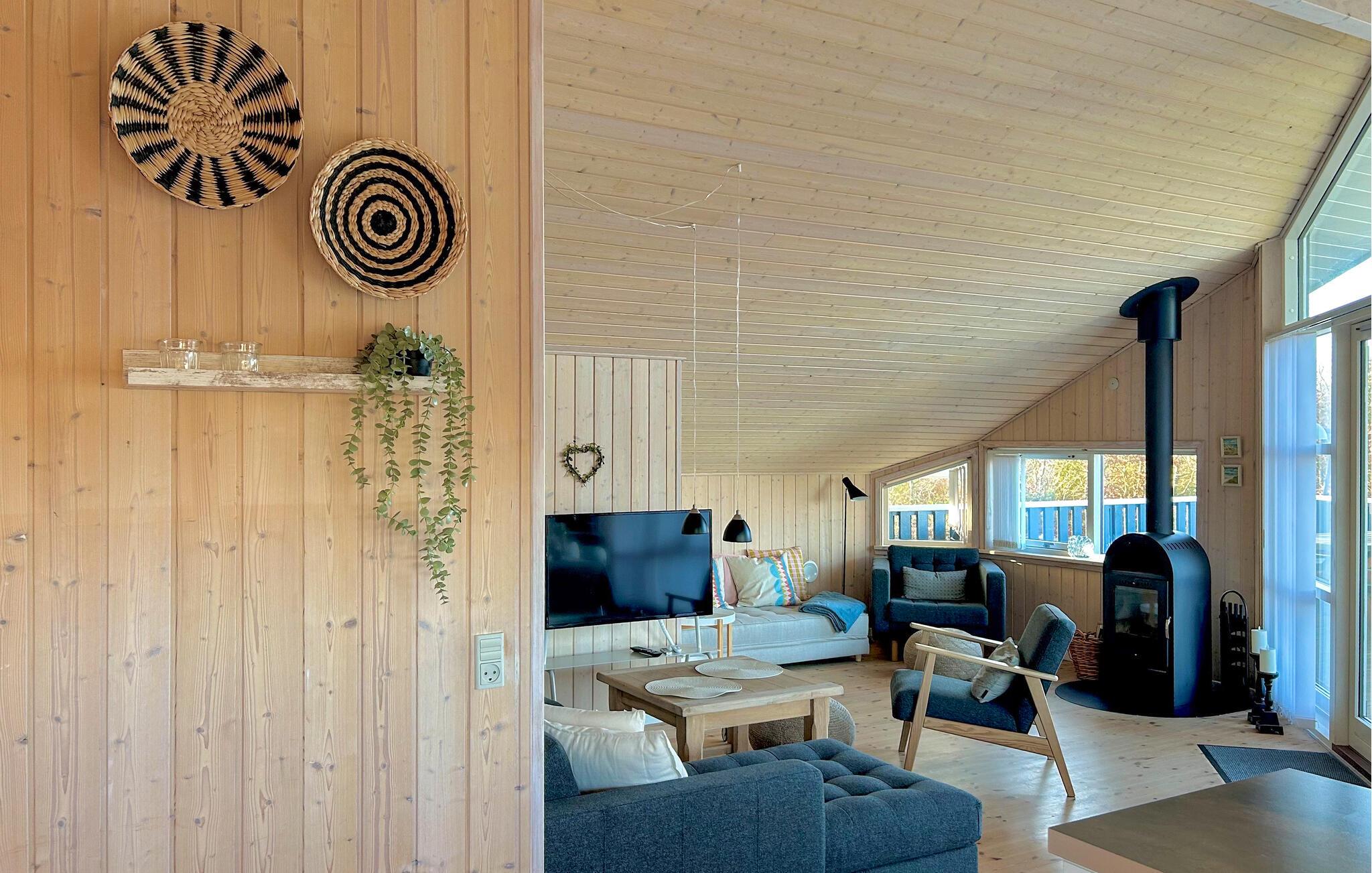 Der er lagt op til nogle fredfyldte dage i dette attraktive feriehus, som ligger i gåafstand fra stranden. Den lyse opholdsstue med store vinduer sikrer, at I fuldt ud kan nyde nærheden til naturen. Nyd ren afslapning i saunaen og spabadet, og efter en aktiv dag kan I finde jer til rette i siddegruppen ved den blidt knitrende brændeovn, hvor I kan snakke til langt ud på aftenen.