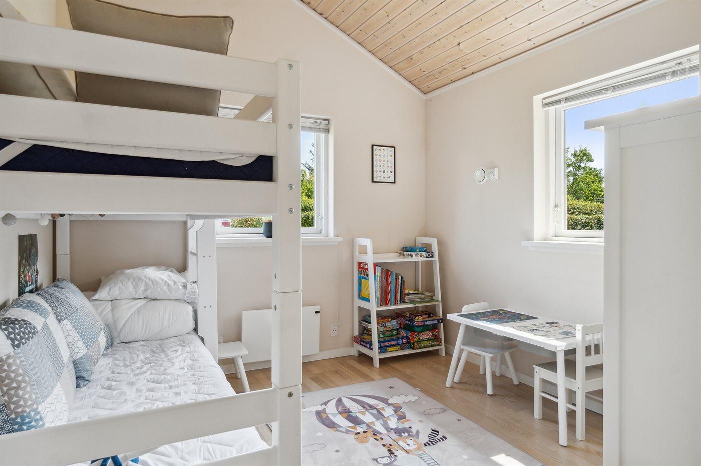 Der er i alt 3 soveværelser. Sovepladserne fordeler sig på: 2 sovepladser i dobbeltseng. 2 sovepladser i køjeseng. 2 sovepladser i sovesofa (dobbelt). Derudover er der 1 stk. barneseng.