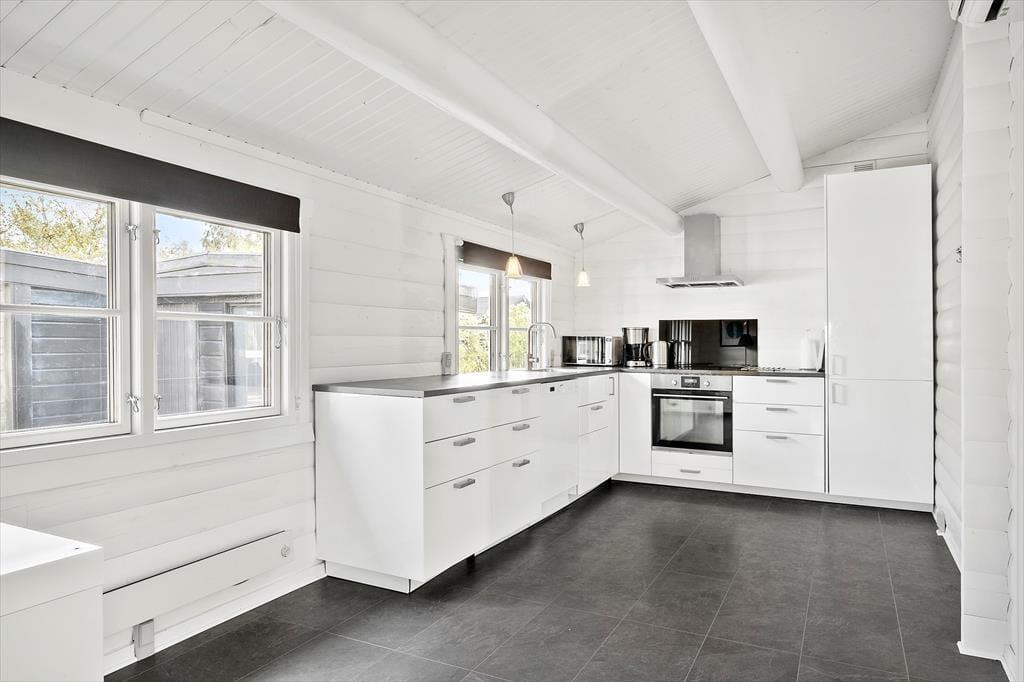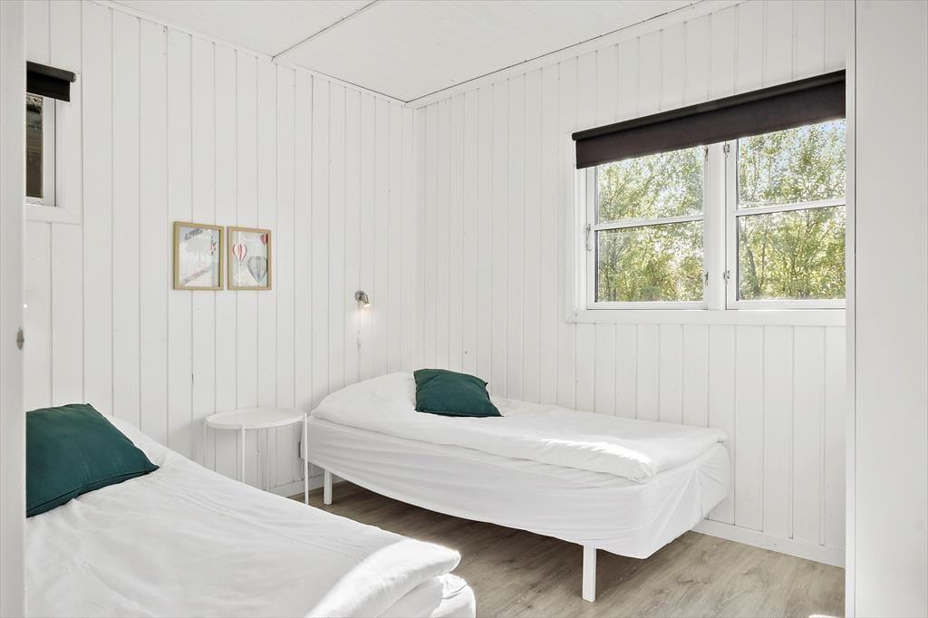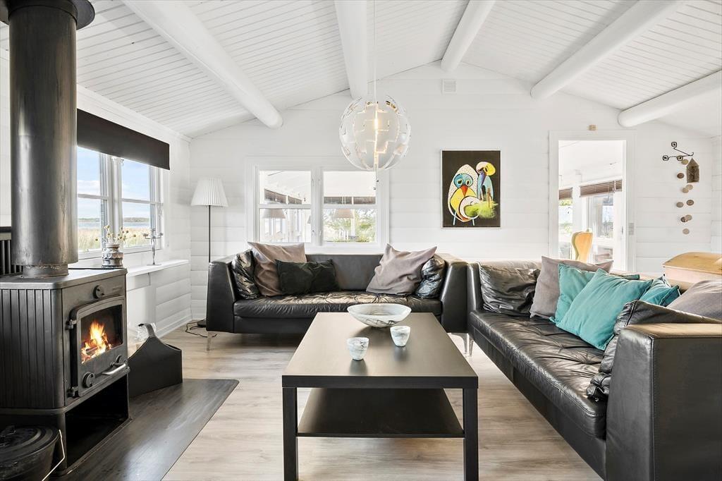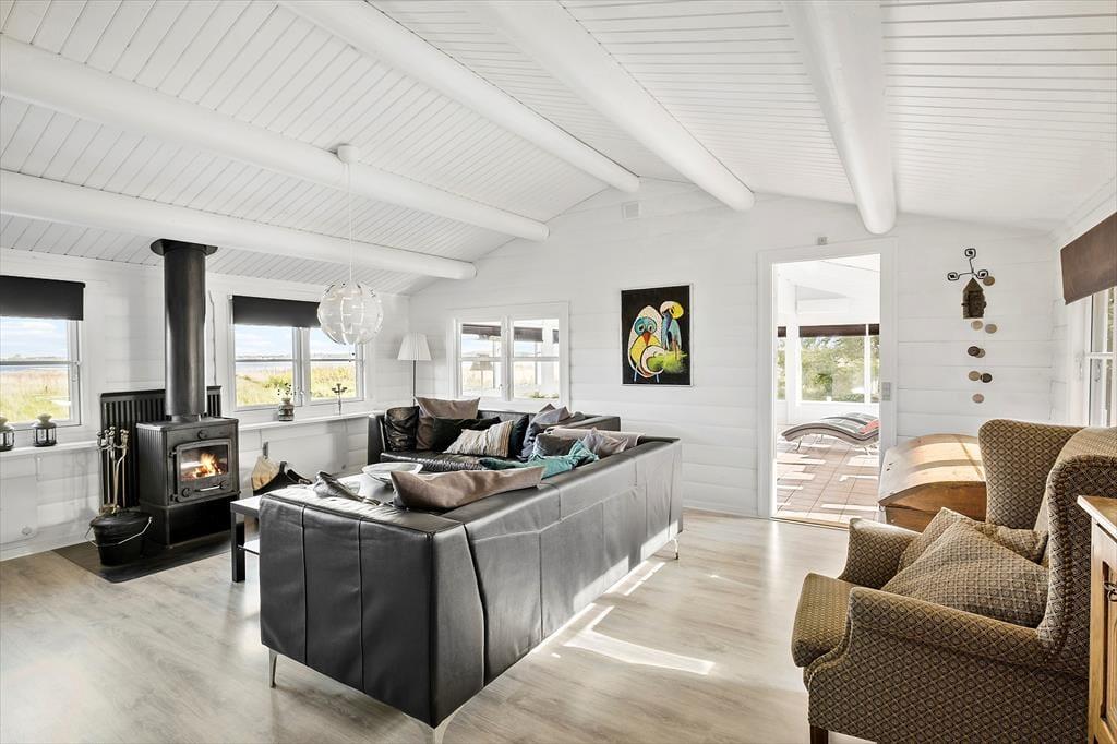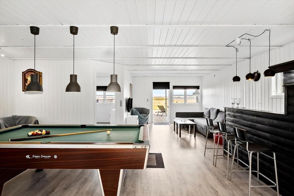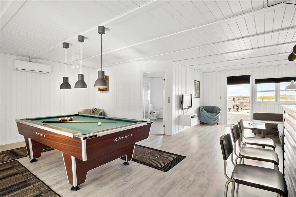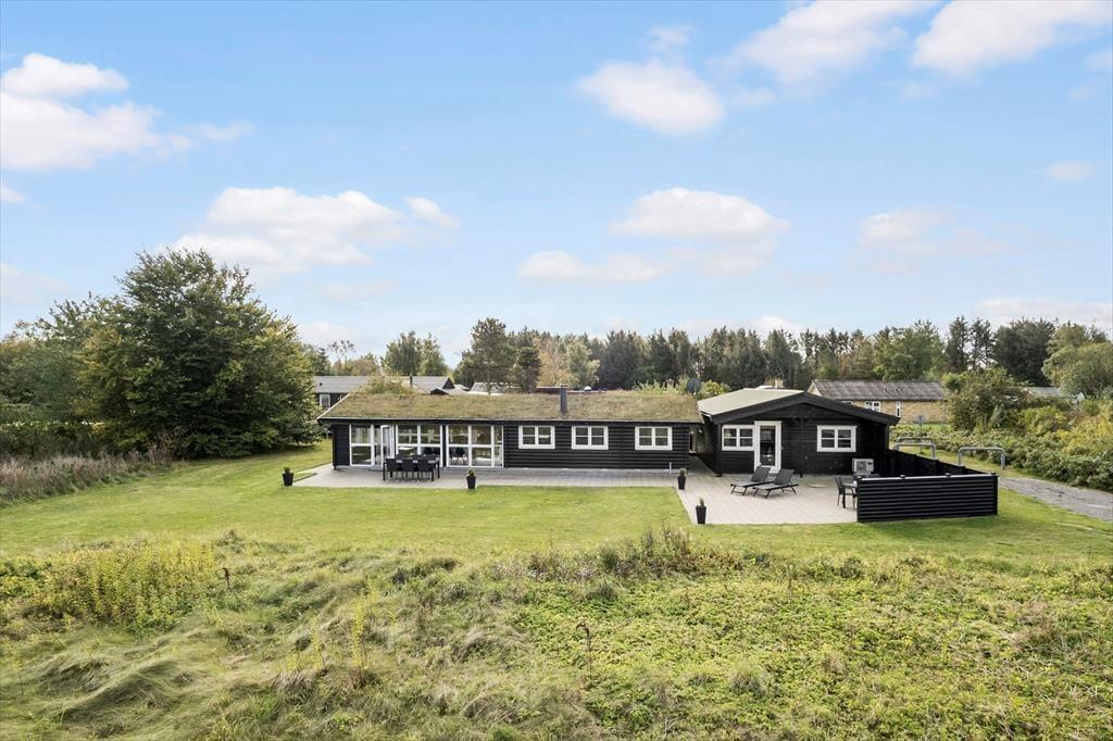 Sommerhuset er oprindeligt et bjælkehus, somer tilbygget og renoveret i 2018. Den oprindelige charme er bibeholdt både ude og inde med bl.a. sprossede ruder i det sortmalede hus samt græs på taget. Husets areal er fordelt med 98 m2 hus og 95m2 anneks. Der er to soverum i hovedhuset med 1 dobbeltseng (2 separate senge, som står sammen) og 2 enkeltsenge. I annekset er der ligeledes to soverum, som hver har 2 enkeltsenge. De sidste to sovepladser består af en dobbelt sovesofa, som står i opholdsrummet i annekset. I annekset er der aktivitetsrum med bar, dart, spillekonsol (PS2) og billard - der er tænkt på underholdning for hele familien, også når det ikke er vejr til at opholde sig udendørs. Huset er særdeles veludstyret med alt i hårde hvidevarer, dansk TV (inkl. TV2) samt tysk TV og naturligvis gratis og ubegrænset Wi-fi.