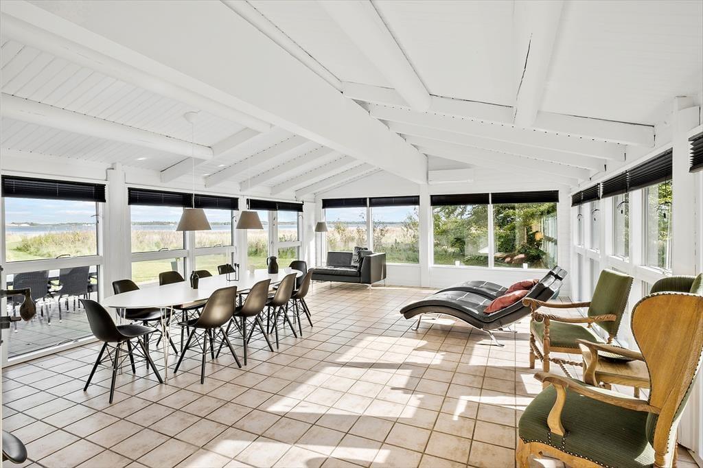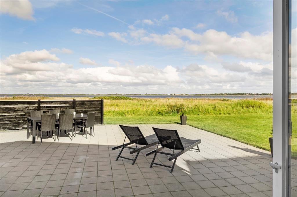 Flere dejlige terrasser omgiver huset, så man kan opholde sig direkte ud mod fjorden men også i "gården", hvor der kan være mere læ. I har naturligvis gode havemøbler og således alle muligheder for at hygge jer og nyde de smukke omgivelser og den flotte natur.
