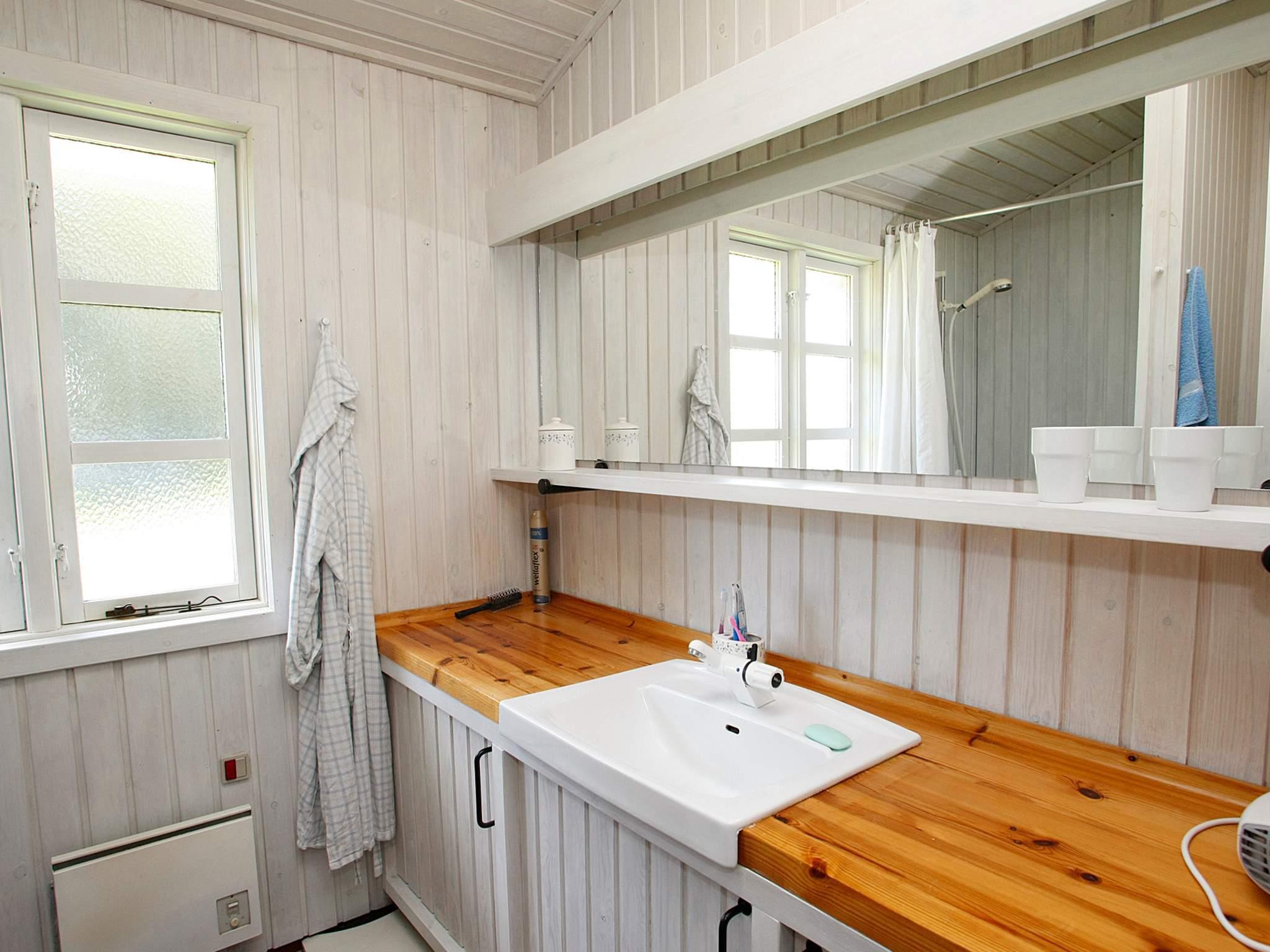 Sommerhus på stor, lyngbeklædt klitgrund. Huset har en stor, ugenert terrasse, hvor solen kan følges dagen lang. Der er ca. 900 m til det brusende Vesterhavet og de gode bademuligheder og her kan I også nyde solnedgangen, der gør Skiveren til noget ganske særligt. På campingpladsen i nærheden er der adgang til swimmingpool, legeplads, amerikansk minigolf og fitnesscenter fra april til oktober. Der er ca. 500 m til velassorteret supermarked og en café.