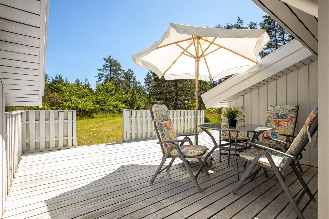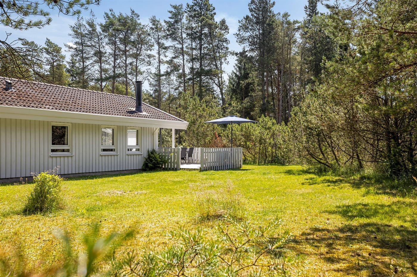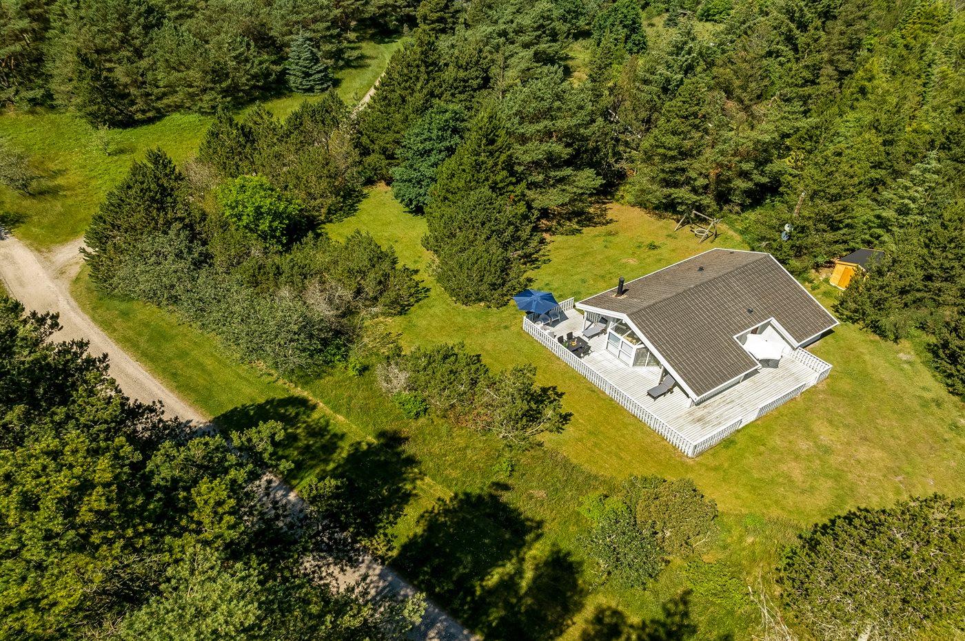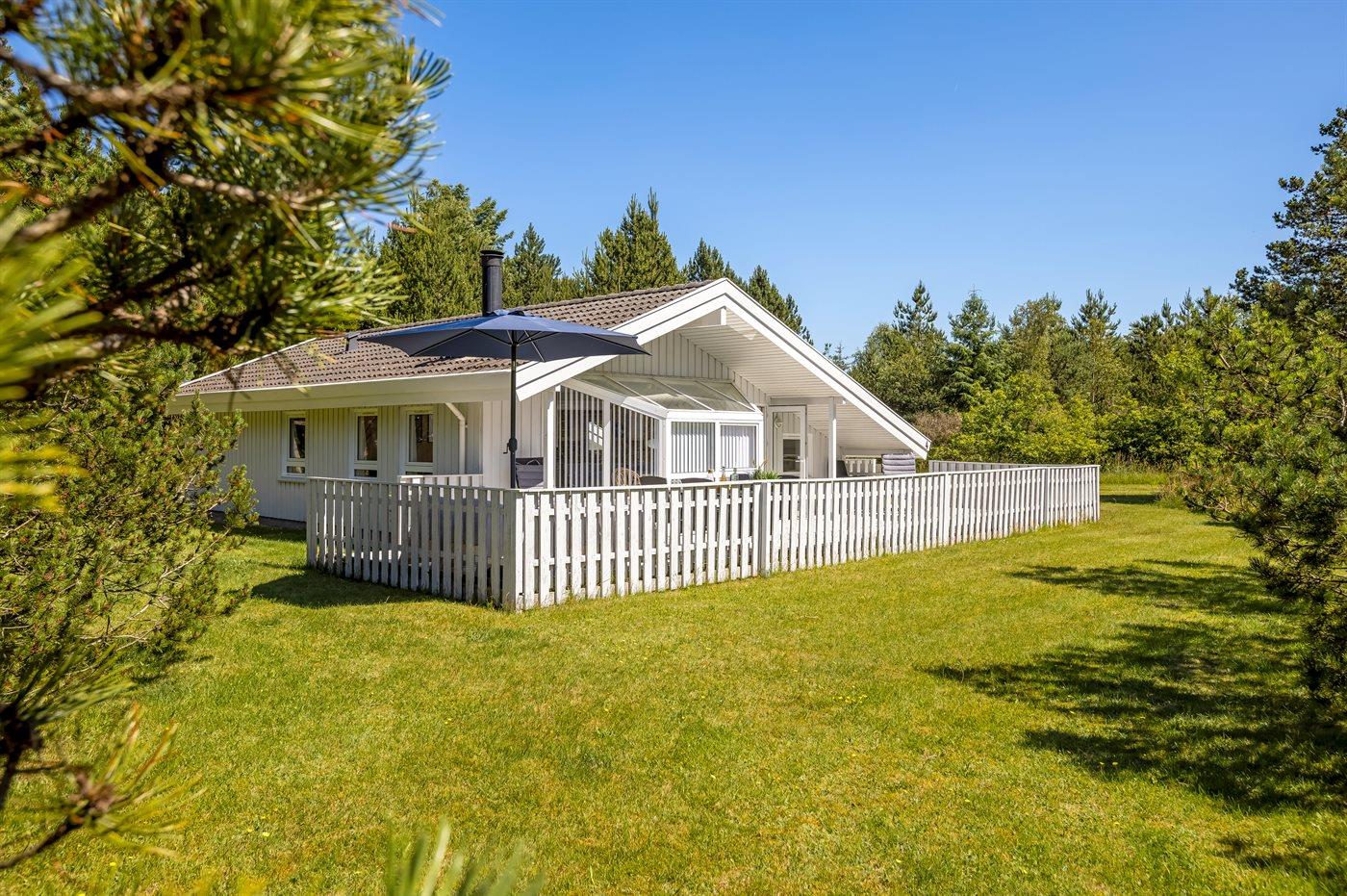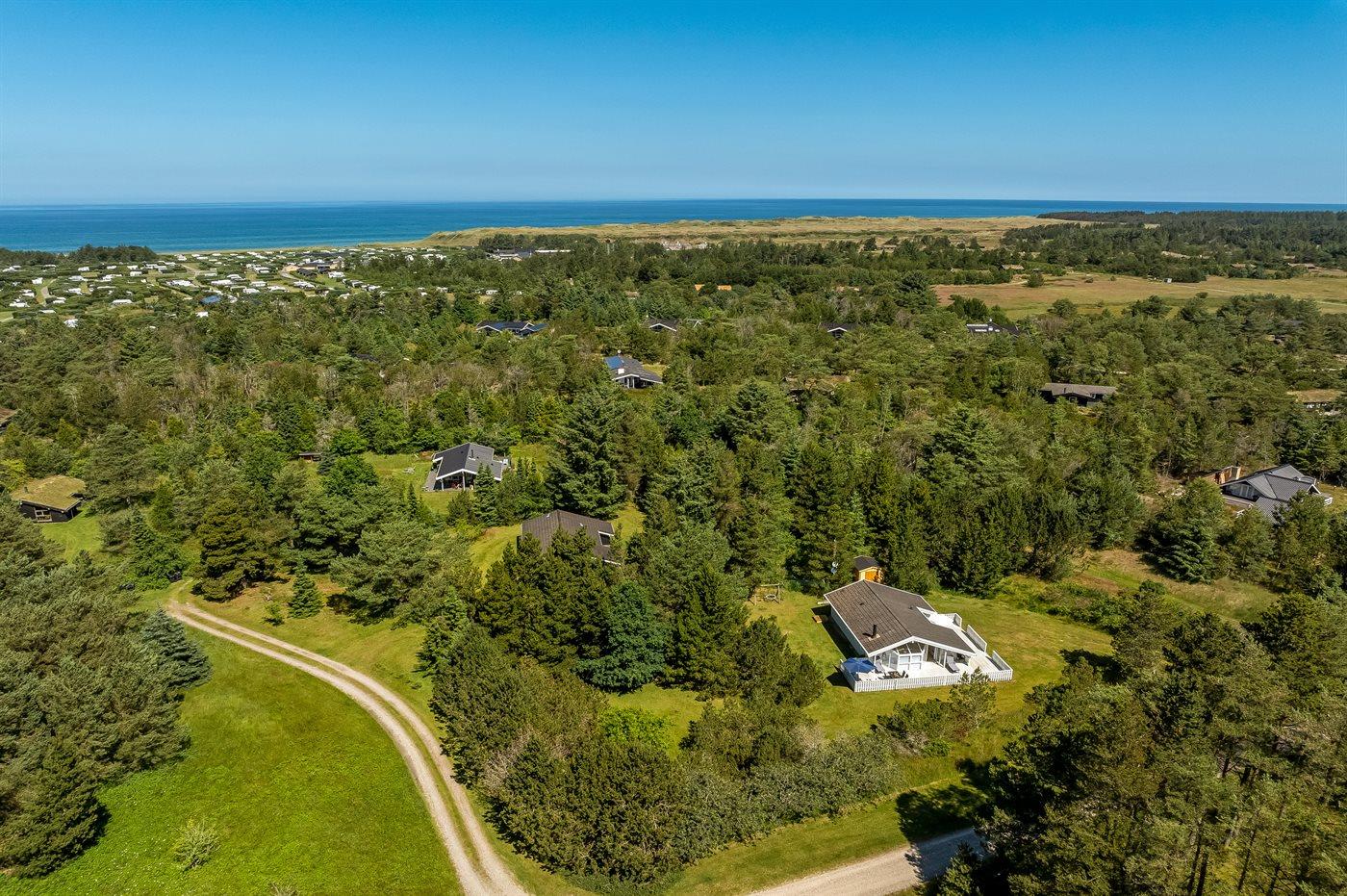 Tæt ved en af Vesterhavets bedste badestrande ligger dette pragtfulde sommerhus i træ. Huset er bygget i 1994 på en stor, børnevenlig naturgrund med høje træer. Til huset hører en stor, åben samt en overdækket terrasse med havemøbler og gasgrill. Vægge og lofter er beklædt med fyrrustik.