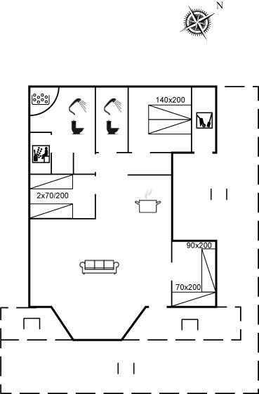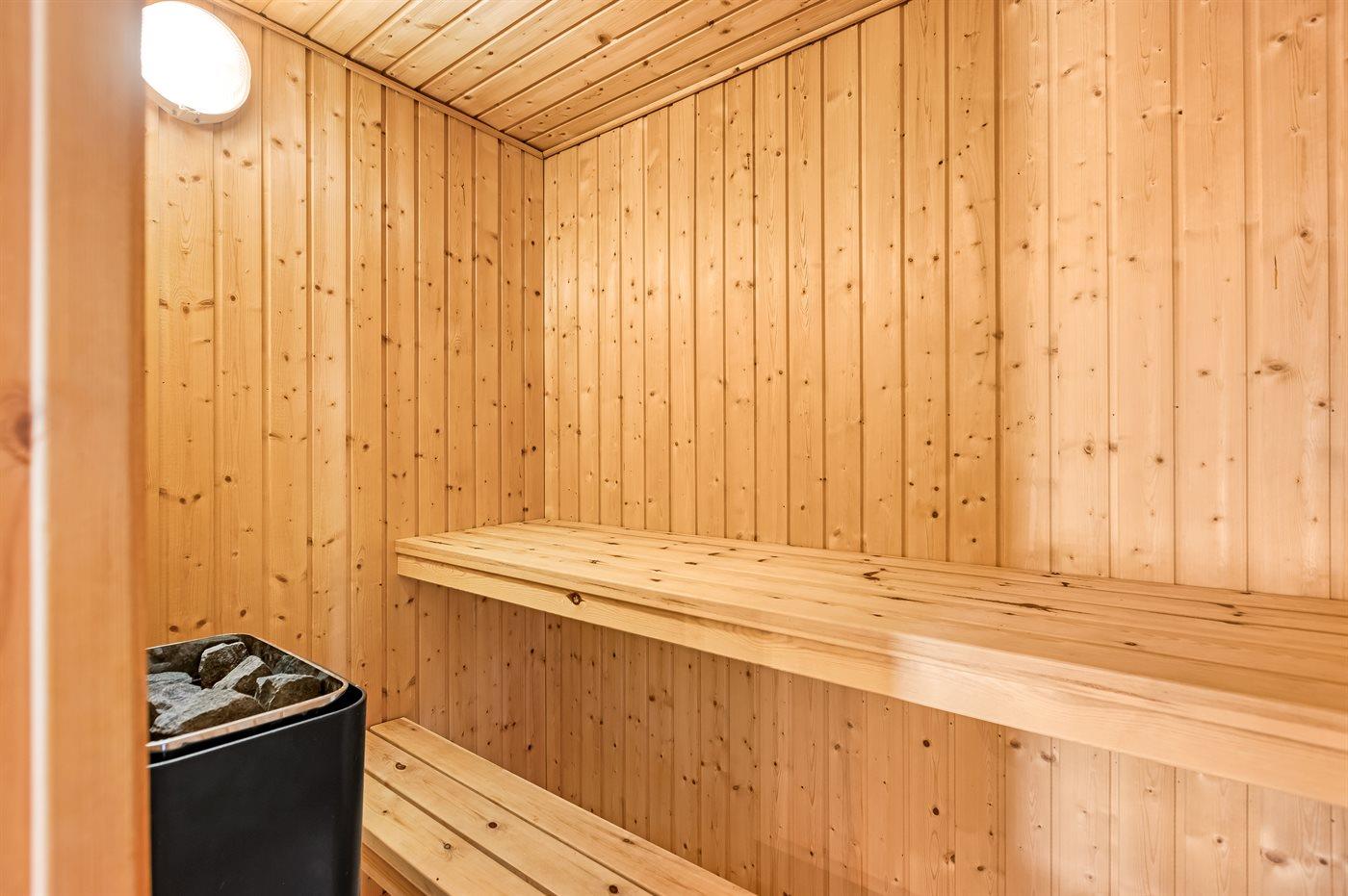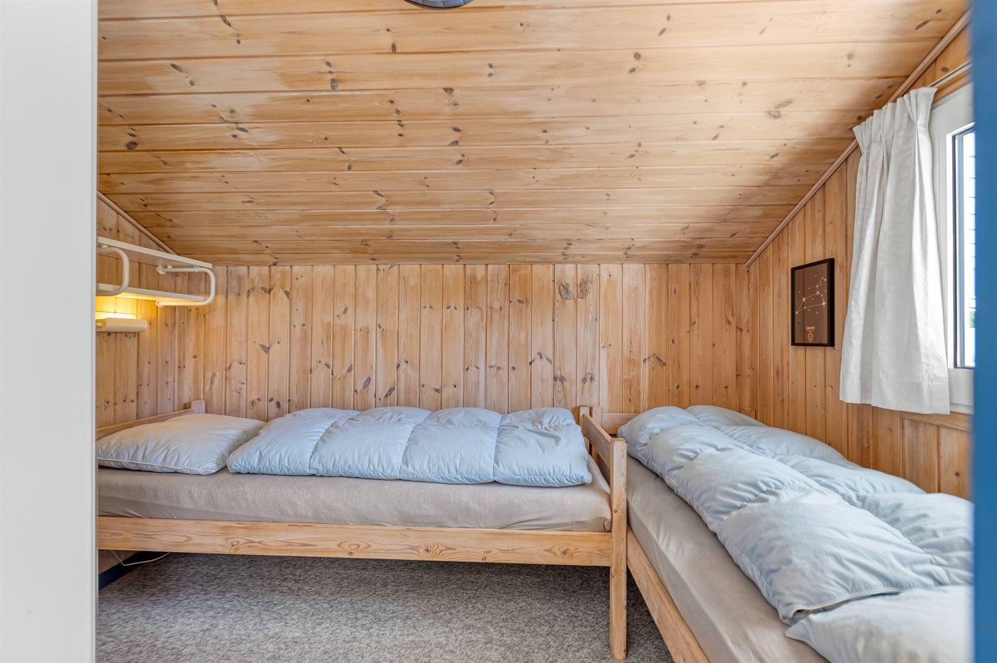 Lækkert, stort badeværelse med opvarmet klinkegulv, spa og bruseniche. Sauna. Ekstra badeværelse med bruser. 3 soveværelser; 1 med dobbeltseng og 2 med hver 2 enkeltsenge. Hems med 2 ekstra sovepladser (bedst egnet til større børn).