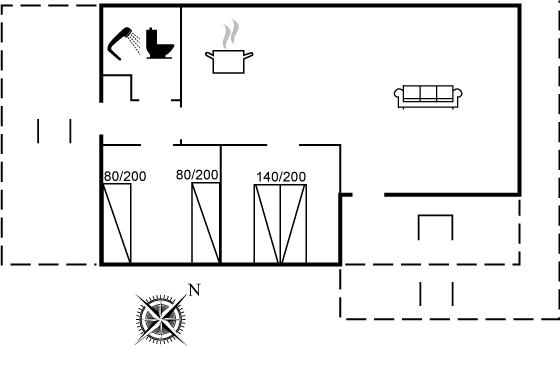 Der er i alt 2 soveværelser. Sovepladserne fordeler sig på: 2 sovepladser i dobbeltseng. 2 sovepladser i enkeltsenge.