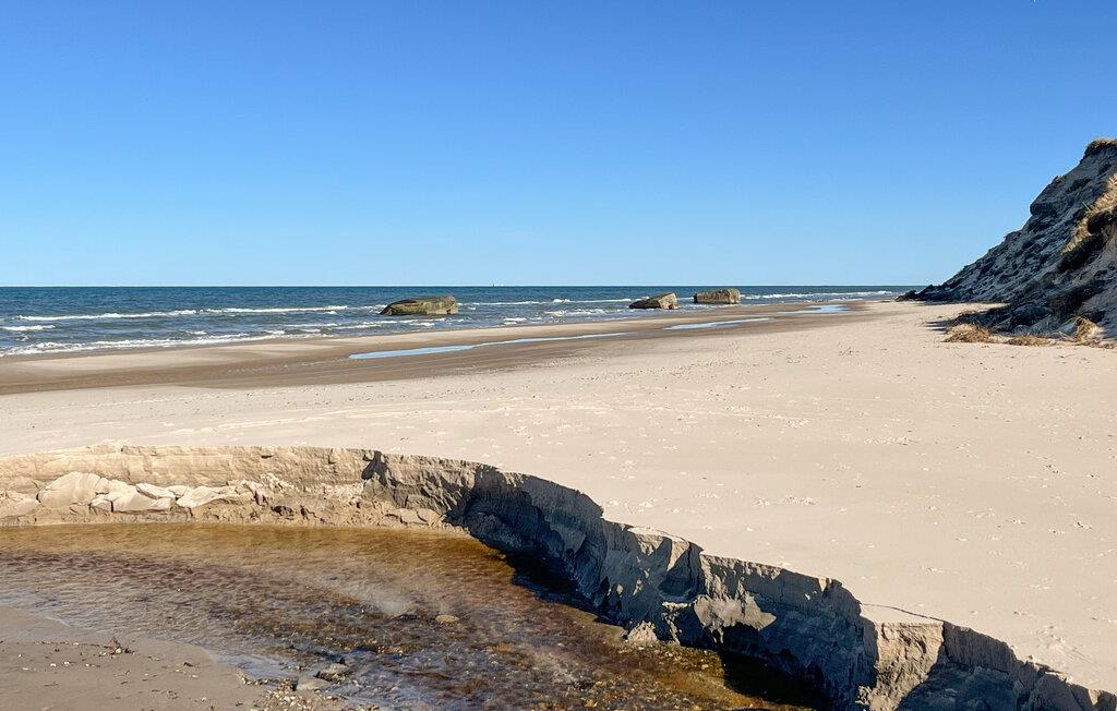 Huset fremstår lyst og venligt og er praktisk indrettet. Fra stuen er der udgang til en stor og delvist overdækket terrasse, hvor solen kan nydes fra tidligt til sent. Den store, kuperede klitgrund er beklædt med lyng og er omkranset af træer.