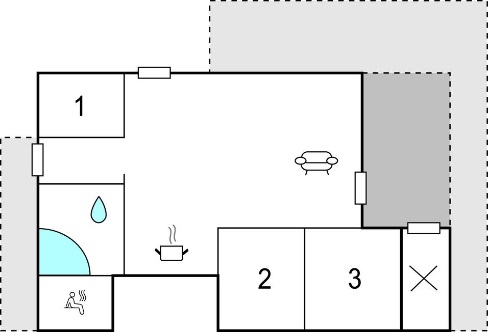 Badeværelse 7m2 (nr. 1) - WC. Varmt og koldt vand. Bruser