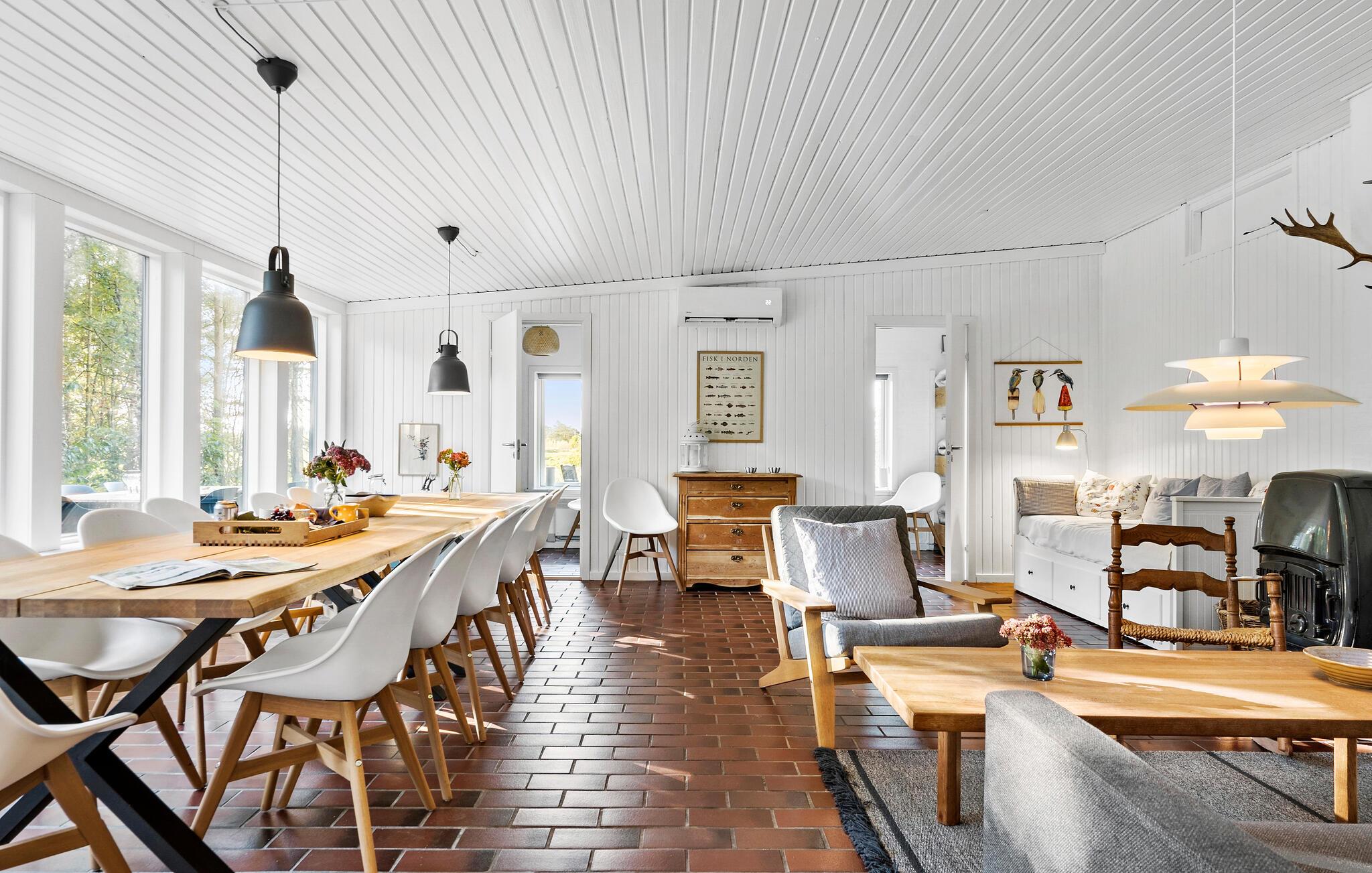 Der er fred, ro og fuld idyl på denne grund, hvor I får en skøn base i dette flotte, gedigne sommerhus. Indendørs har huset en varm, åben behagelig atmosfære med lyse trævægge og flotte klinkegulve. Find sammen om spisebordet og nyd den skønne udsigt til haven, mens ilden buldrer stemningsfuldt i brændeovnen.