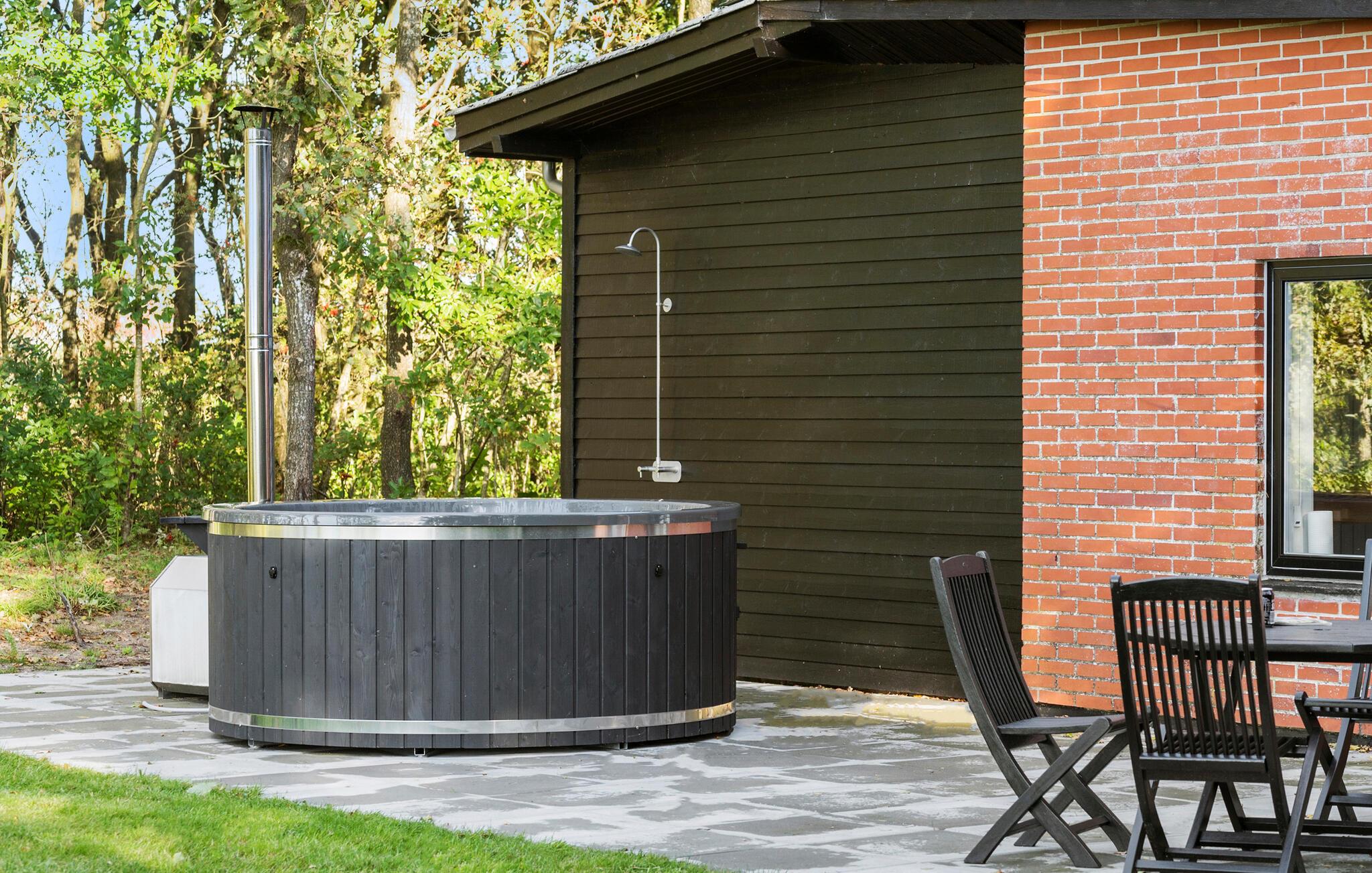 Huset ligger på en herlig, stor naturgrund med hyggelige aktiviteter til feriedagene. Her kan børnene snuppe et spil bold på græsplænen, mens I tænder op og gør klar til et lejrbål, hvor der kan bages snobrød og ristes skumfiduser. Trænger I til at slappe ekstra af oven på dagens program, kan I læne jer tilbage i vildmarksbadet, mens dagen går på hæld.