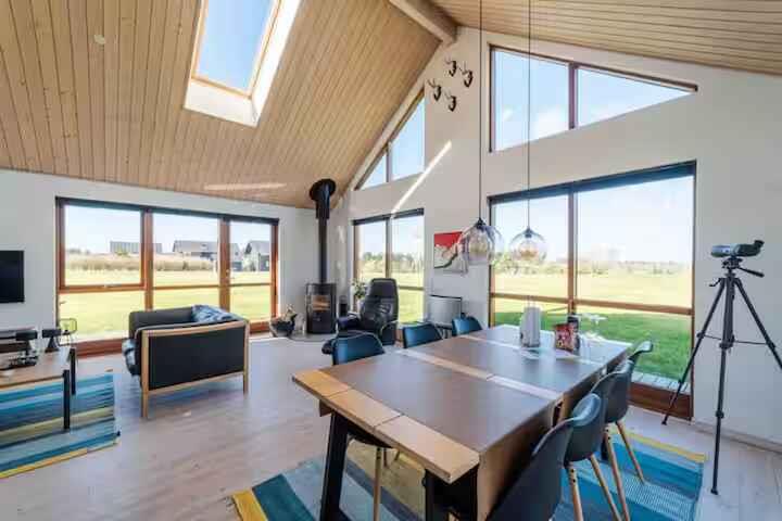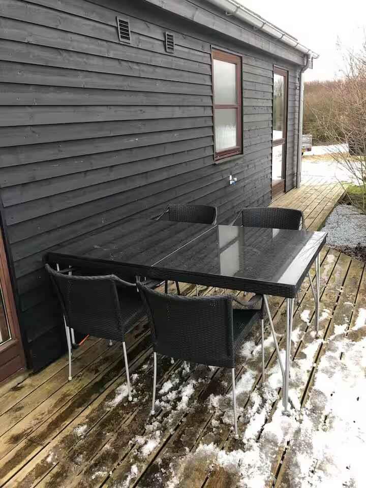 varmepumpe, brændeovn, internet, ligger lige op til Dejbjerg Golfklubs baner, direkte adgang til smukke skove, dejlig hems, sengene er opredte ved ankomst, og der er håndklæder til rådighed