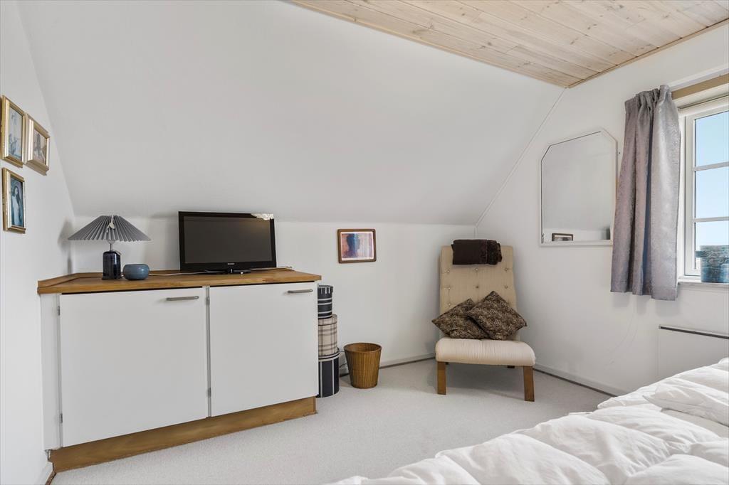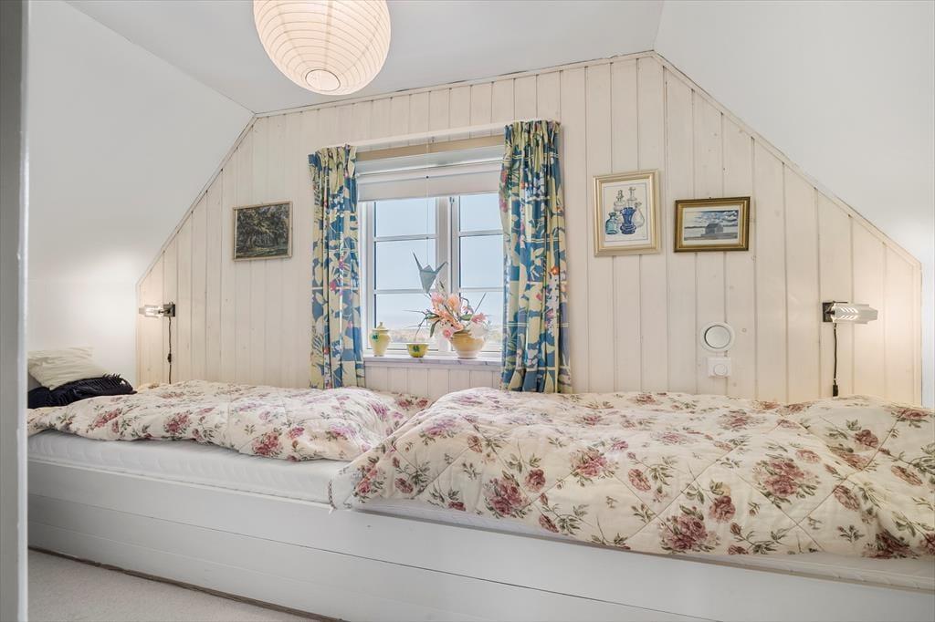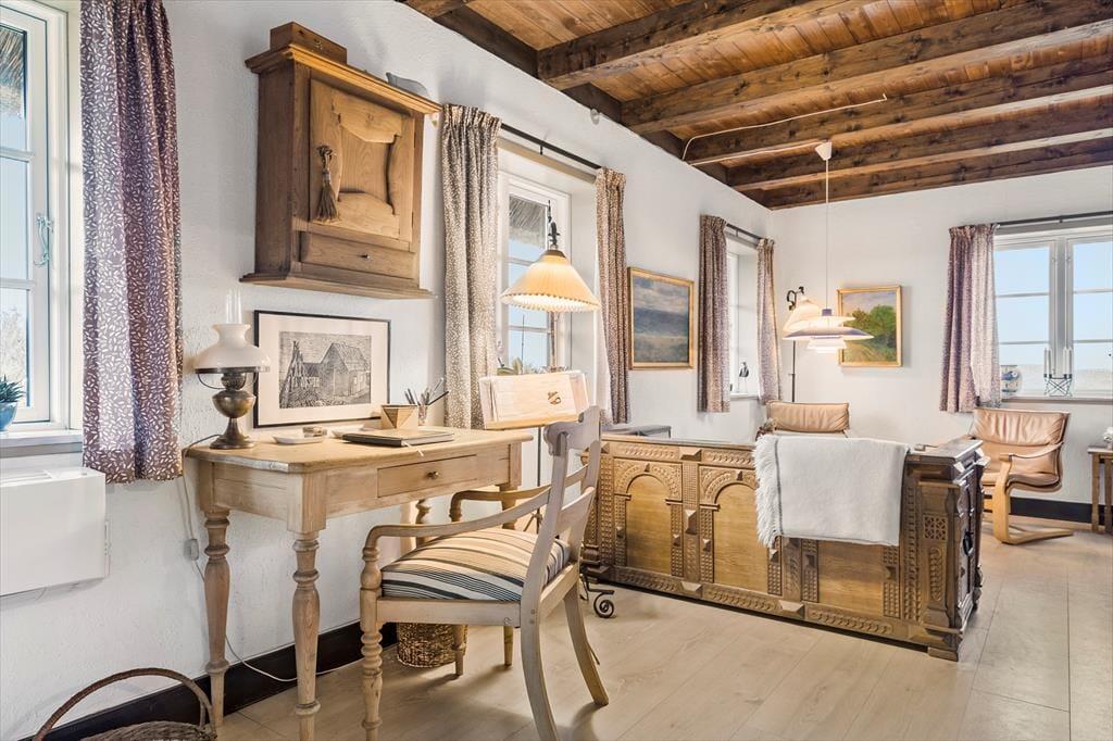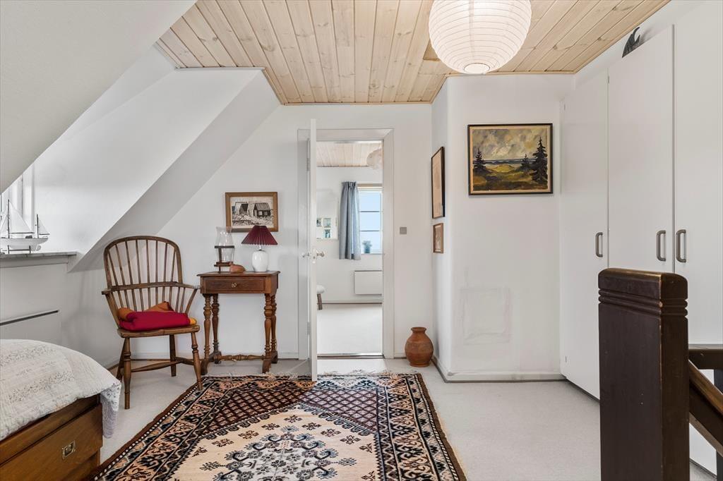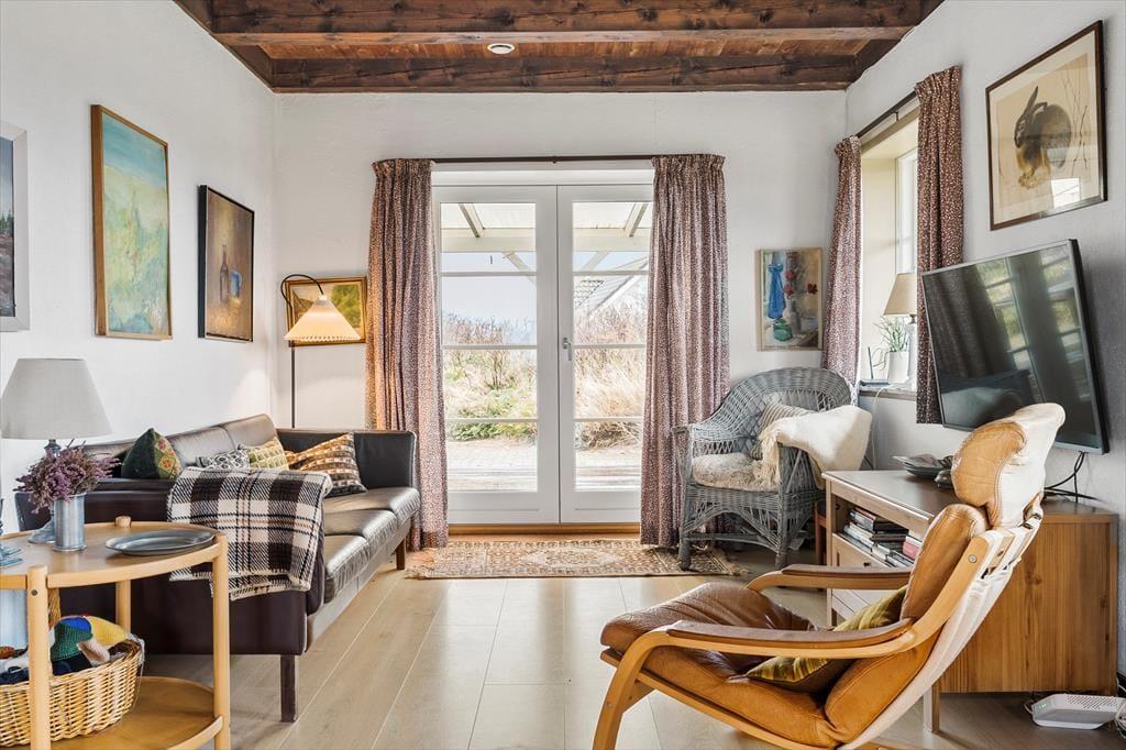 Fritidshuset emmer af stemning og atmosfære, og indretningen vidner om områdets maritime historie og tilknytning til fjorden og havet. De ydre og indvendige døre samt andre dele af indretningen stammer fra fregatten Galathea, der i 1950 stævnede ud fra København på forskningsekspedition, som blandt andet skulle kortlægge dyrelivet i dybderne på oceanerne. I 2018 blev feriehuset nænsomt renoveret med blik for at bevare den oprindelige atmosfære. Stueplanet rummer et badeværelse med bruseniche, en entré samt et stort, åbent opholdsområde med charmerende, synlige bjælker i loftet, brændeovn og udsigt til fjorden og klitterne. Køkkenet er godt udstyret og byder på opvaskemaskine, mens stuen er indrettet med et spisebord, en sofa ved tv’et samt et sofaarrangement med lænestole ved brændeovnen, hvor I kan læse en god bog. Førstesalen byder på to gode værelser med sengepladser til fire personer, og heroppe er udsigten ekstragod.