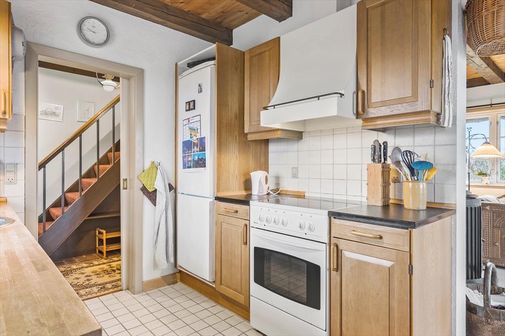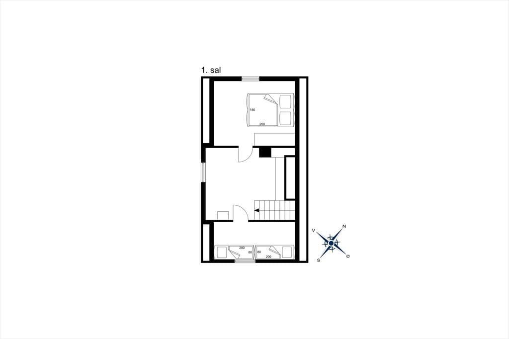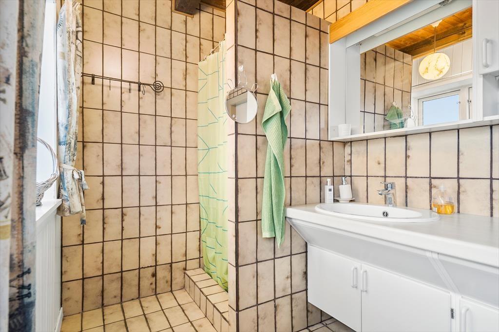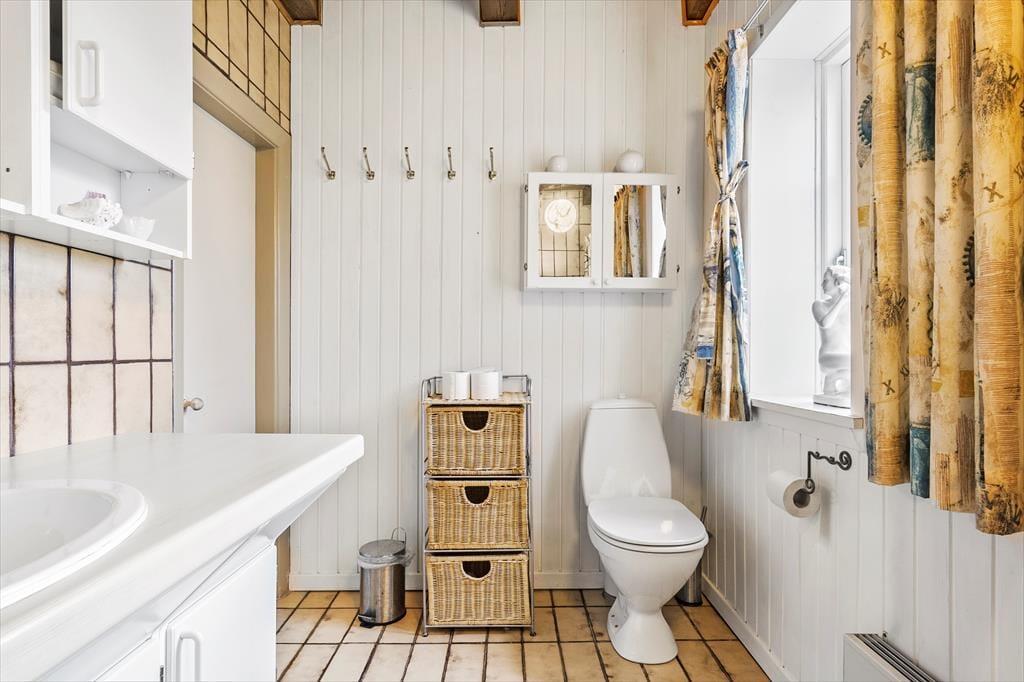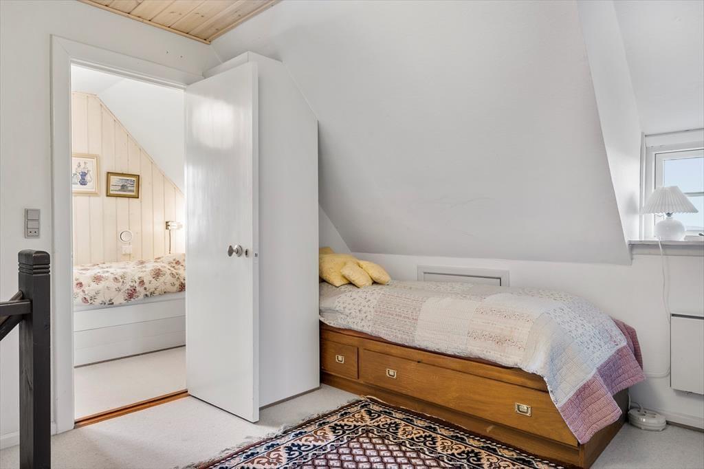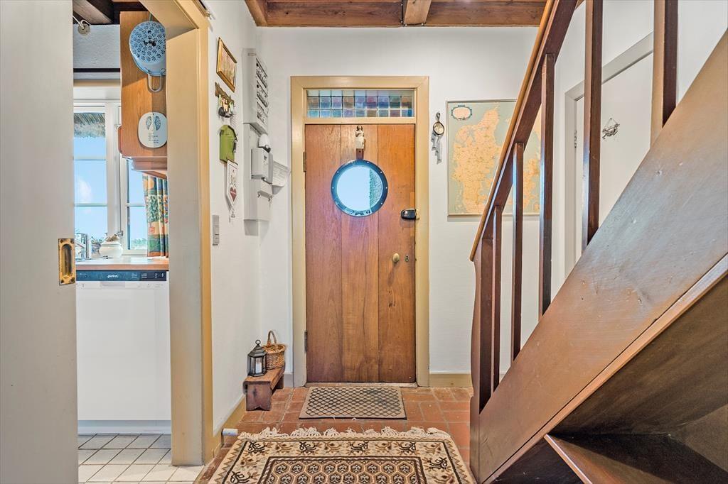 Fritidshuset emmer af stemning og atmosfære, og indretningen vidner om områdets maritime historie og tilknytning til fjorden og havet. De ydre og indvendige døre samt andre dele af indretningen stammer fra fregatten Galathea, der i 1950 stævnede ud fra København på forskningsekspedition, som blandt andet skulle kortlægge dyrelivet i dybderne på oceanerne. I 2018 blev feriehuset nænsomt renoveret med blik for at bevare den oprindelige atmosfære. Stueplanet rummer et badeværelse med bruseniche, en entré samt et stort, åbent opholdsområde med charmerende, synlige bjælker i loftet, brændeovn og udsigt til fjorden og klitterne. Køkkenet er godt udstyret og byder på opvaskemaskine, mens stuen er indrettet med et spisebord, en sofa ved tv’et samt et sofaarrangement med lænestole ved brændeovnen, hvor I kan læse en god bog. Førstesalen byder på to gode værelser med sengepladser til fire personer, og heroppe er udsigten ekstragod.