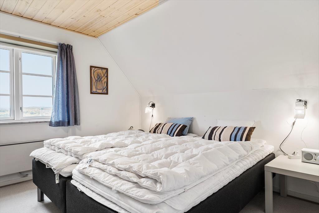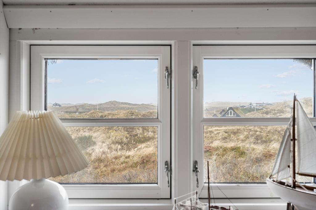 Dette charmerende feriehus er stemningsfuldt indrettet til fire personer, og da det ligger højt i landskabet, kan I nyde en skøn panoramaudsigt til Ringkøbing Fjord samt til klitlandskabet ud mod Vesterhavet.