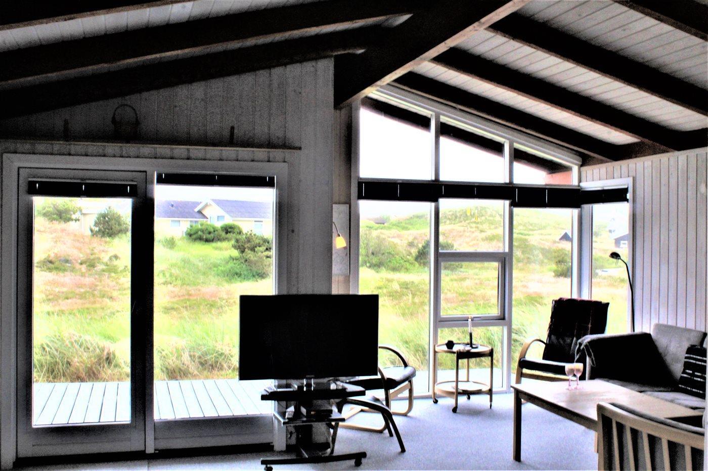 Dejligt sommerhus i Hvide Sande med udsigt over klitområdet, havet og fjorden, komplet med sauna og indendørs spabad.