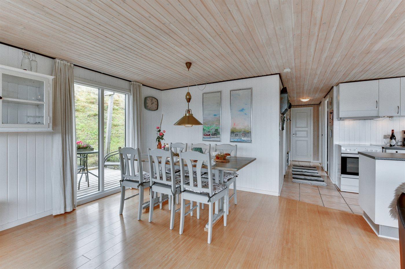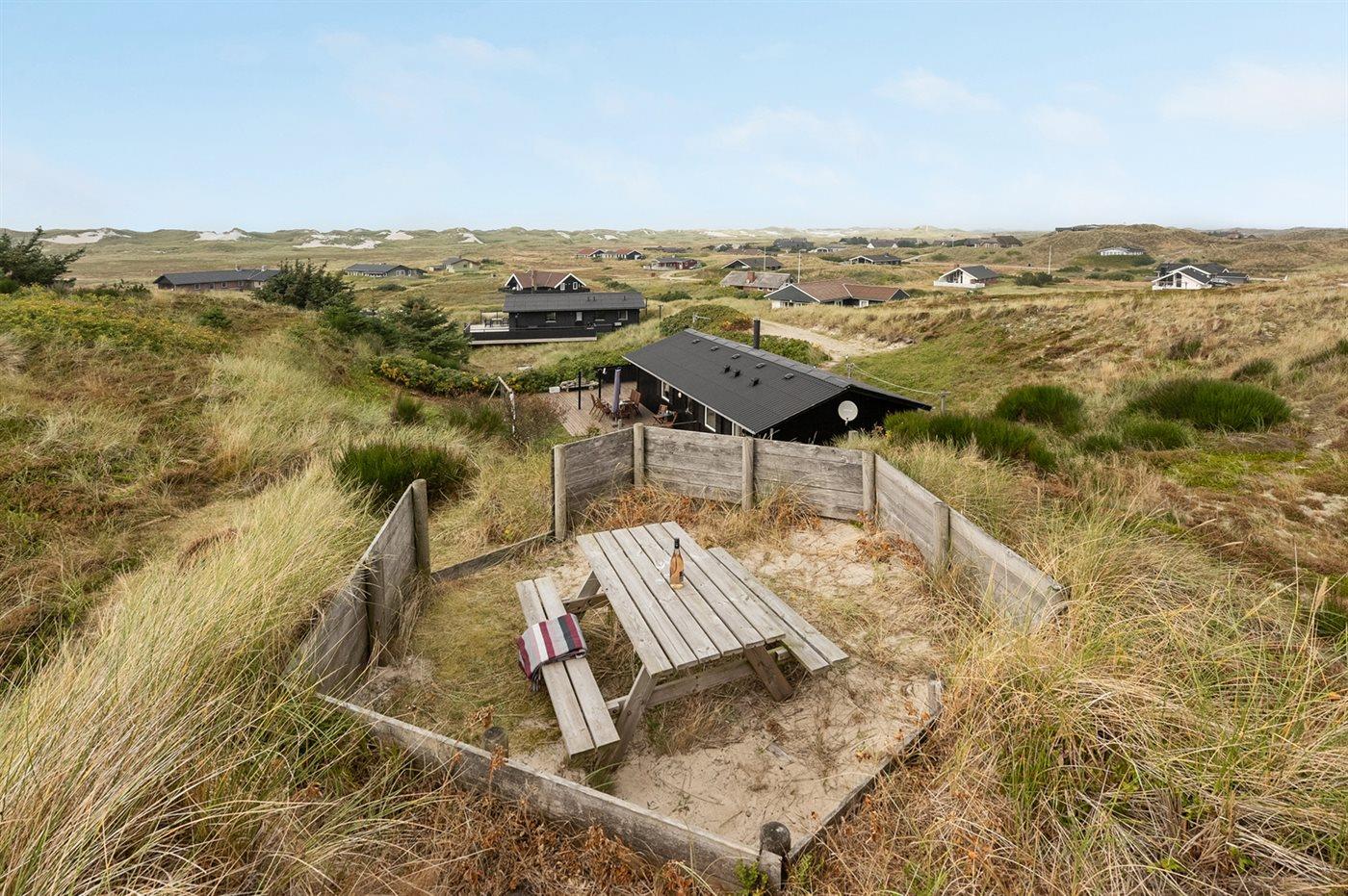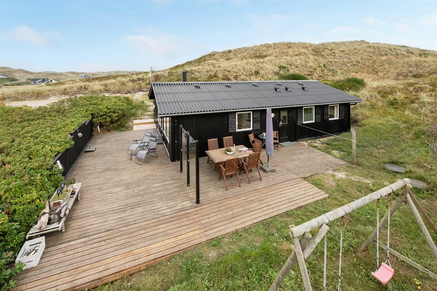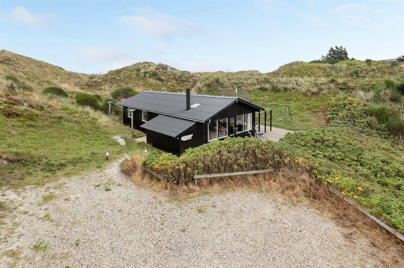Højtbeliggende og hyggeligt sommerhus med en flot udsigt over klitterne midt mellem hav og fjord. Stedet er oplagt til strandferie, traveture med din firbenede ven og en tur til havnebyen Hvide Sande.