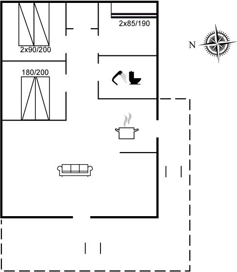 Der er i alt 3 soveværelser. Sovepladserne fordeler sig på: 2 sovepladser i dobbeltseng. 2 sovepladser i enkeltsenge. 2 sovepladser i køjeseng. 1 soveplads i sovesofa (enkelt). Derudover er der 1 stk. barneseng.
