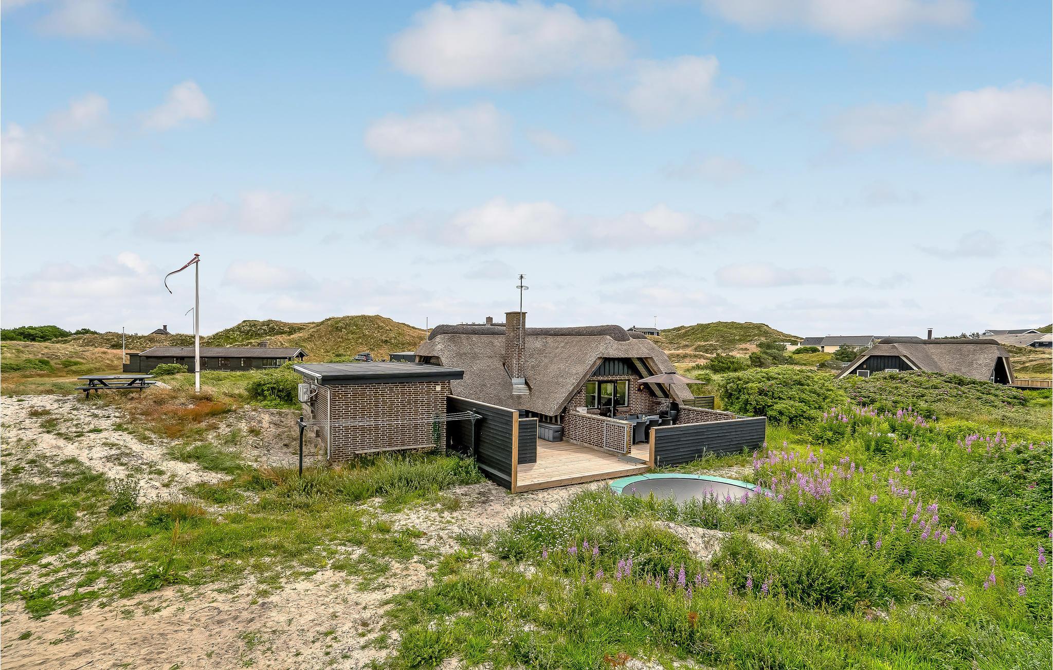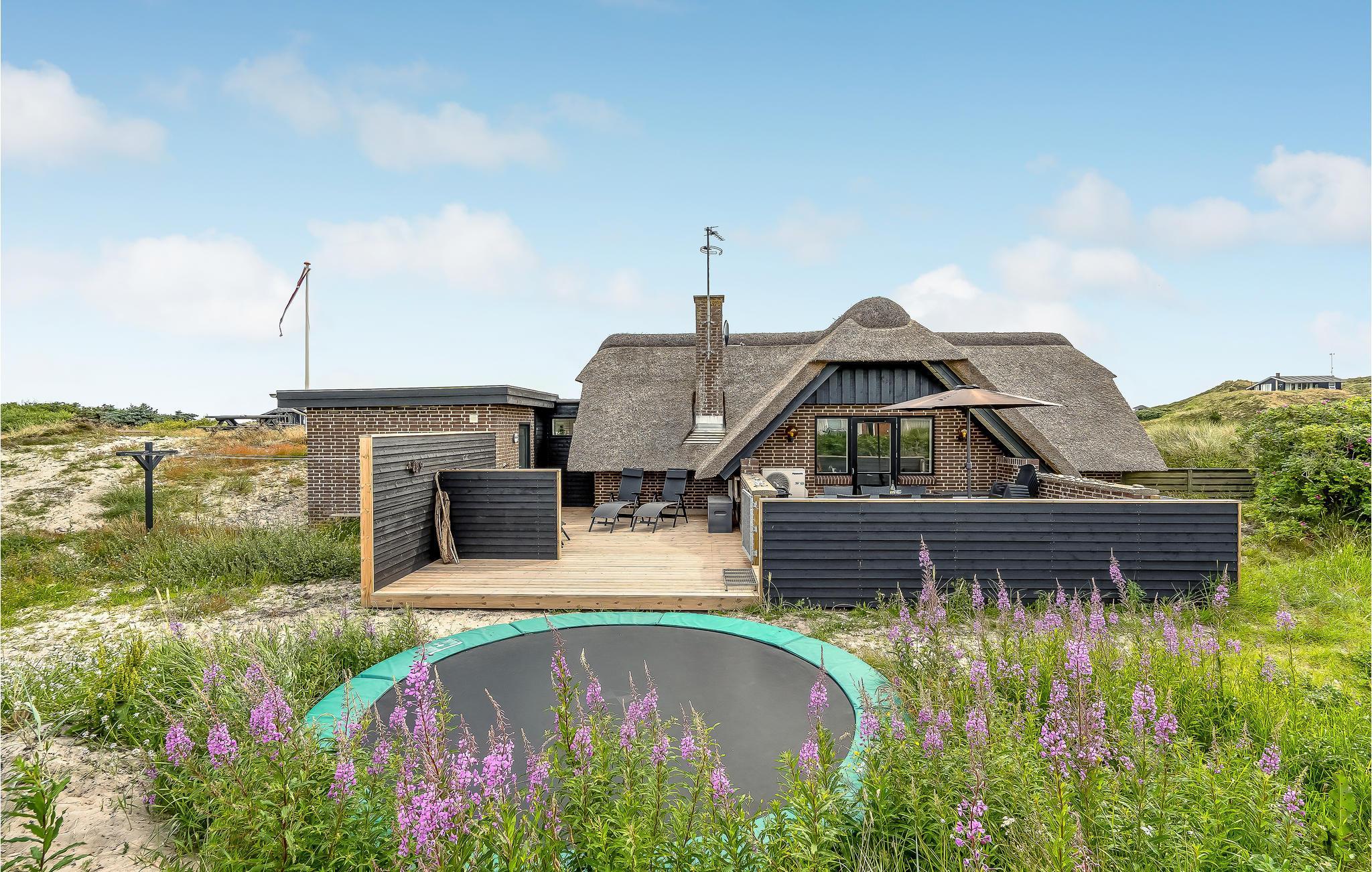 Hyggeligt stråtækt sommerhus på naturgrund nær Vesterhavet og Ringkøbing Fjord i Skodbjerge, perfekt til surf og natur.