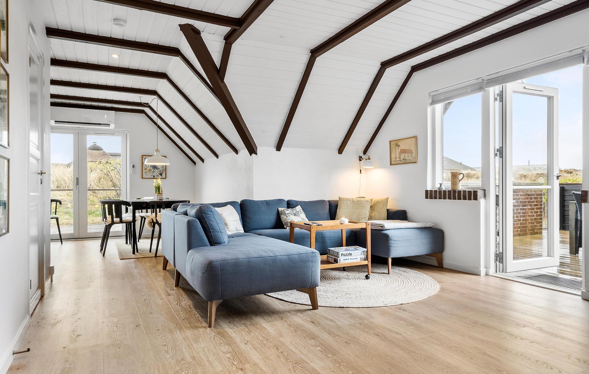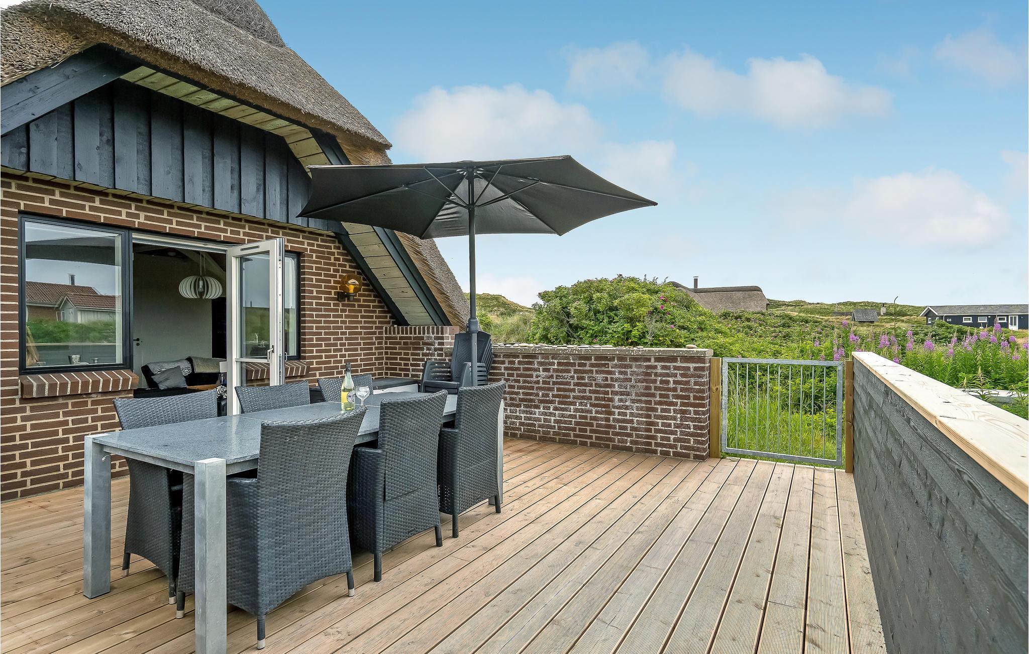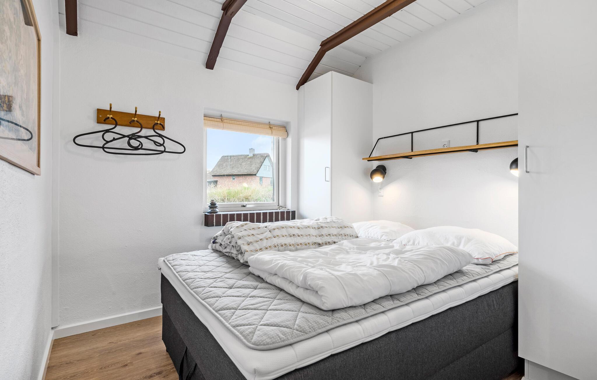 Hyggeligt stråtækt sommerhus beliggende på naturgrund i Skodbjerge på landtangen mellem Ringkøbing Fjord og Vesterhavet. Dette område er meget populært hos alle der vil surfe (eller kitesurfe), dyrke lystfiskeri eller bare nyde den brede strand ud til det brusende Vesterhav, som forandrer farve med lysets skiften på himlen. Tag gerne cyklerne med, eller lej på stedet, da området er gennemskåret af cykelstier som er dejlige til en frisk tur til stranden eller til nærmeste iskiosk.