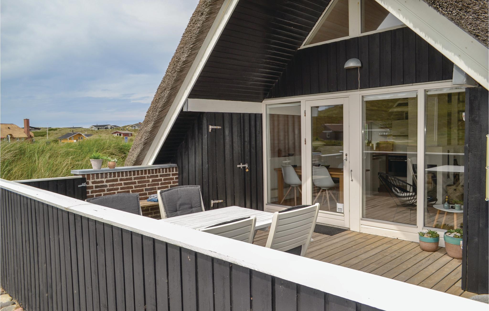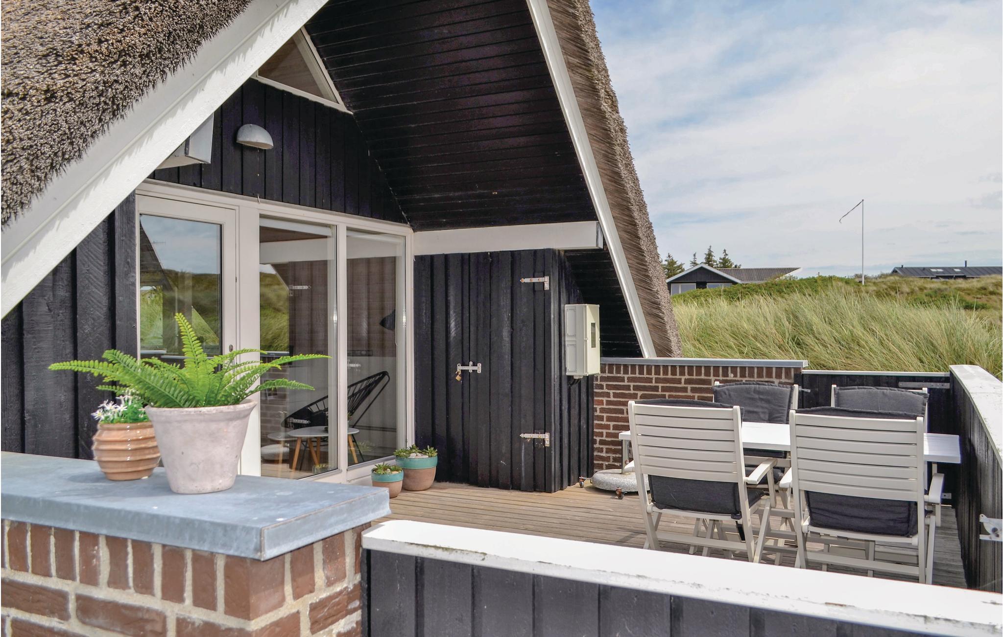 Dette hyggelige og charmerende stråtækte feriehus er den perfekte start på en god ferie. Huset er meget velholdt og smagfuldt indrettet, og alt fremstår lyst og venligt - I vil straks føle jer godt tilpas, når I træder ind i huset. I det skønne køkken er der god plads til madlavning, og I er samtidig tæt på opholdsrummet med spisestue og en meget hyggelig stue med udgang til den ene af husets dejlige terrasser. På terrassen kan I sidde og nyde udsigten over klitterne og bare nyde roen, tiden, hinanden og ferien.