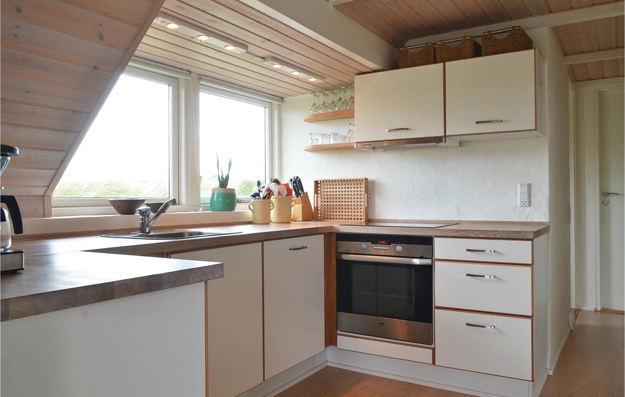Der er plads til fire personer fordelt på et soveværelse i stueetagen og på en hyggelig åben hems. Naturens kræfter er uendelige her, hvor hav og fjord mødes, og det er netop en af de ting, der er så fascinerende ved området. Når I lejer feriehus i Vestjylland, har I alle muligheder for at opleve den smukke og uspolerede natur. Den nærmeste by er Hvide Sande, som byder på et alsidigt handelsliv med masser af spændende specialforretninger, dejlige restauranter, caféer og et hyggeligt havnemiljø.