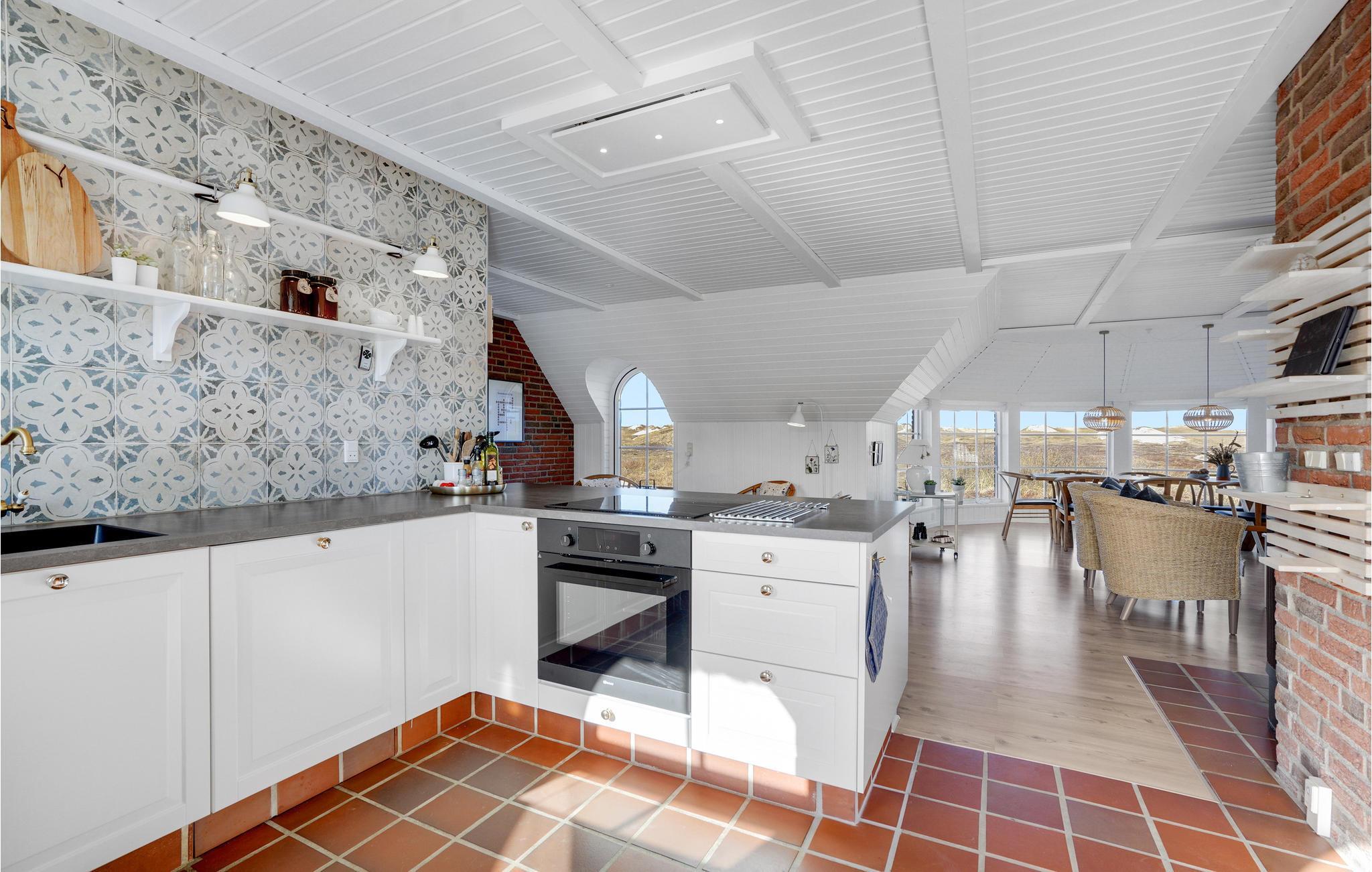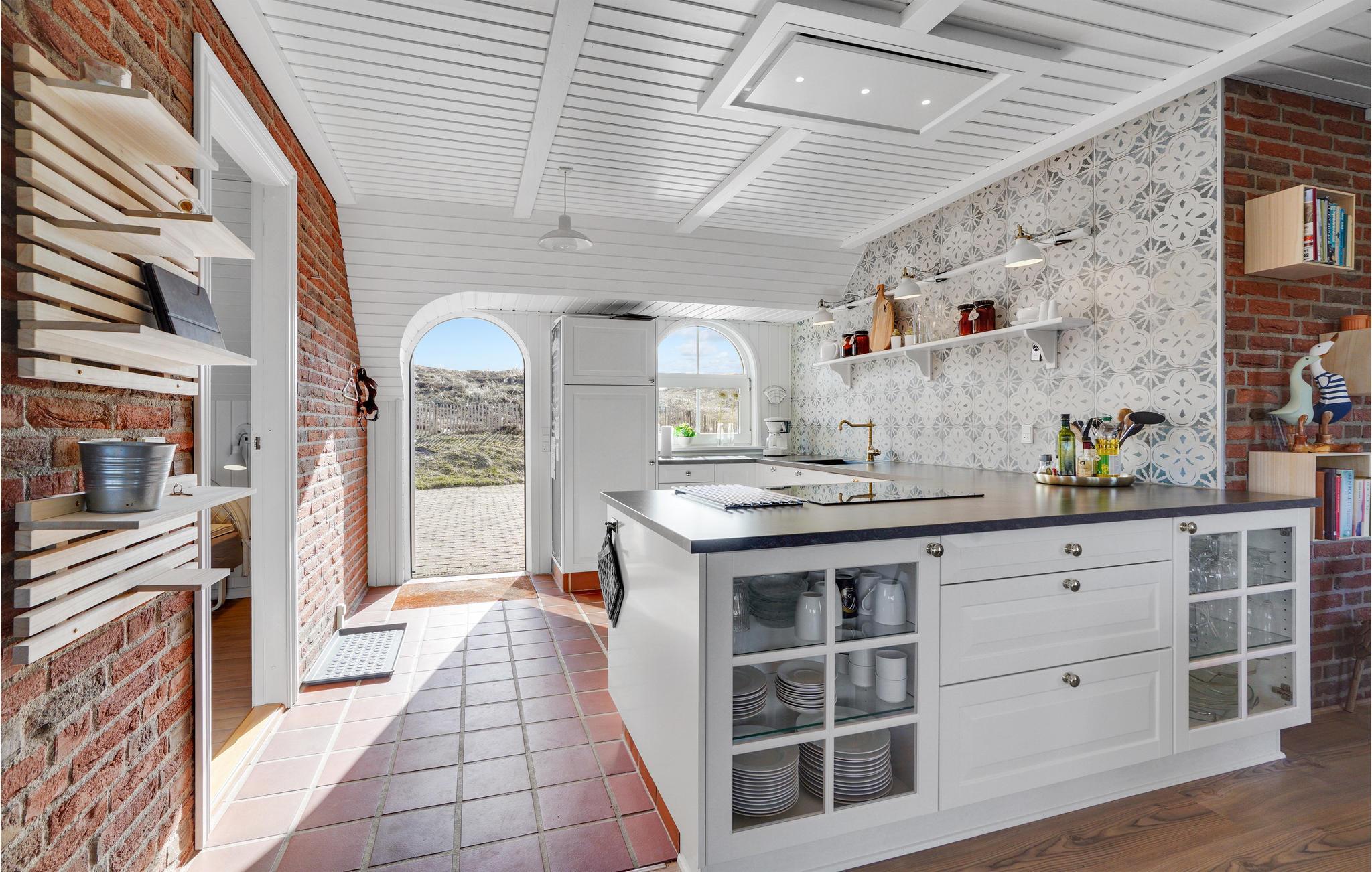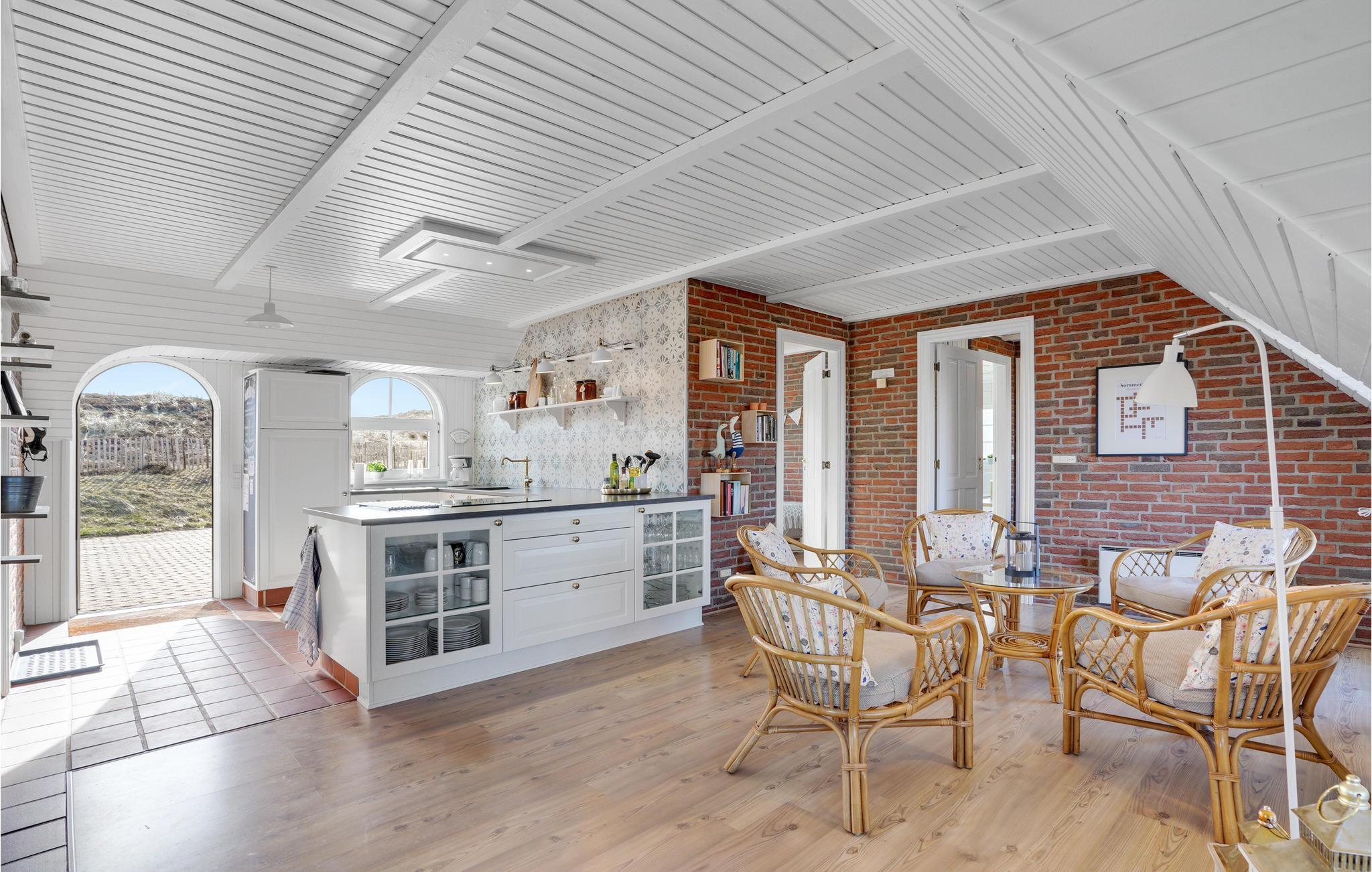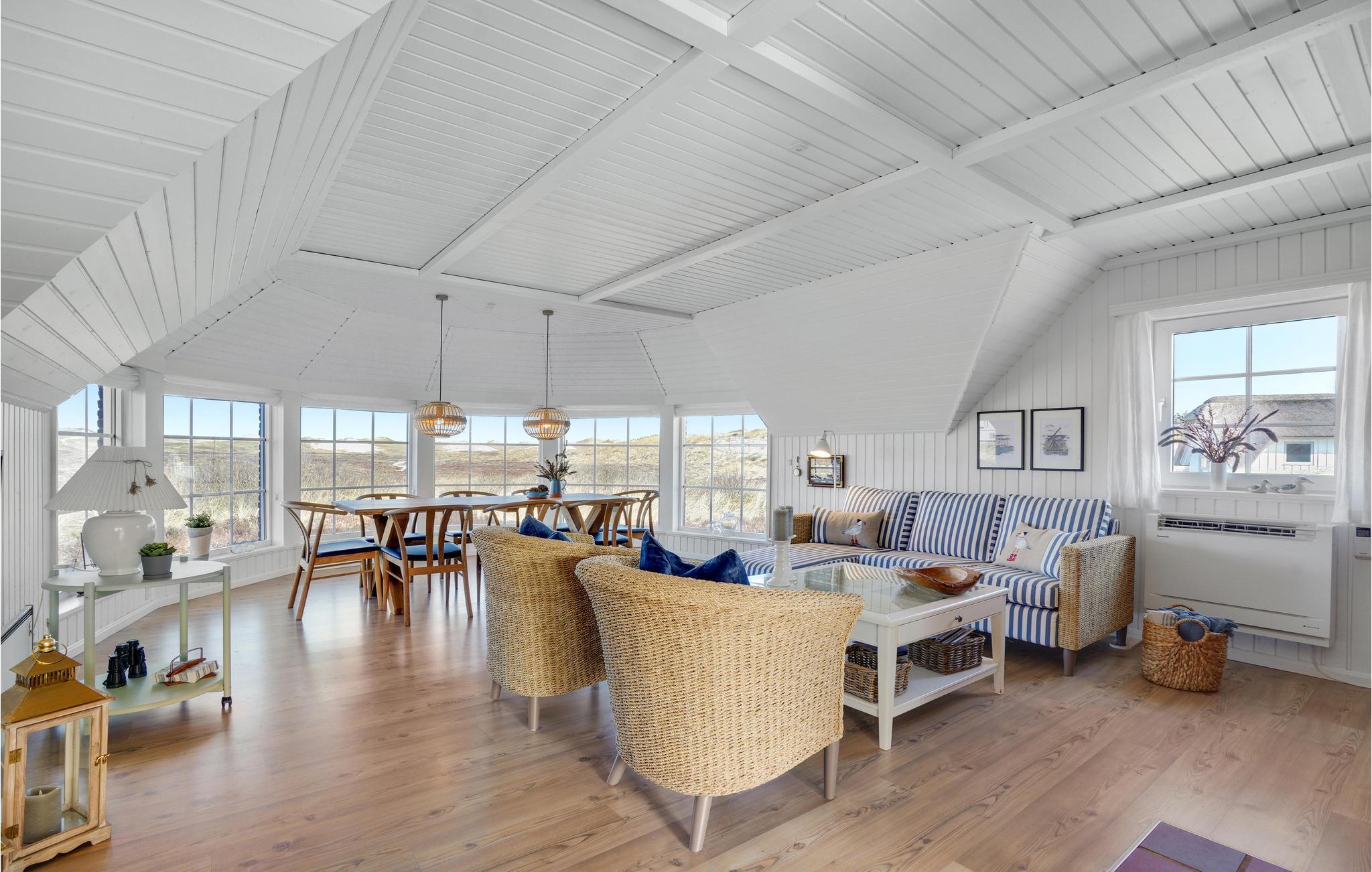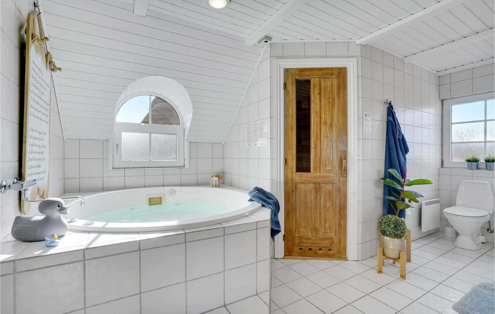 Huset er med sine 122 m² meget rummeligt med store værelser og en stor opholdsstue, der er forbundet med det elegante, velindrettede køkken. Stuens vinduesparti mod vest giver et dejligt lys samtidig med, at der herfra også er en smuk udsigt over det fredede lyng- og klitlandskab. I hele huset er der en fantastisk sommerhus stemning med er træ- og klinkegulve, hyggelige soveværelser og to flotte badeværelser, hvoraf det ene er udstyret med et stort fem personers spabad og adgang til saunaen. I annekset finder I et stort bryggers med grovkøkken, vaskemaskine og tørretumbler, og det hyggelige aktivitetsrum – et ideelt opholdsrum for børn og unge. Her finder I også ekstra køle-/fryseskabe.