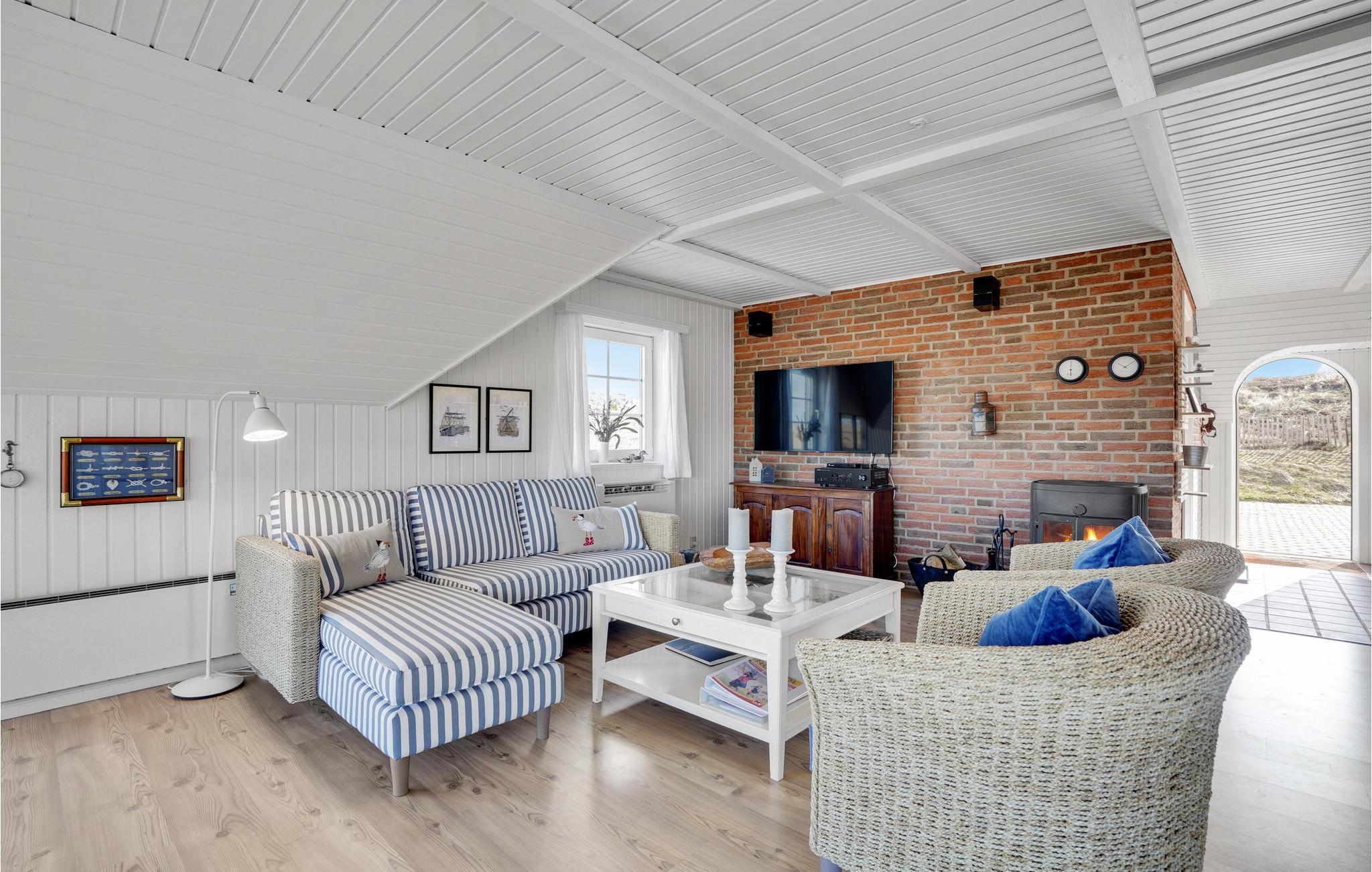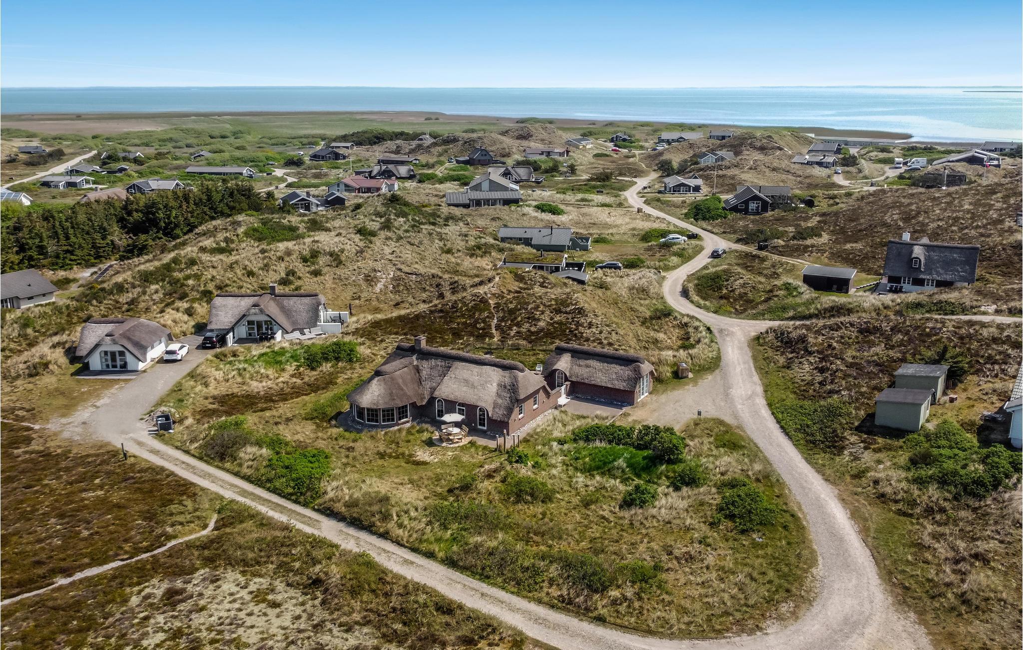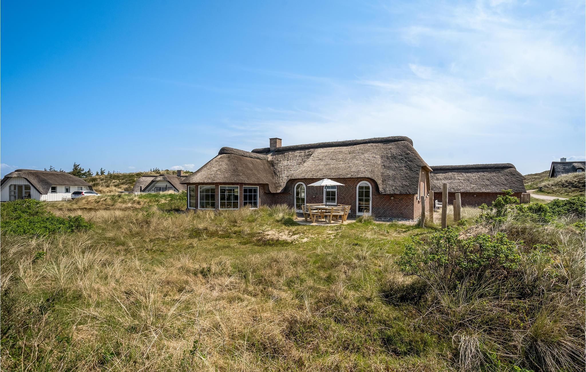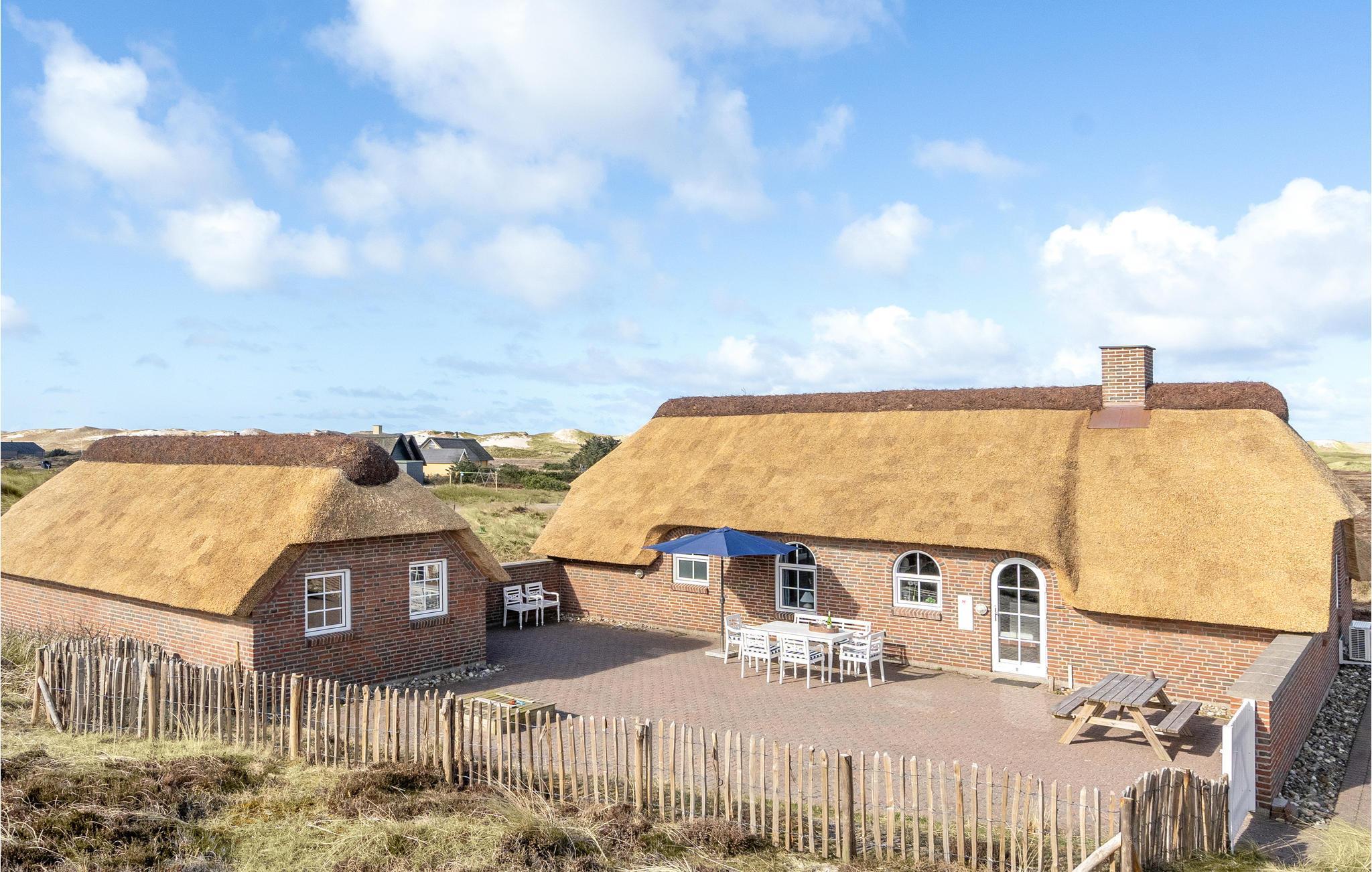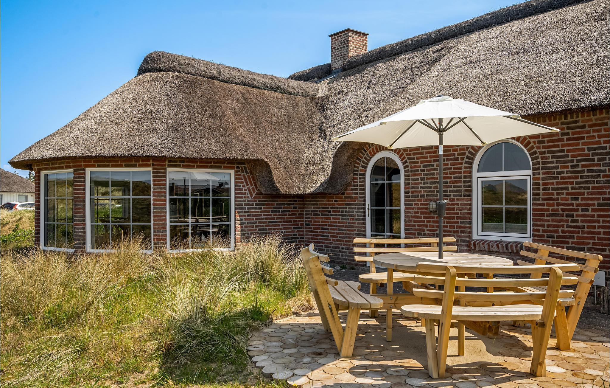 Charmerende stråtækt hus med stor terrasse nær Vesterhavet og fredet klitlandskab, perfekt til afslapning og naturoplevelser.