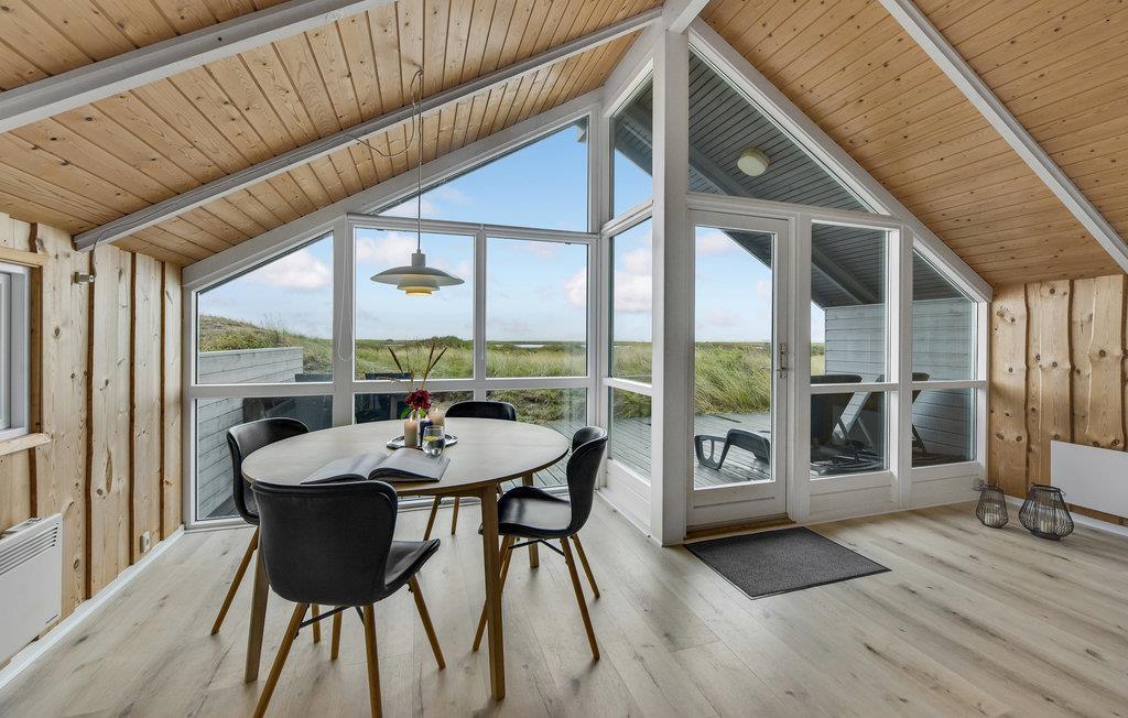 Med en helt unik beliggenhed på en stor klitgrund og kun ét nabohus, har I her det bedste udgangspunkt for en afslappende ferie. Fra stuen og den sydøstvendte terrasse er der en helt fantastisk panoramaudsigt over Ringkøbing Fjord, som til alle årstider byder på et rigt og spændende dyreliv. Fra den vestvendte terrasse kan I nyde eftermiddagssolen og udsigten til de store klitter. Her er naturen i højsædet og byder hver dag på nye naturoplevelser.