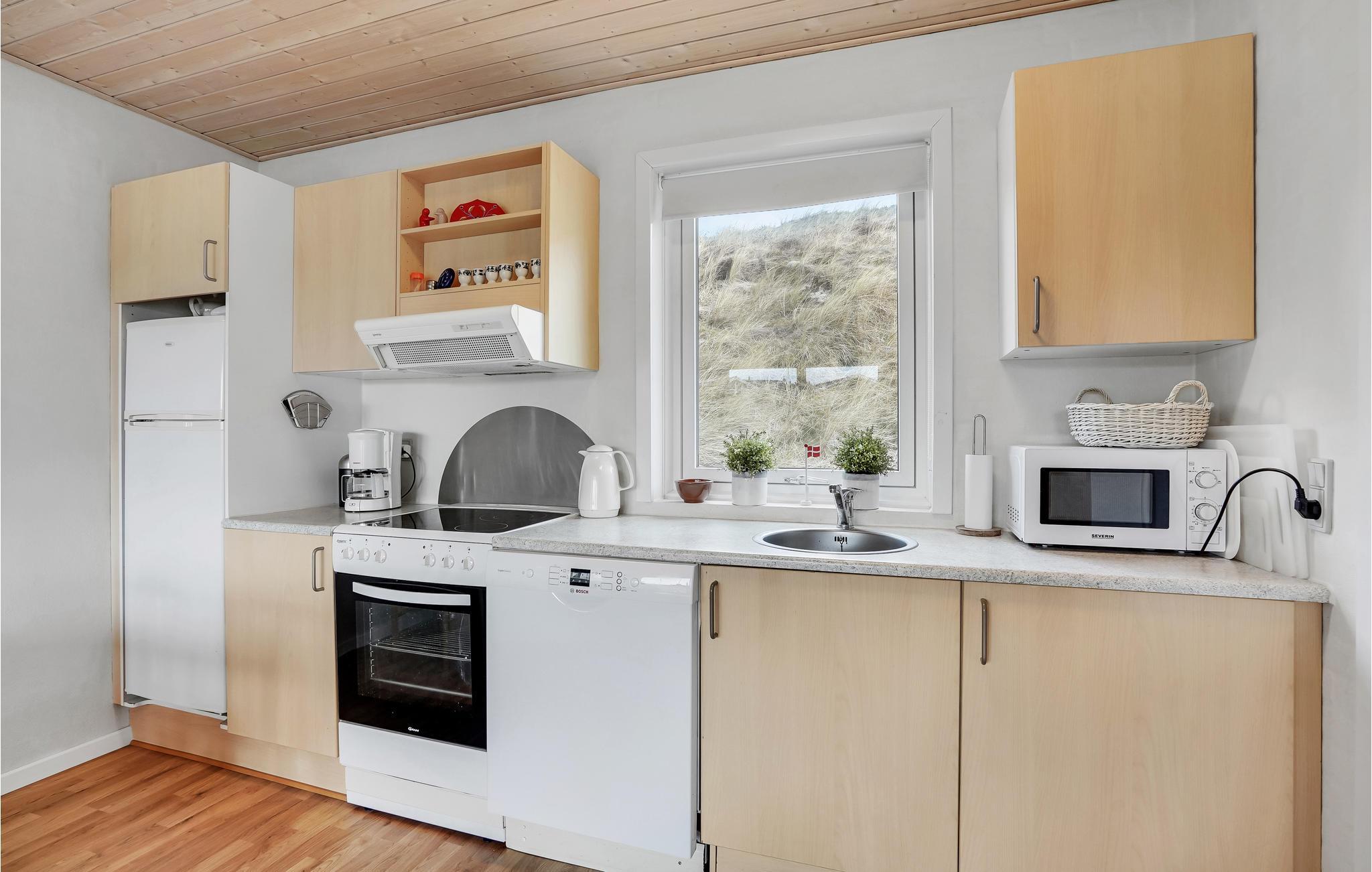 Dejlig og rummelig ferielejlighed beliggende i storslået natur i rolige omgivelser, og med kort afstand til stranden. Her, lige midt imellem Vesterhavet og Ringkøbing Fjord er der mange muligheder for skønne oplevelser ved fjord, hav, klitter og hede. Omgivelserne er skabt til mange forskellige aktiviteter som windsurfing, lystfiskeri, drageflyvning, cykel- og vandreture. Lejligheden er hyggelig indrettet med sammenhængende køkken og stue, med udgang til en dejlig terrasse med liggestole og havemøbler, hvorfra stien går direkte til Vesterhavet. Der er et soveværelse med en dobbeltseng og en køjeseng samt to sovepladser på en dobbelt sovesofa i stuen. Hertil kommer et badeværelse. Nærmeste by er Hvide Sande med forskellige restauranter, hyggeligt havnemiljø og mange specialbutikker.