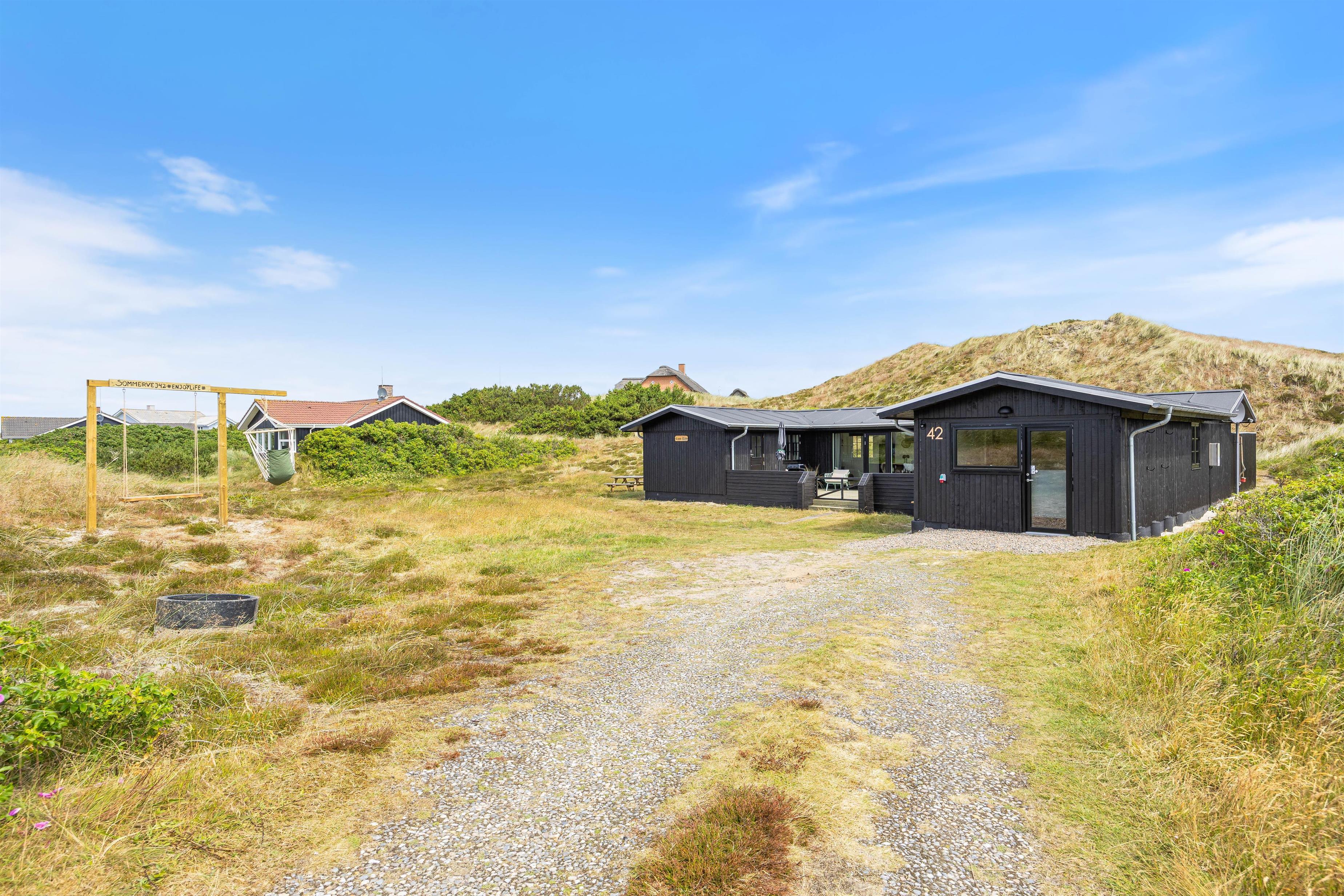Jeres næste ferie ved Vesterhavet kunne finde sted i dette skønne sommerhus i Skodbjerge – nærmere bestemt på adressen Sommervej 42. Sommerhuset ligger i den vestjyske natur på en stor klitgrund på hele 3.800 kvadratmeter. Med sine 92 kvadratmeter byder sommerhuset på god plads til op til 5 personer.