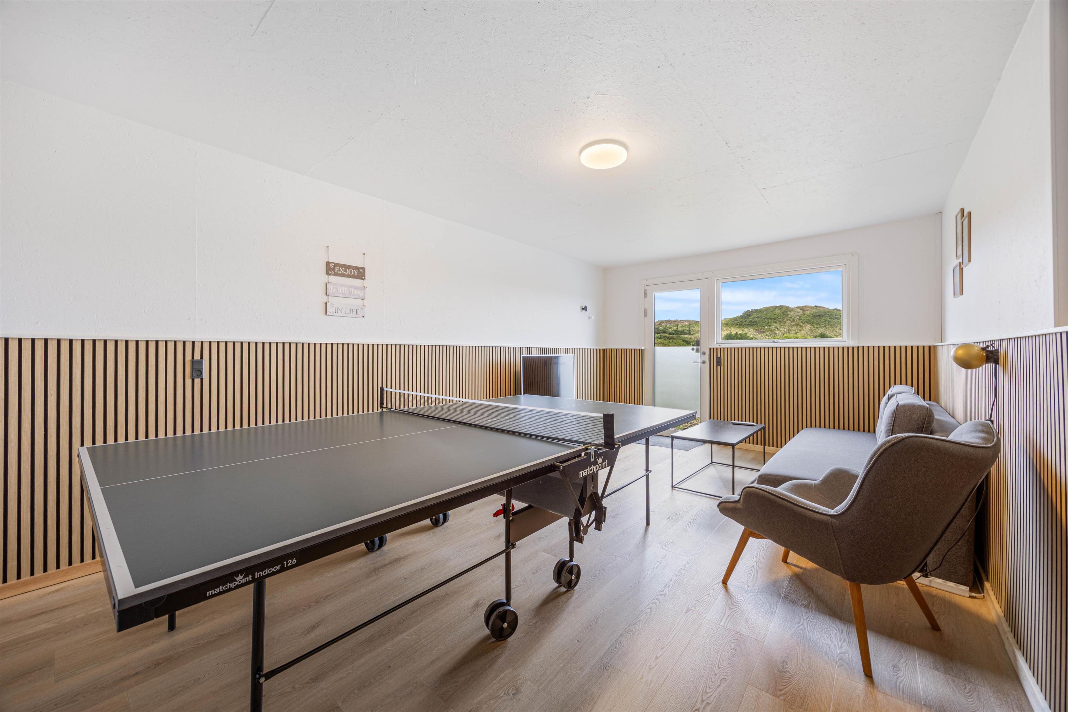 Der er også sørget for underholdning for alle. Her står et bordtennisbord klar, så I kan udfordre hinanden til sjove kampe, uanset vejret udenfor.