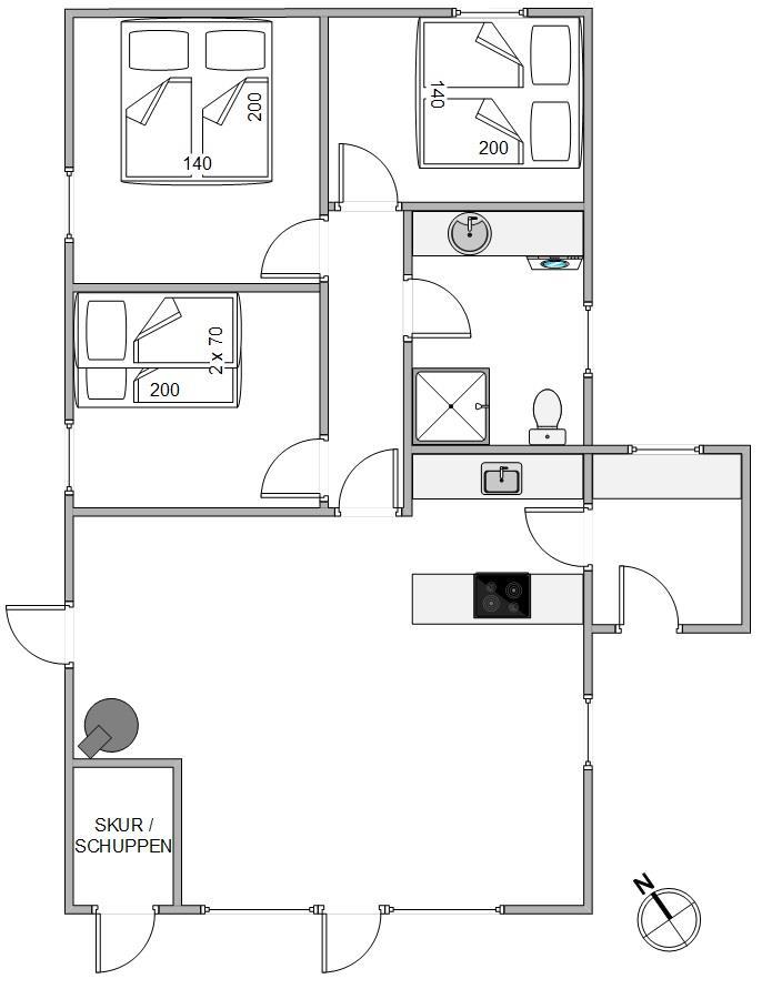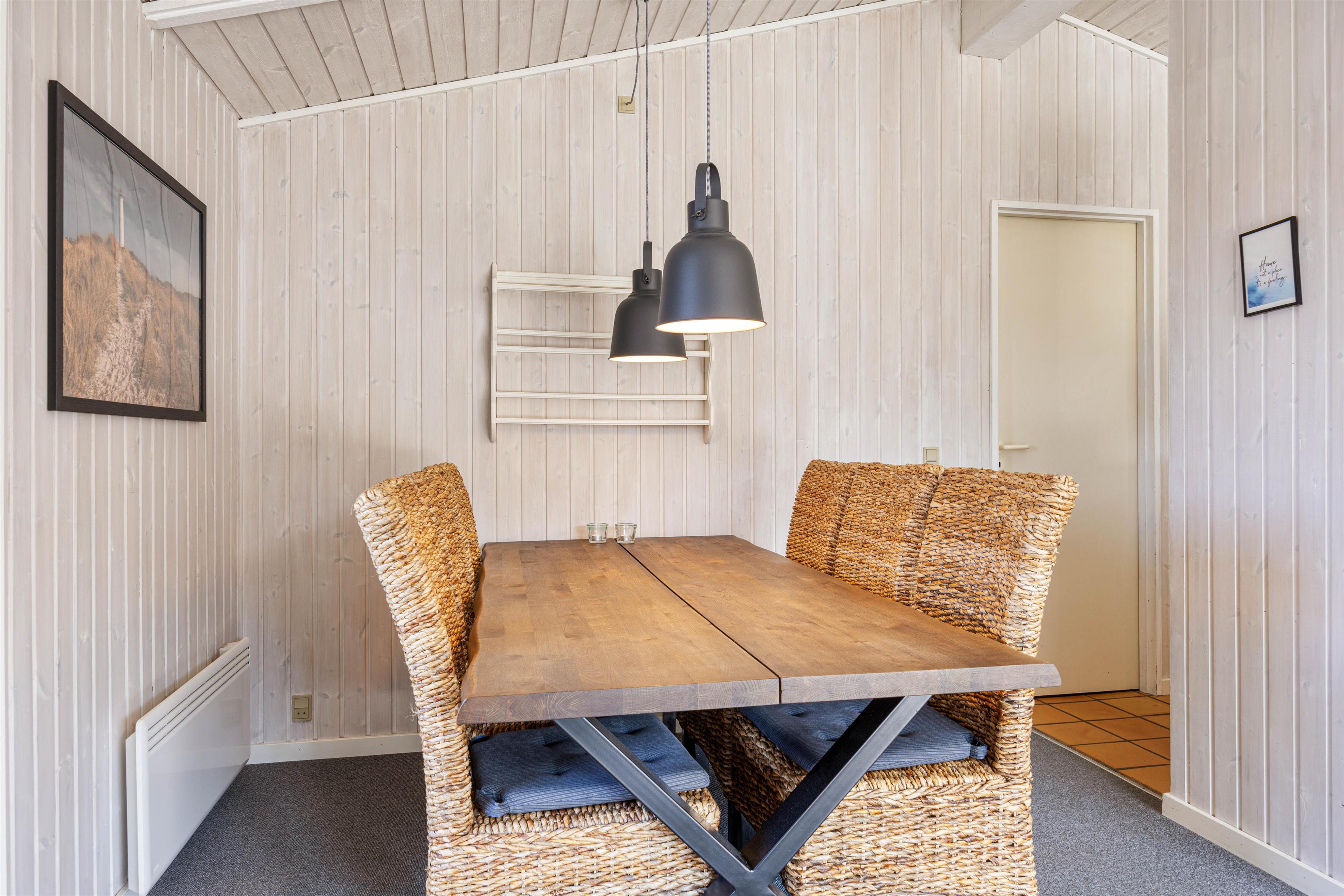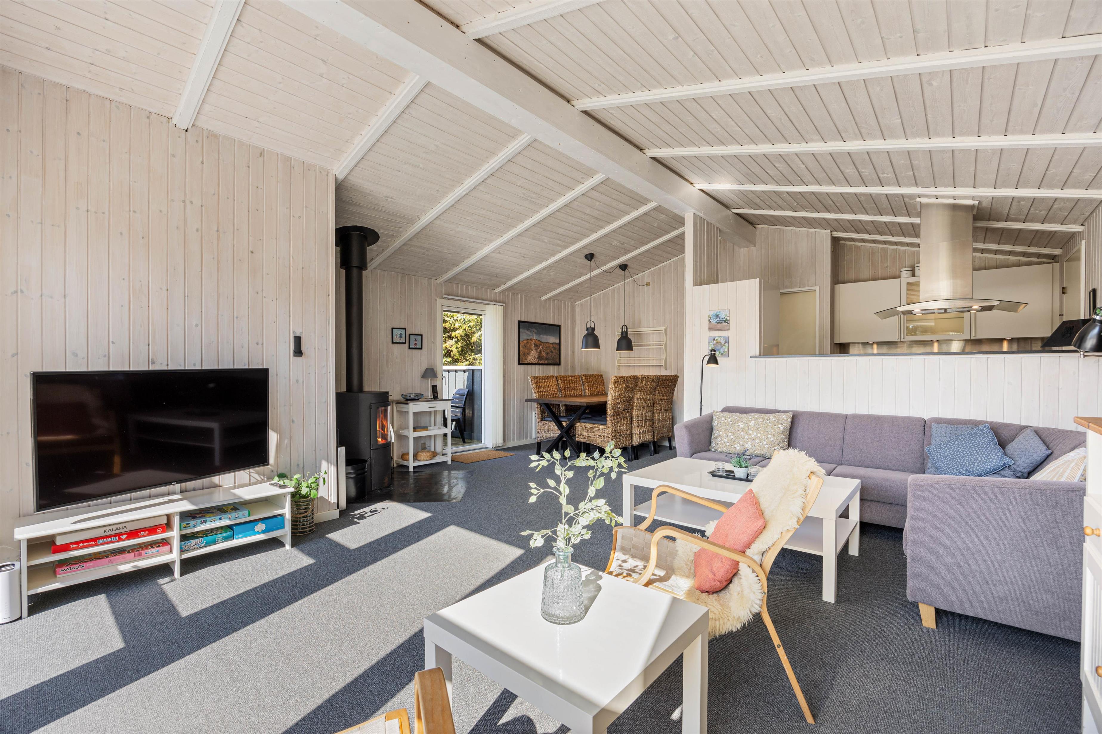 Et rigtig dejligt feriehus med en god beliggenhed. Husets hjerte og naturlige samlingspunkt er det hyggelige åbne opholdsrum med køkken og stueafdeling. Det praktiske køkken er bl.a. med 30 l. fryser og opvaskemaskine.