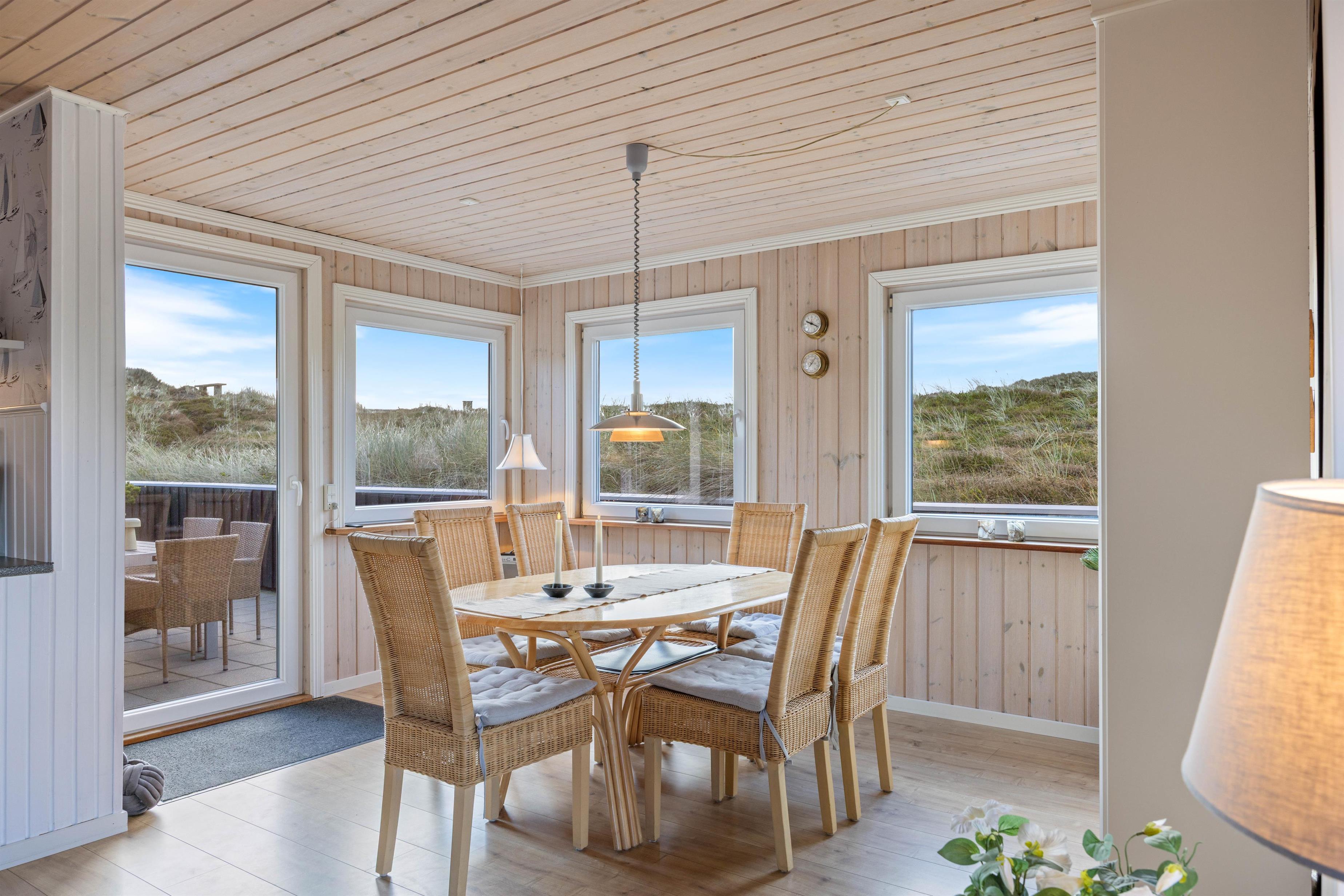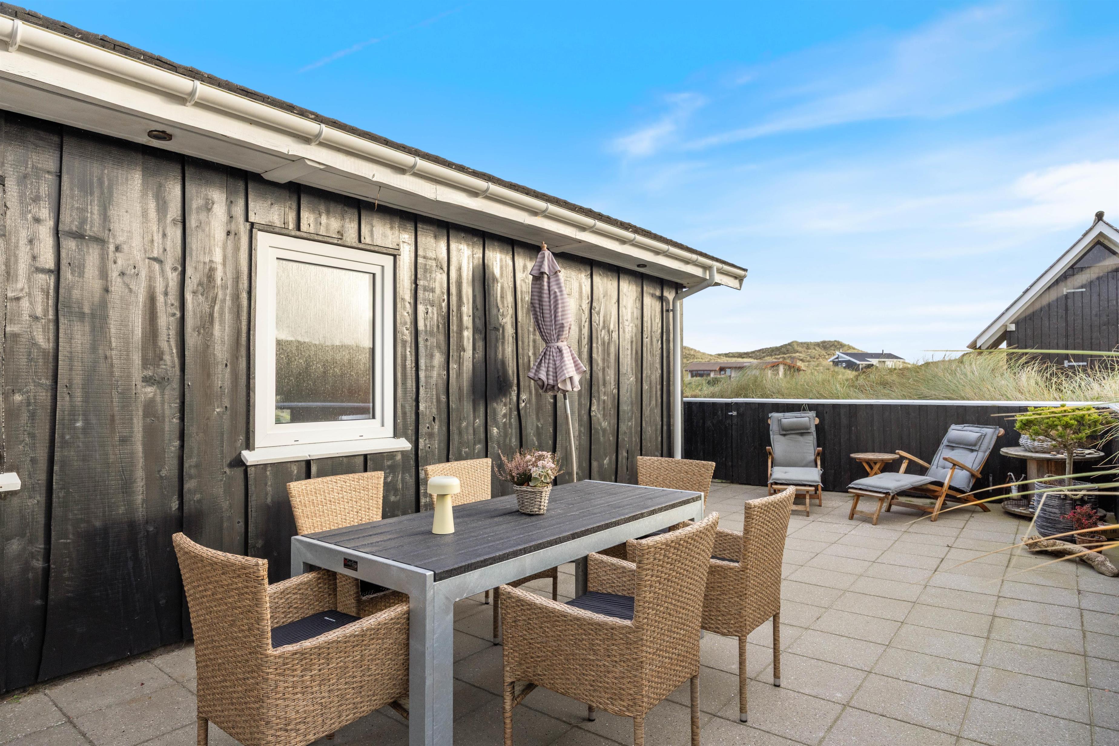 Om end I holder en grillaften på terrassen eller samles indenfor rundt om spisebordet, har I en flot udsigt ud over klitlandskabet, og mens alle de nye indtryk snakkes igennem, og dagens gode grin bliver delt, kan I betragte den smukke aftenhimmel folde sig ud bag klittoppene. Og mens stjernerne kigger frem i mørket, kan I snuppe et sidste kapitel af bogen på sofaen, inden sengen kalder.