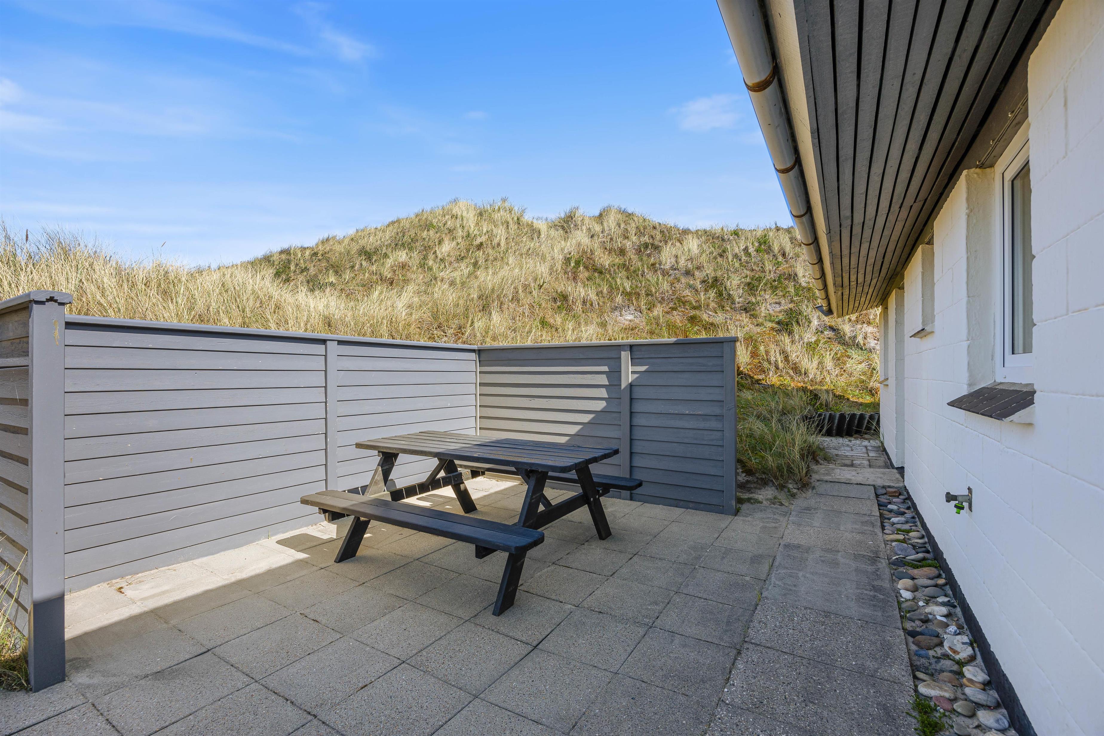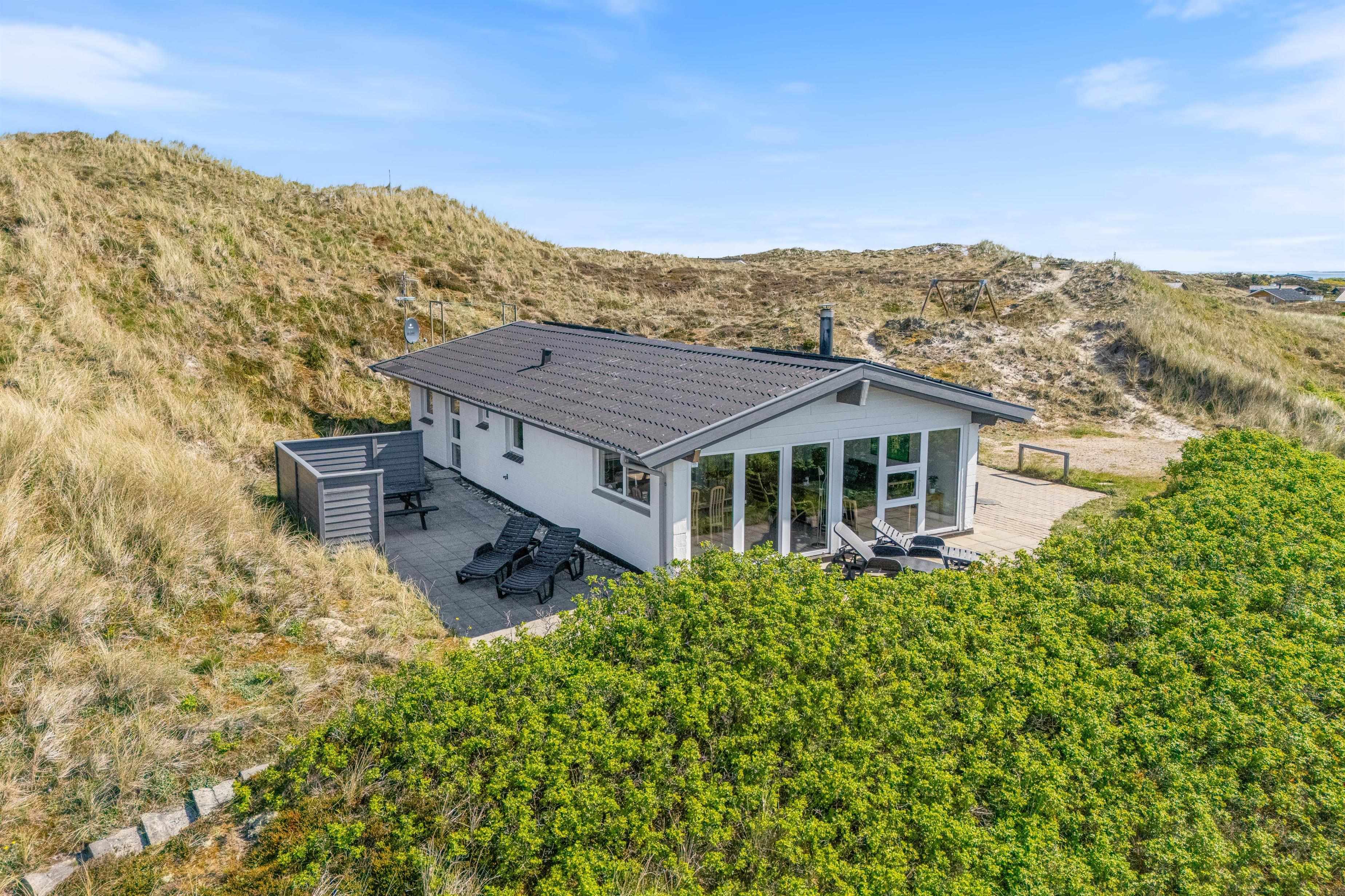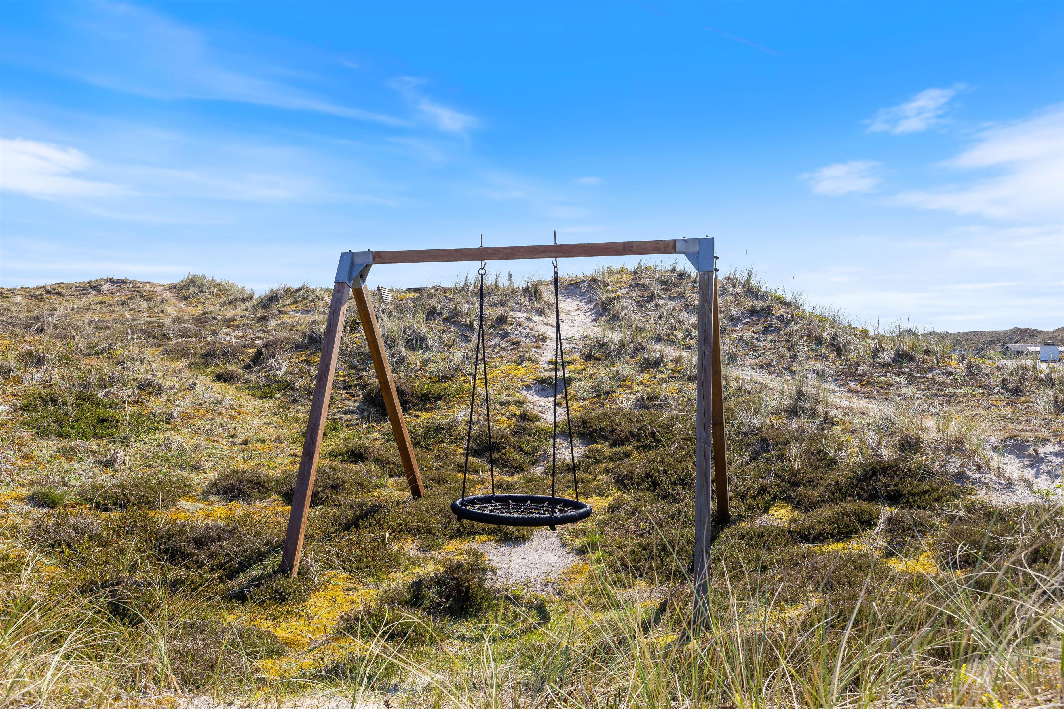 På klitgrunden finder I en gynge, der vil begejstre de mindste i familien. Den store klitgrund indbyder til både leg og afslapning, og I kan nyde solen og den friske luft i de dejlige omgivelser. For dem der ønsker at udforske området, er der kun 4500 meter til nærmeste indkøbsmuligheder, ideelt til en frisk gå- eller cykeltur. Nærheden til havet betyder også, at I kan tage en dukkert eller nyde en afslappet gåtur langs stranden når som helst. Gå ikke glip af at opleve solnedgangen i Vesterhavet – det er en oplevelse i al slags vejr.