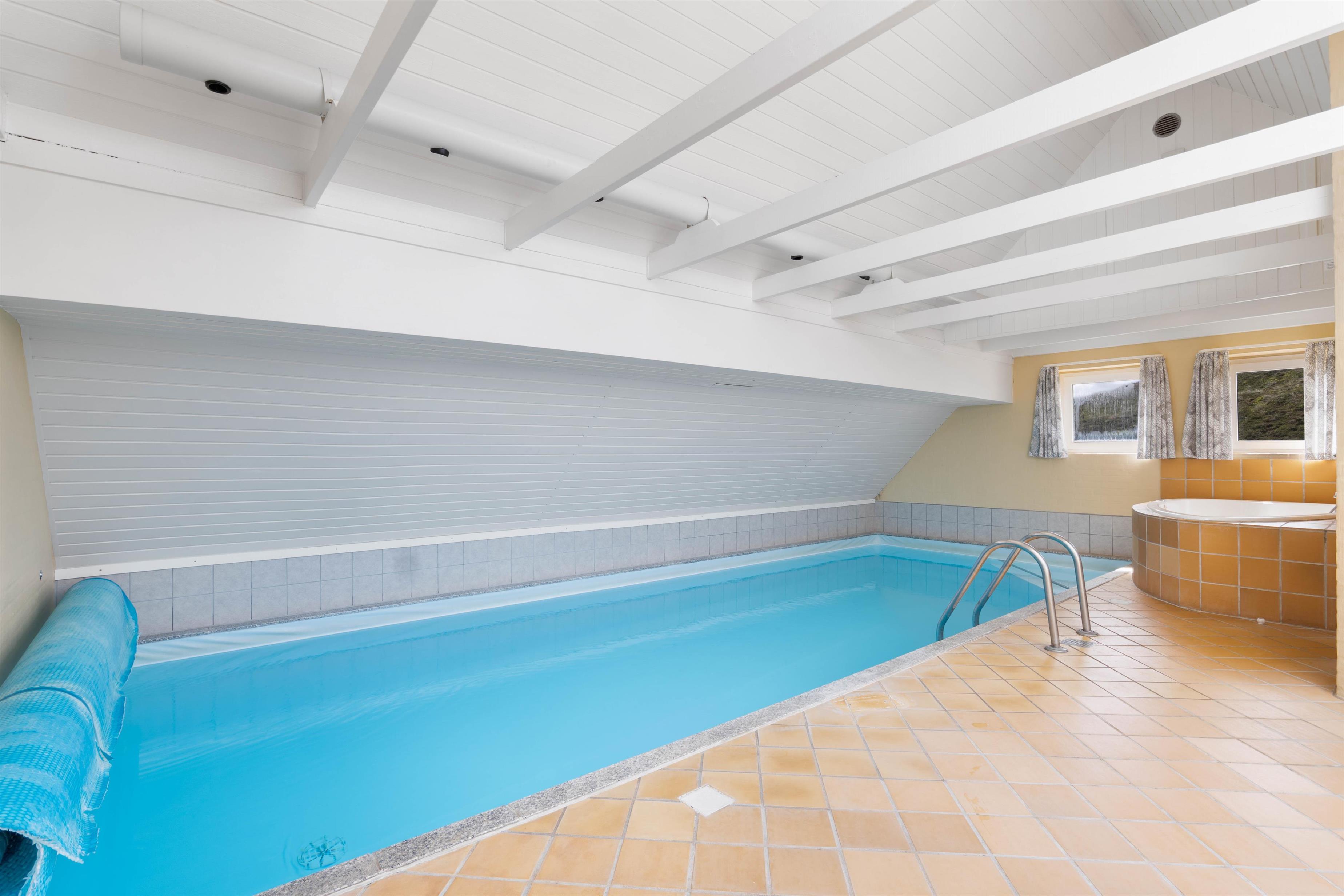 Skodbjergevej 28 er beliggende midt i naturen og der venter spændende oplevelser på jer her. Dette lyst indrettede sommerhus har sit eget poolområde med 20 kvadratmeter pool, spabad og sauna. Med den energibesparende varmepumpe kan du få behagelige temperaturer selv på kolde dage. De store ovenlys giver masser af lys og skaber en lys og imødekommende atmosfære.