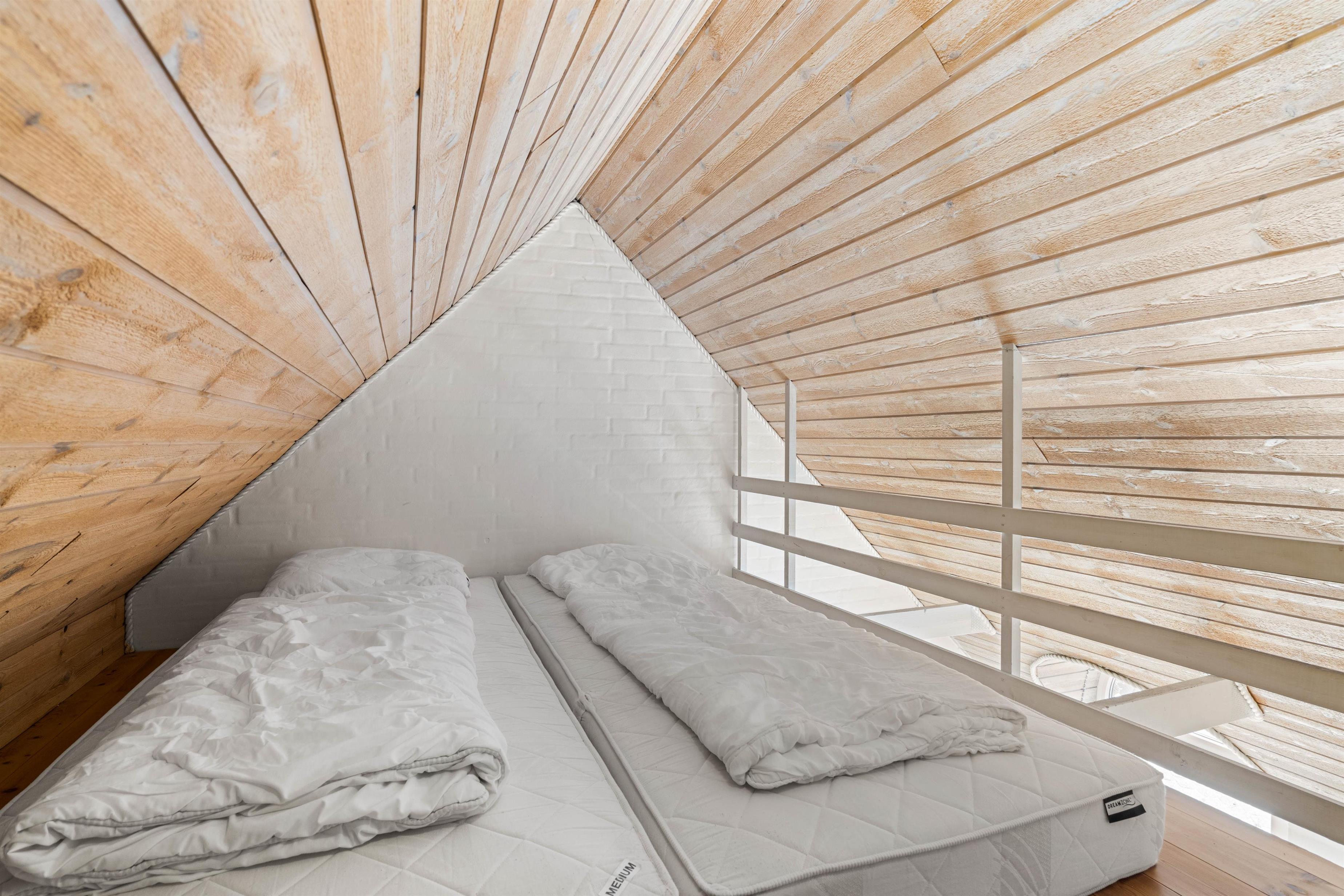 De 2 badeværelser med gulvvarme bidrager til at forhindre trafikpropper om morgenen. Her kan du også vaske og tørre tøj. 4 soveværelser med komfortable dobbeltsenge og hems med 2 ekstra senge sikrer en god nats søvn i den friske luft efter en spændende dag på Vestkysten.