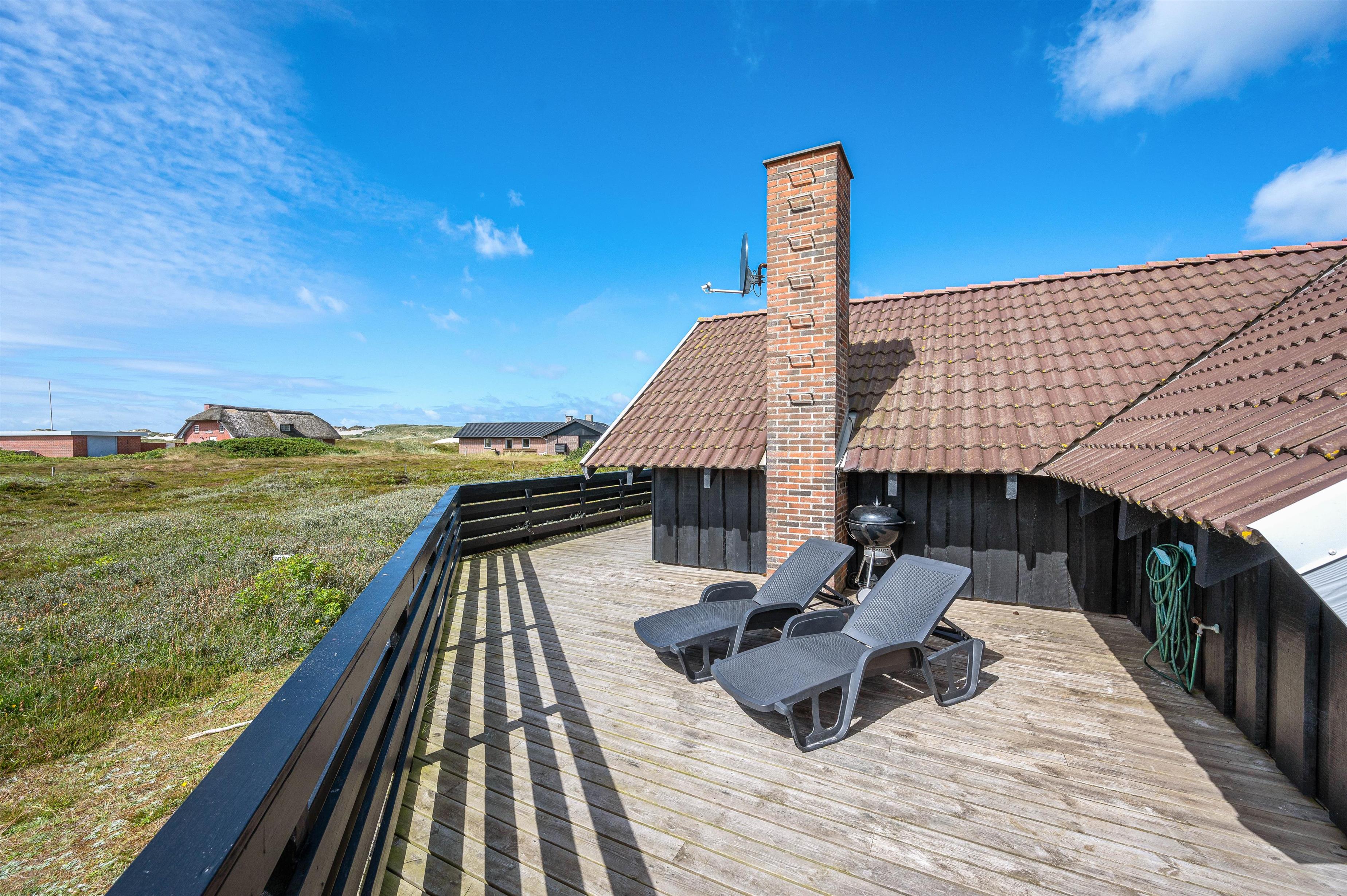 Den lukkede terrasse strækker sig om feriehuset fra øst og mod syd, og er intet mindre end fantastisk. Den er både delvis afskærmet og delvist overdækket, og er et vidunderligt sted at opholde sig, både for voksne, børn eller familiens hund.