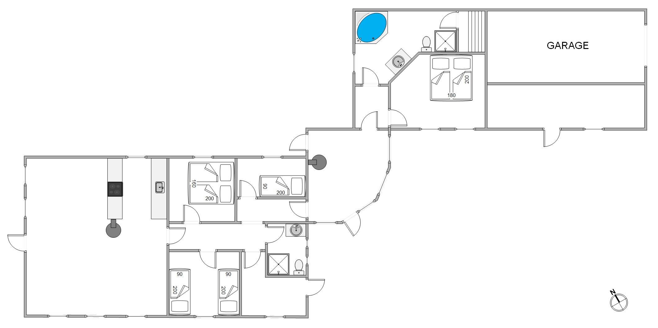 Huset er til 7 personer, og med 2 badeværelser, ideelt til den store familie eller to familier, der gerne vil holde ferie sammen.