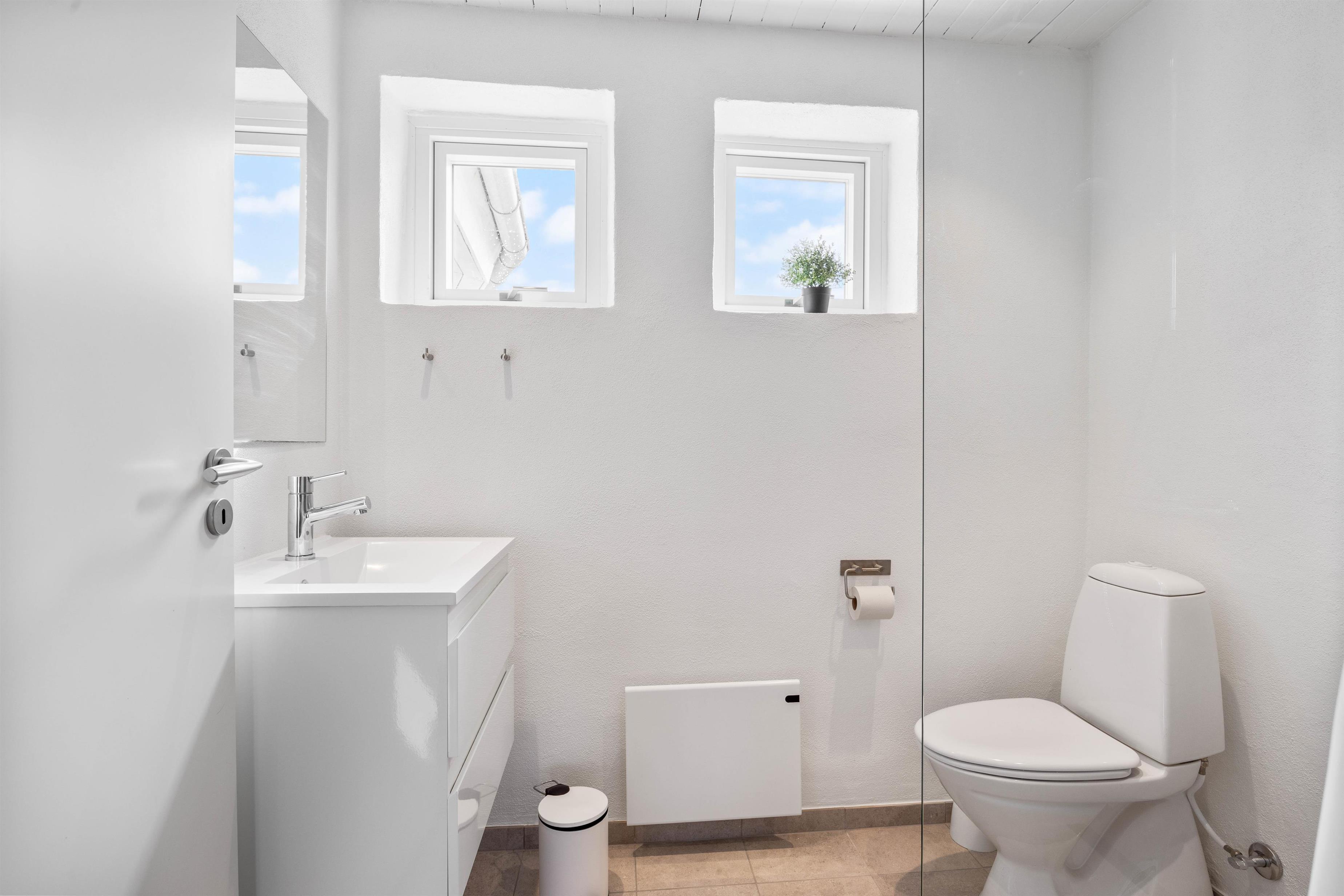 Med hele 2 badeværelser undgår man køen til tandbørstningen. I det ene badeværelse er der desuden en lille wellness afdeling med spa og sauna. Her kan der rigtig slappes af og løsnes op for ømme muskler efter en lang dag i klitterne eller ved stranden.