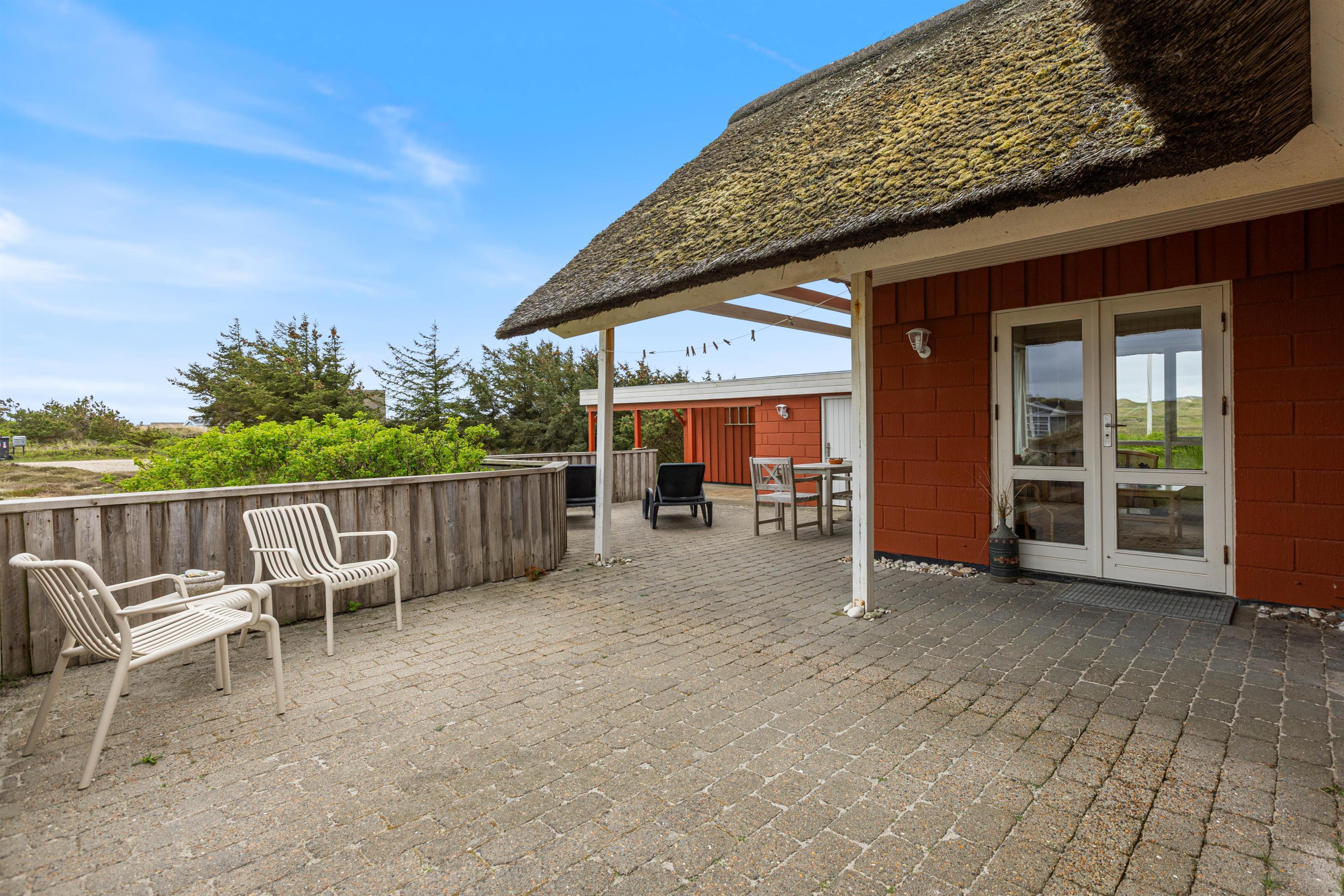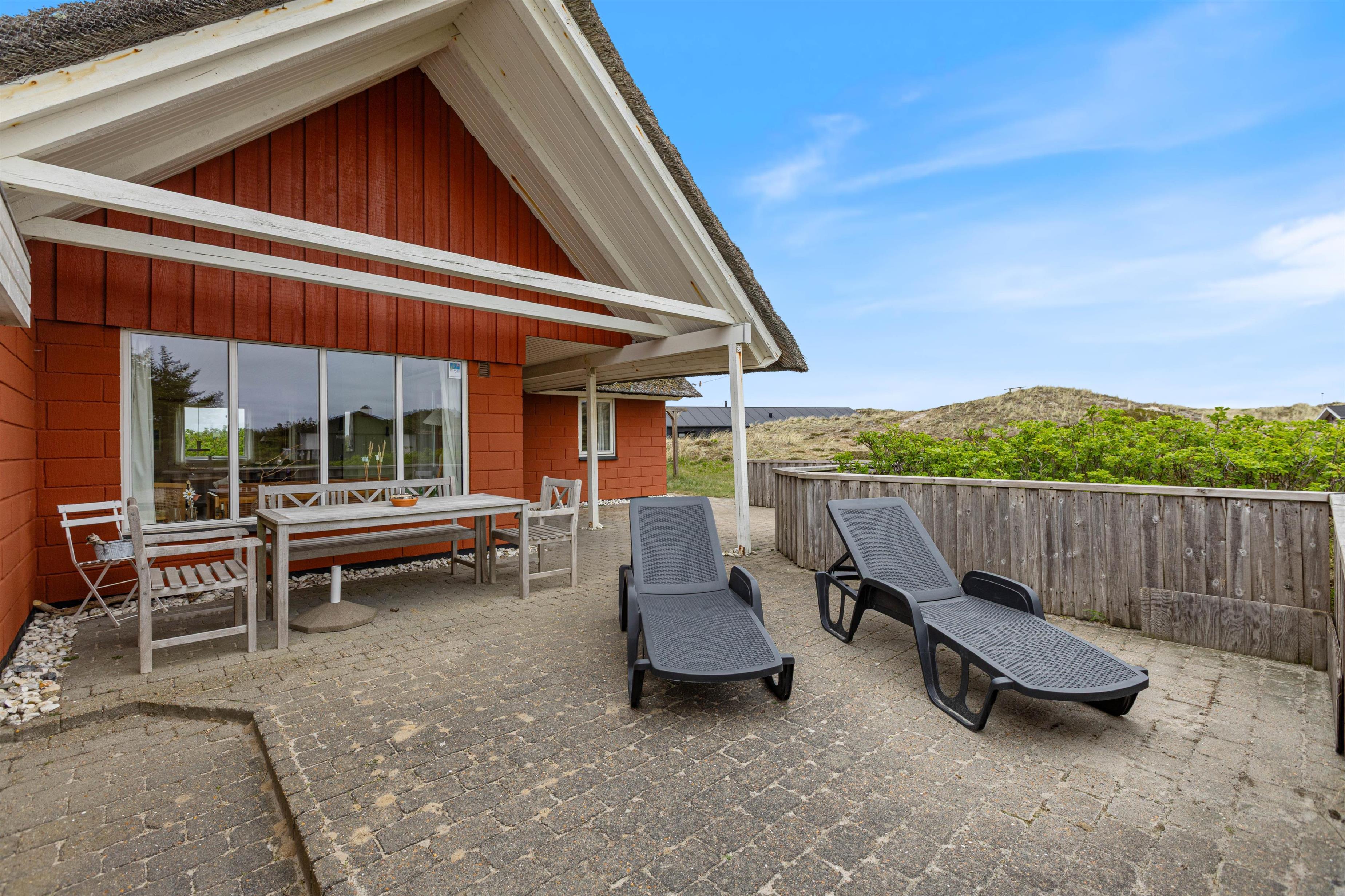 Lad batterierne op på en af sommerhusets dejlige afskærmede terrasser, hvoraf den ene er delvist overdækket. Du kan som regel altid finde en dejlig læfyldt plet, hvor du kan nyde den friske luft. Efter en god dag på stranden, kan I nyde en god bøf fra grillen og slappe af til lyden af Vesterhavets brusen, imens solen langsomt går ned.