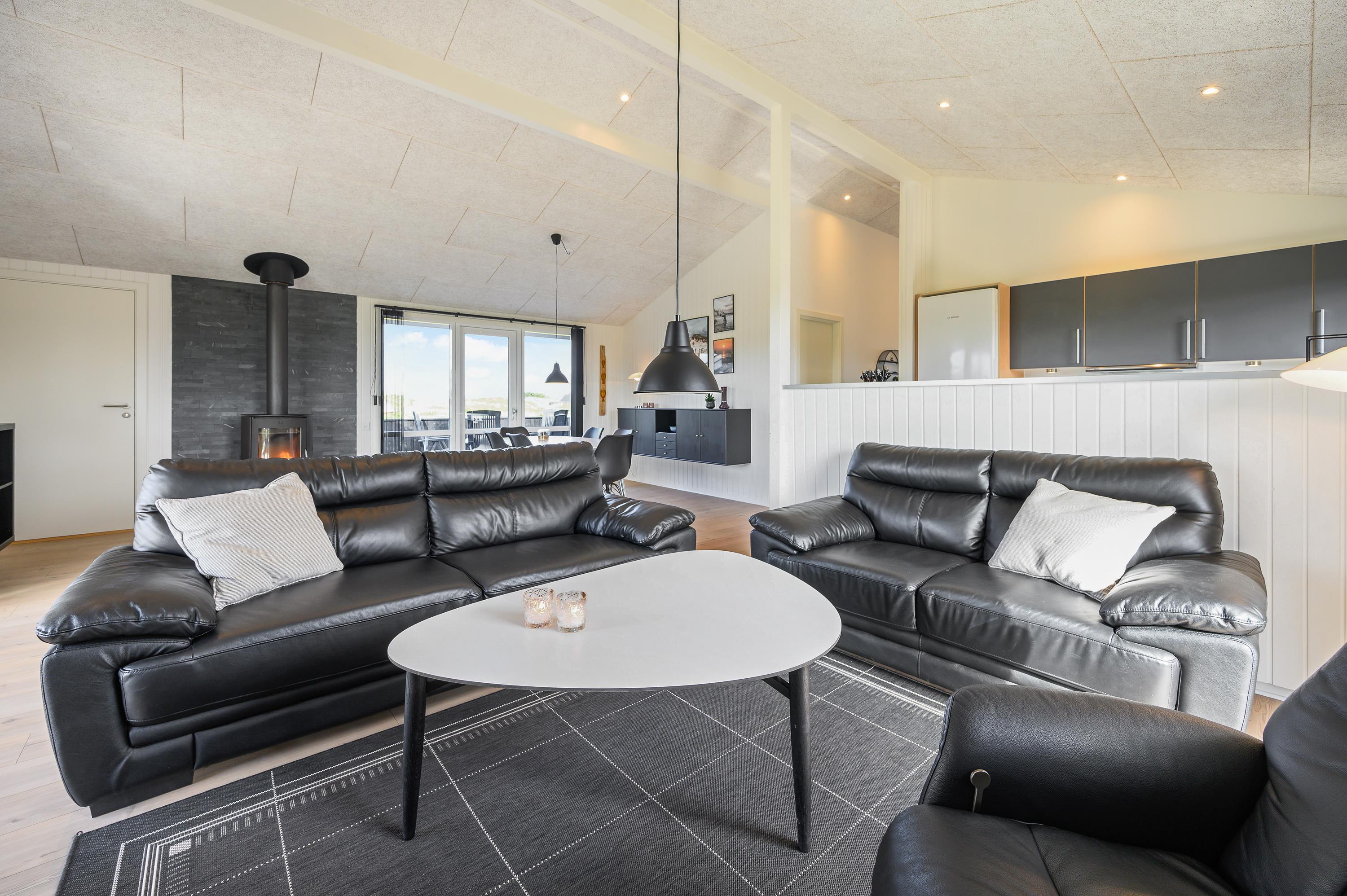 Hjertet i huset er køkkenet og stuen, som er direkte forbundet. Her kan hele familien kokkerere og nyde dejlige middage sammen. Om aftenen kan I samles til spilleaftner i brændeovnens skær med den varme knistren som hyggelig baggrundslyd.