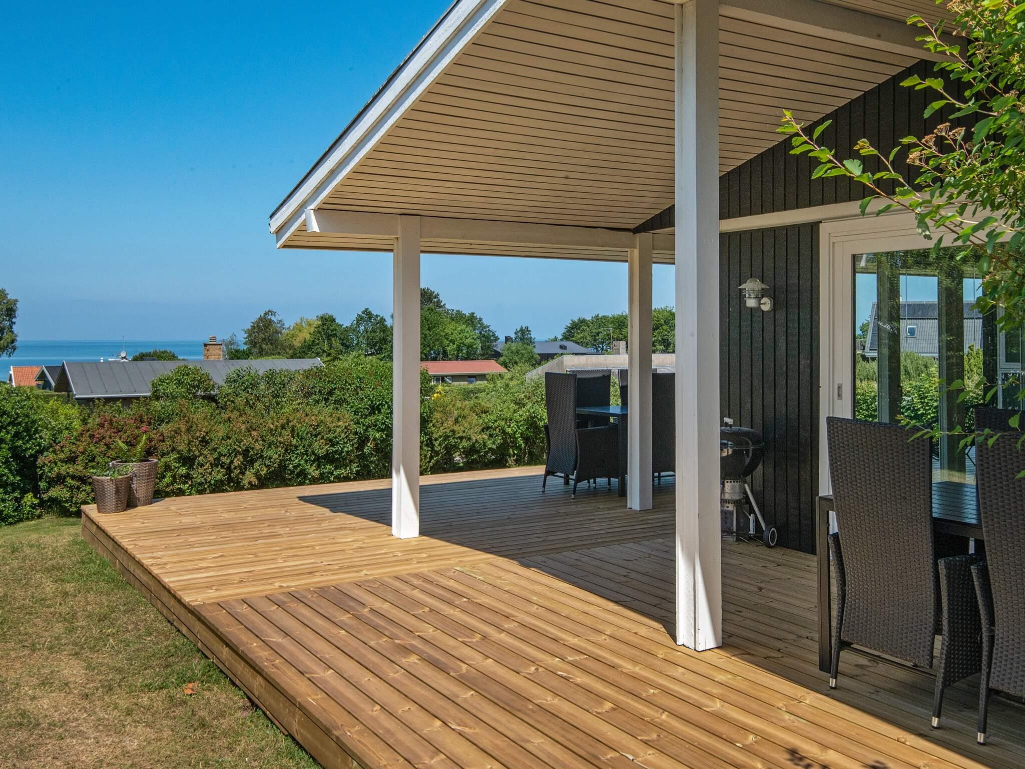 Højtbeliggende sommerhus med en enestående havudsigt fra såvel køkken som stue og værelser. Huset er indrettet med et veludstyret køkken, hvor I fra spisepladsen, som ligger i umiddelbar forbindelse med køkkenet, kan nyde jeres frokost. Desuden er der i tilknytning til huset en stor grund, der indbyder til leg og boldspil. Der er en 60 m² åben terrasse og en 50 m² lukket terrasse rundt om stort set hele huset. Fra terrassen har I et fantastisk overblik over området samt kig til stranden samt en enestående havudsigt med solnedgang. Stranden ligger ca. 2 min gang væk og er en absolut god badestrand. Der er købmand på campingpladsen ca. 300 m fra huset.