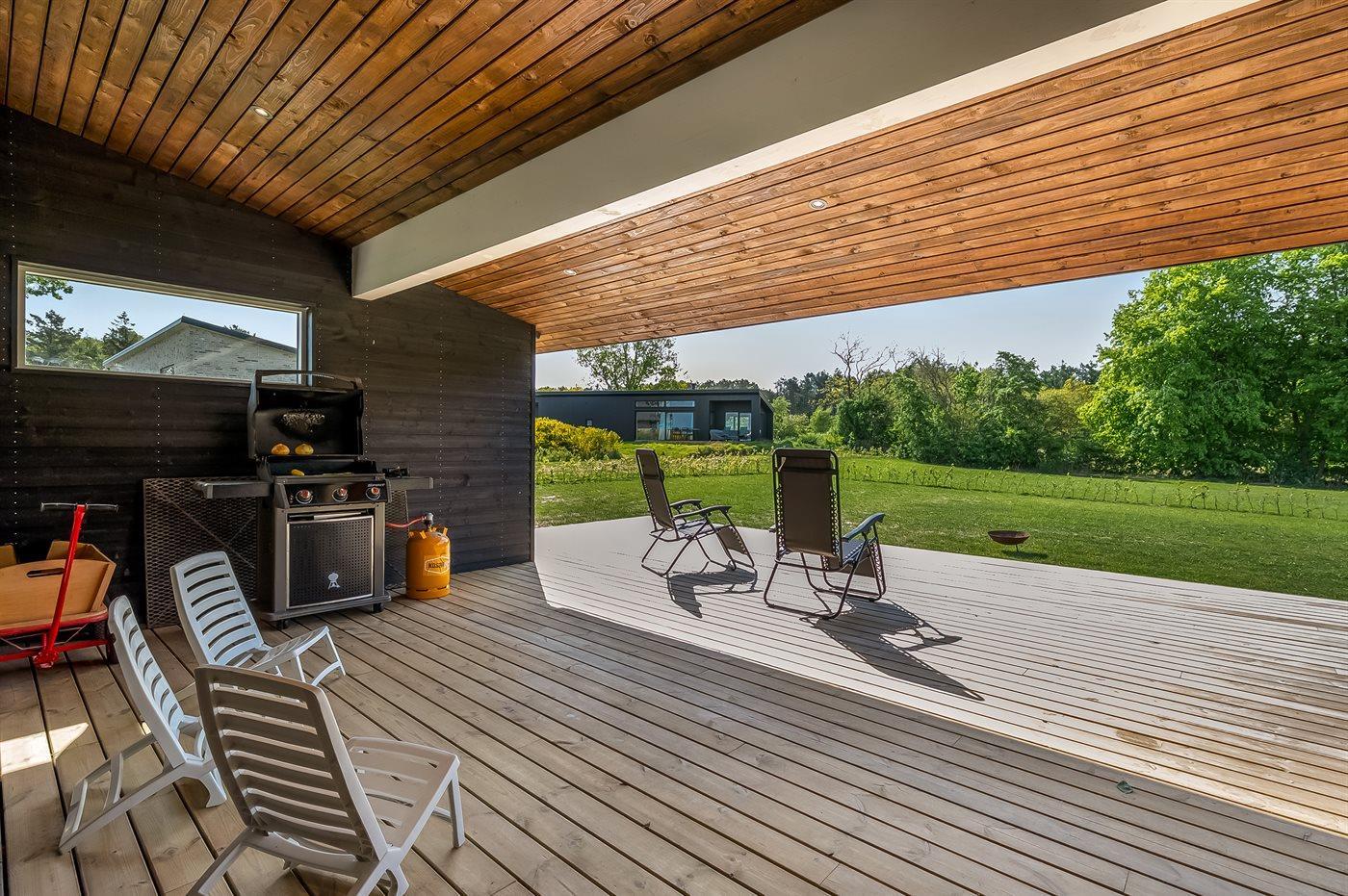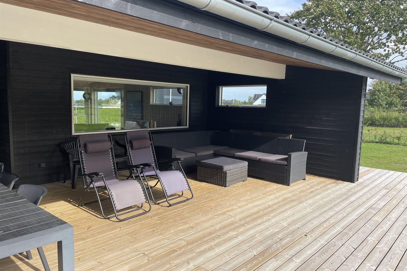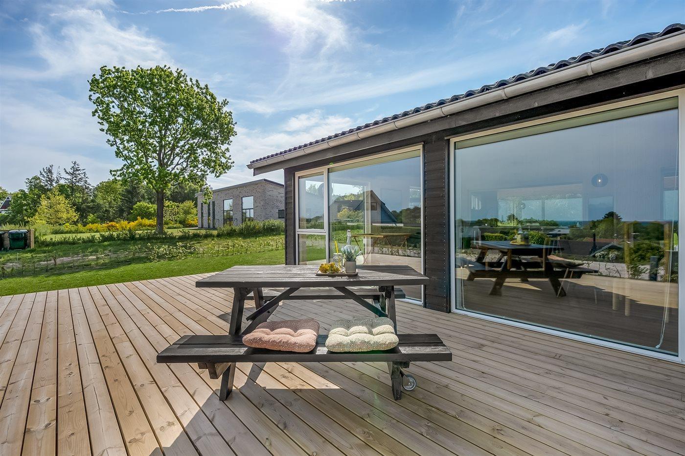 Til huset hører også nogle fantastiske terrassearealer, som fordeler sig på begge sider af huset. Den store overdækkede terrasse ud mod haven er oplagt til at sidde i ro og mag og nyde stilheden alt imens du sidder og ser på børnene, som leger i haven. På forsiden af huset findes endnu en skøn terrasse, hvor den flotte udsigt virkelig er i højsædet – her kan du sidde med et godt glas vin eller en kop kaffe og nyde de flotte omgivelser.
