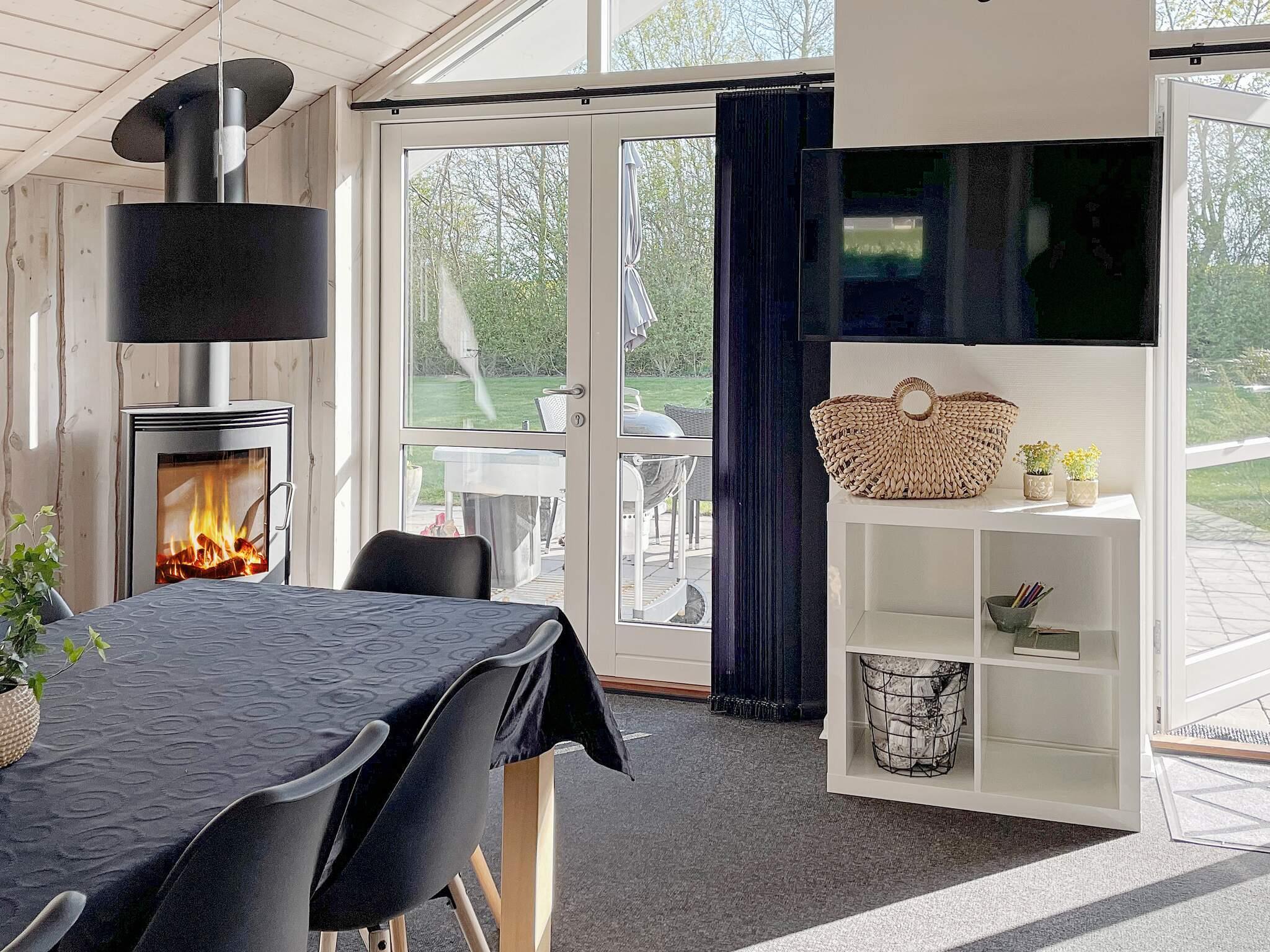 Interiøret indeholder en lys opholdsstue med brændeovn til ekstra hygge på køligere dage samt en energivenlig luft-til-luft varmepumpe. For familier med små børn er en højstol til rådighed. Layoutet sikrer et behageligt ophold, mens spabadet tilføjer et strejf af luksus til din ferieoplevelse. Boligen er velegnet til både afslapning og kvalitetstid sammen efter dage med at udforske den nærliggende strand og landskab.