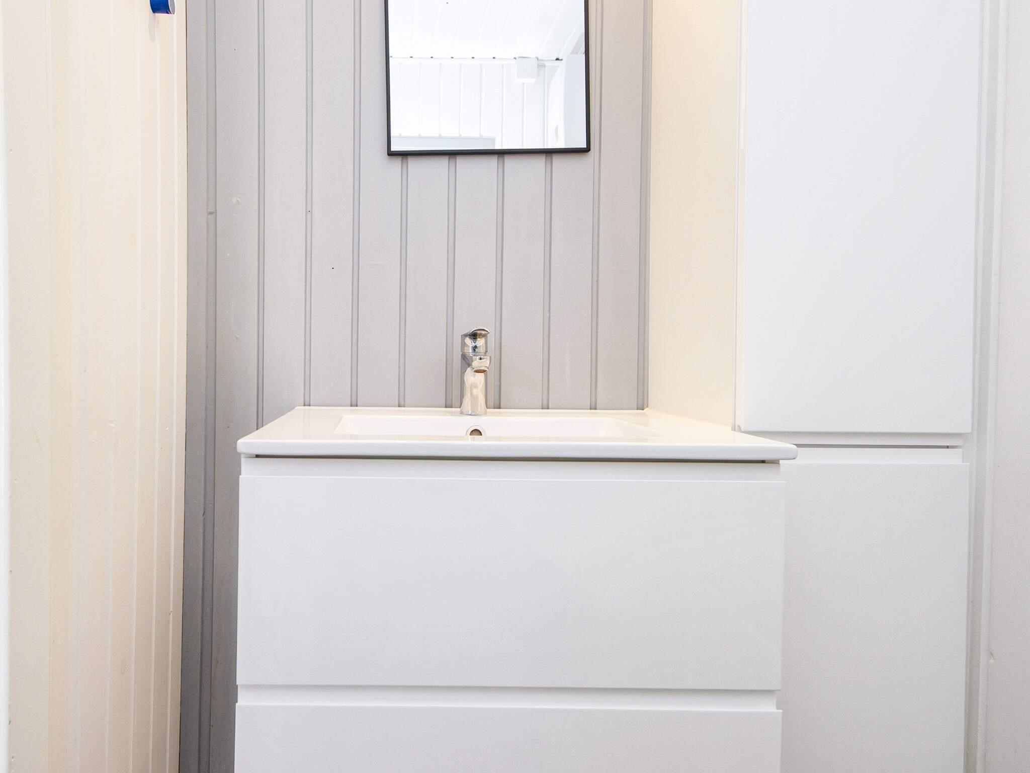 Dette sommerhus ligger tæt på den børnevenlige badestrand i Skovmose. Huset er indrettet med mange hyggelige detaljer, både inde og ude, hvor I altid kan finde læ og varme. Dejlig komfortabel sofagruppe og godt lysindfald takket være det store vinduesparti. Stuen ligger i åben forbindelse med køkkenet, som er udstyret med alle nødvendige faciliteter som ovn/komfur og opvaskemaskine. På terrassen har I både mulighed for at sidde overdækket og under åben himmel. Udlejes ikke til ungdomsgrupper.