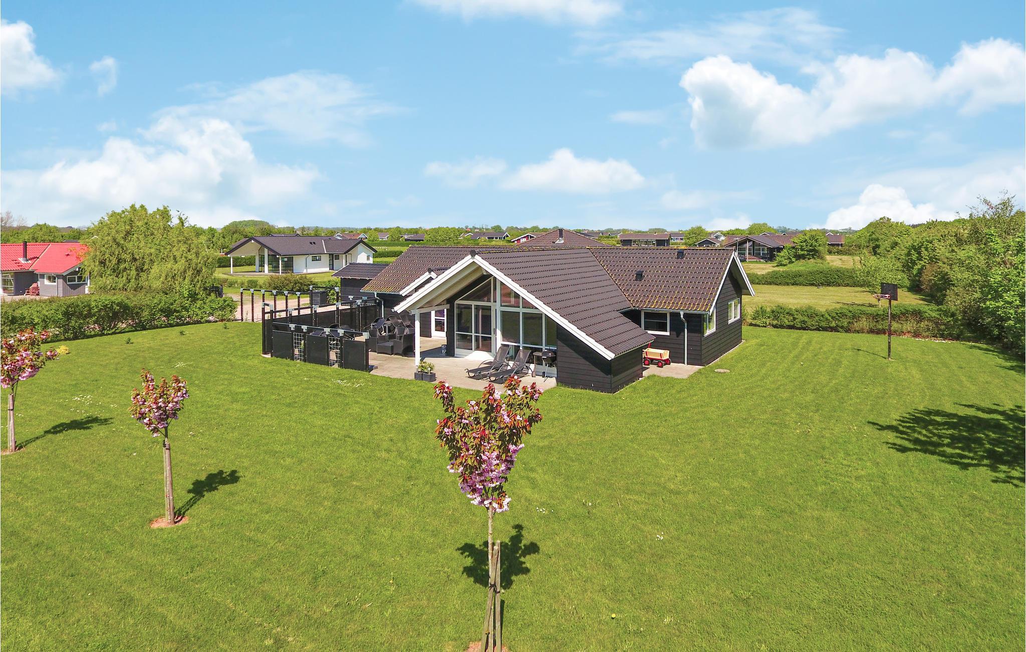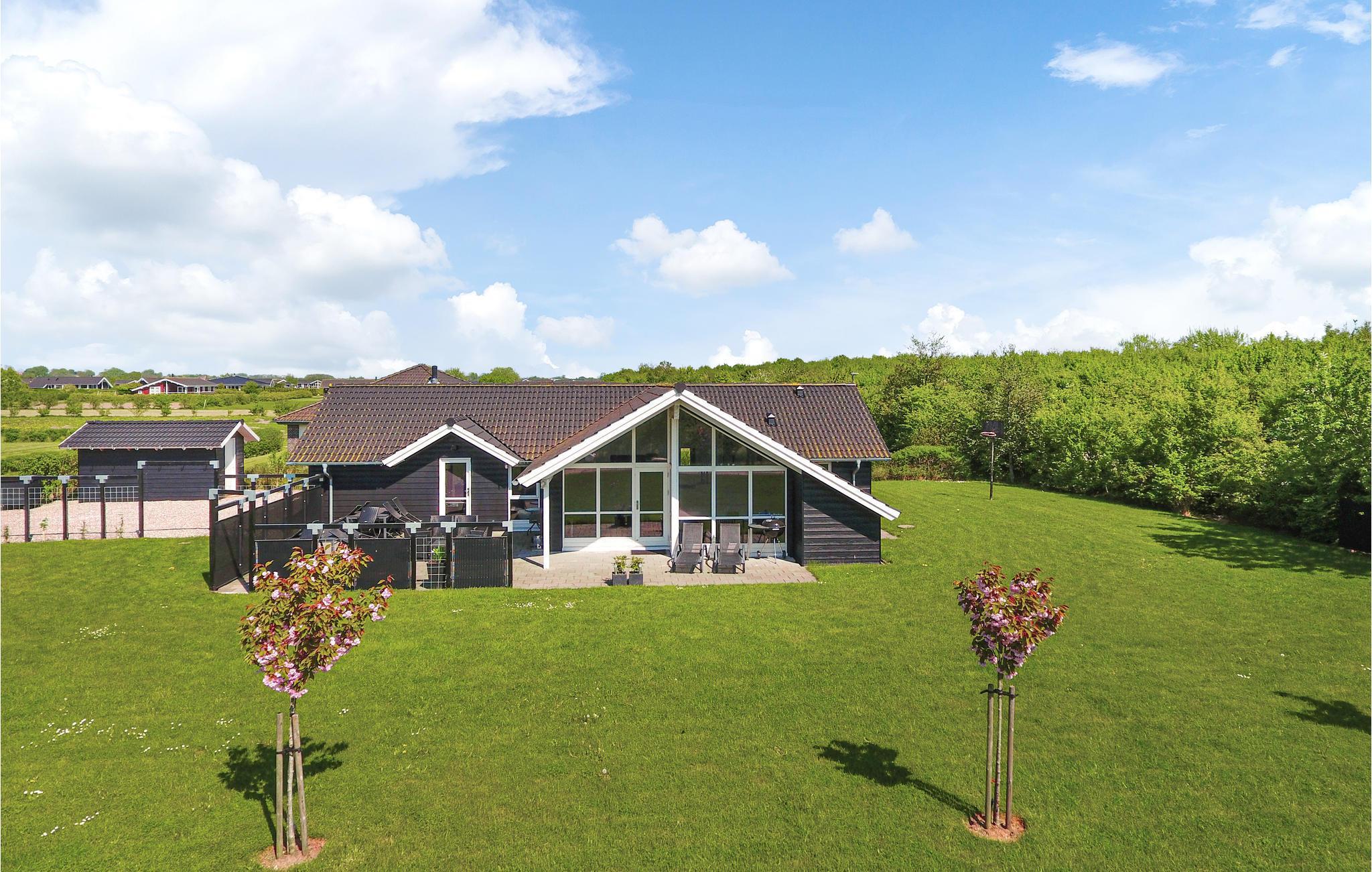 Rummeligt feriehus i Skovmose med aktivitetsrum, spabad og tæt på sandstrand og Sønderborg.