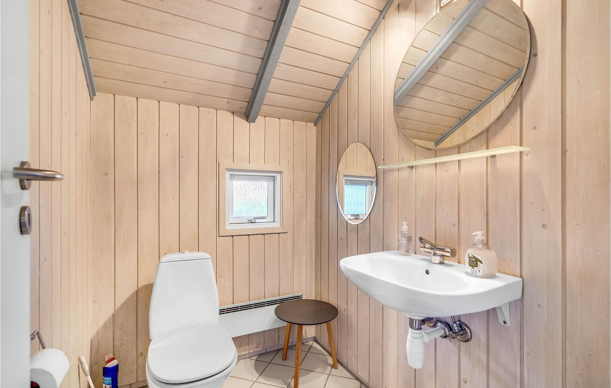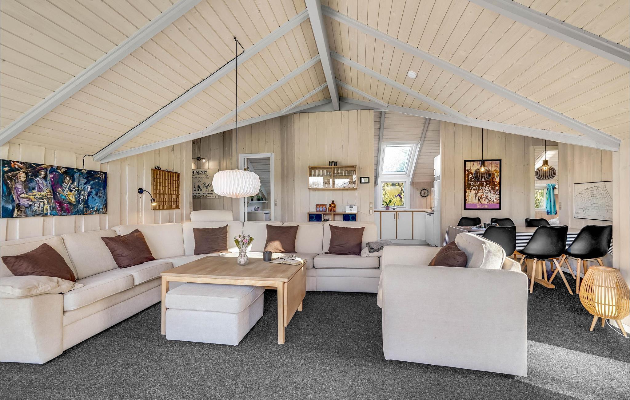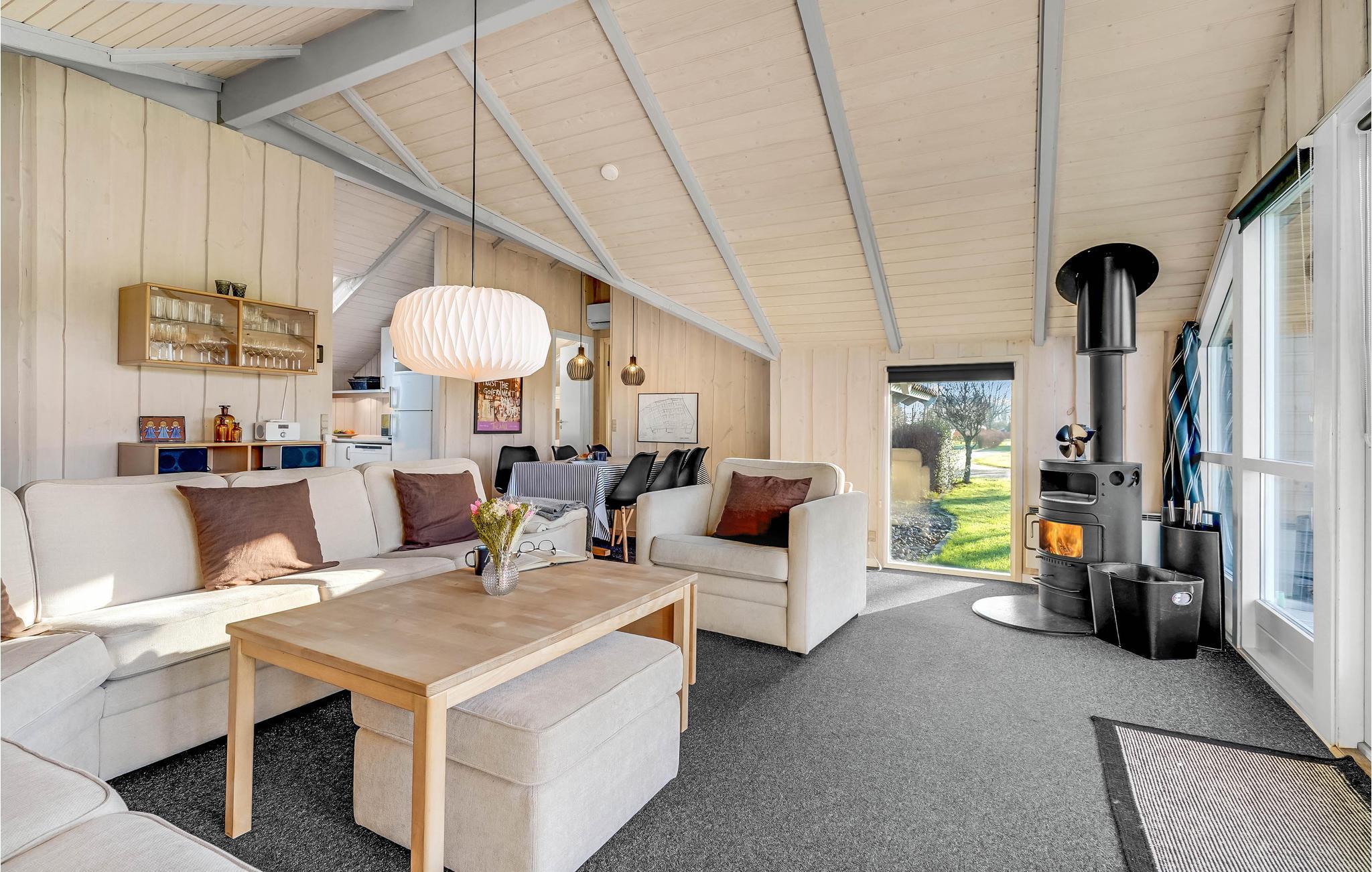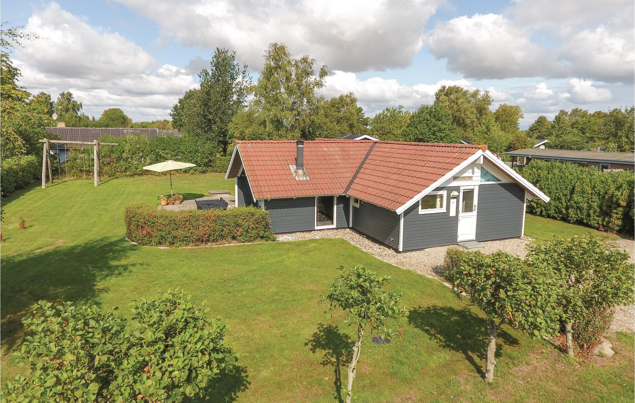 Hyggeligt træferiehus nær børnevenlig strand i Skovmose med sauna og spabad til afslappende familieferie.