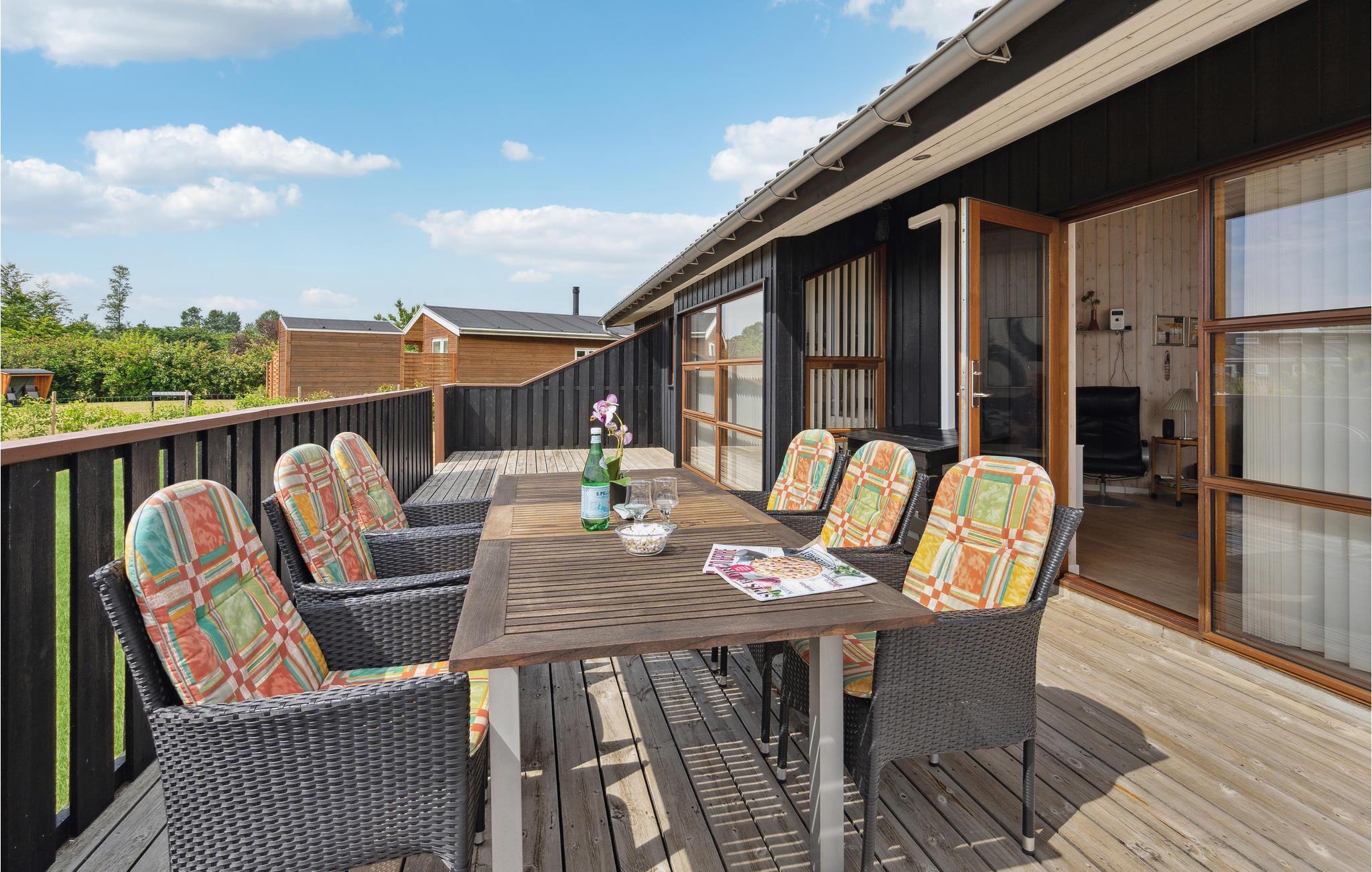 Et flot og indbydende feriehus med fin plads til seks personer. Det er beliggende i den nye del af Skovmose området, hvor der er gåafstand til den børnevenlige badestrand. Huset er hyggeligt indrettet med et dejlige stue/køkkenareal med spiseplads, tre soveværelser, et badeværelse med spabad og sauna samt et gæstetoilet. På den solrige og afskærmede terrasse kan I ugenert sidde og nyde ferien fuldt ud på de dage hvor vejret er til det. I nærheden ligger den charmerende by Sønderborg, hvor I finder alt hvad I skal bruge af shopping- og indkøbsmuligheder, seværdigheder og kulturelle oplevelser. Besøg også den atmosfærefyldte havn, hvor I kan nyde en kop kaffe på en af de mange caféer.