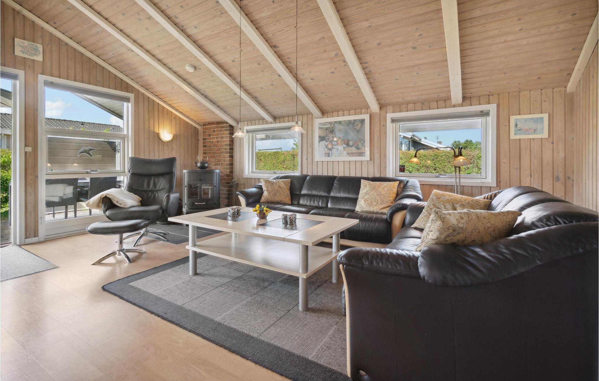 Pænt indrettet feriehus med kombineret stue og køkken. Huset er indrettet med komfortable og funktionelle møbler, som sørger for et behageligt ophold hjemme i huset. Her kan I samles i de bløde lædermøbler omkring sofabordet og spille et spil eller bare slappe af med avisen eller en god bog. Huset har et fint køkken med alle moderne fornødenheder og rigelig bordplads. Det ligger på en dejlig naturgrund, der grænser op til et stort, fredet græsareal.