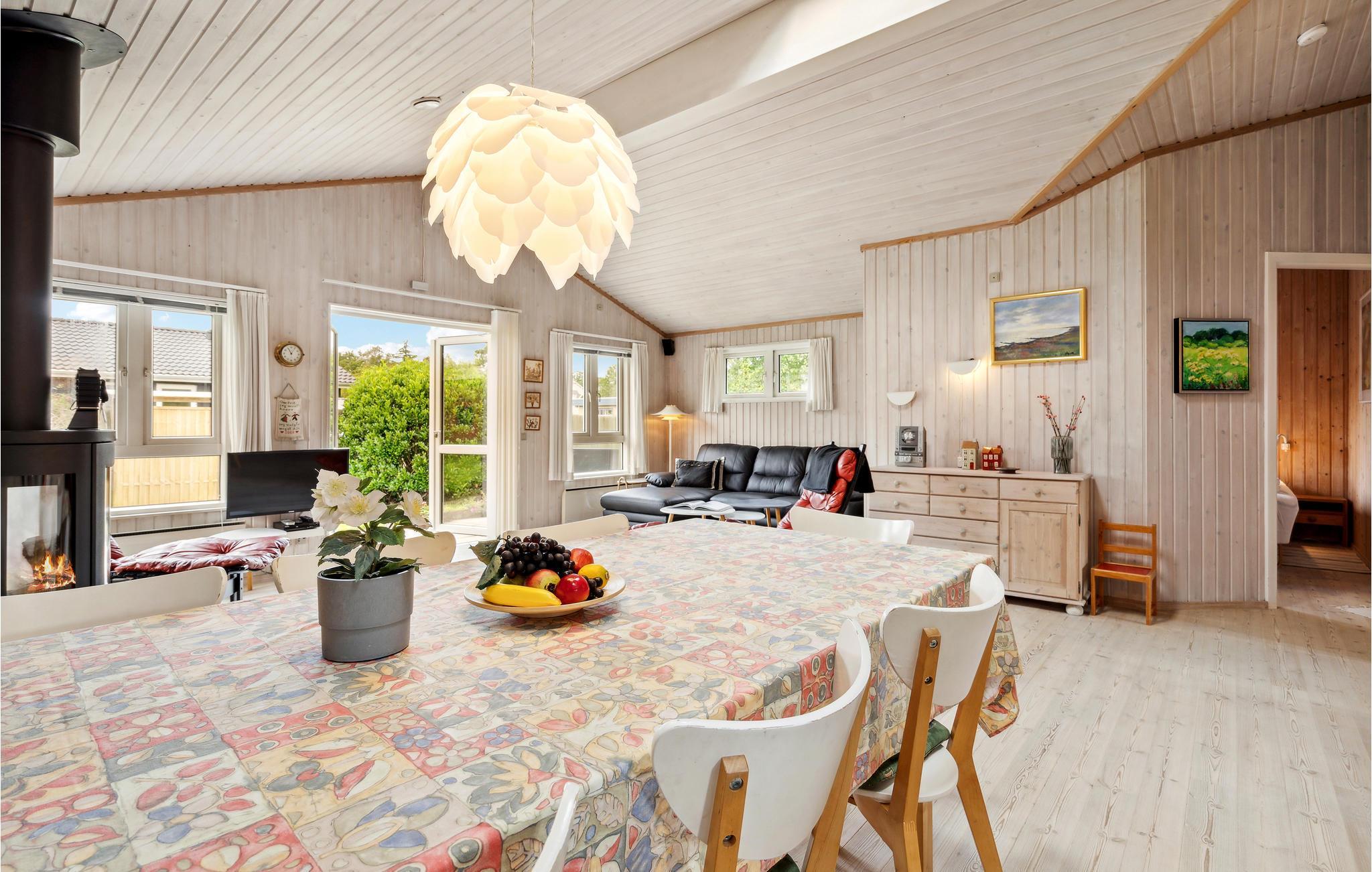 I fredfyldte Skovmose på Sydals inviterer dette familievenlige feriehus med sauna og spabad indenfor. Det velindrettede hus byder på en lys og venlig atmosfære med nøje udvalgte farver. Planlæg jeres aktiviteter og udflugter over middagen ved spisebordet og sæt jer med en god bog og en kop te i den røde lænestol nær brændeovnen. Smæk de ømme fødder op i sofaen efter en lang vandretur og spil et slag kort eller slap af i saunaen og spabadet. Måske skal I snart smage den lækre kage, som I har bagt sammen med jeres børn? Nyd også udelivet og tilbring en masse tid i haven. Indtag liggestolene med en god bog ved siden af terrassen eller leg med jeres børn på græsplænen. Senere kan I nyde forfriskninger under parasollen. Fra feriehuset, som ligger i 2. række til stranden, er der kun få skridt til den familievenlige sandstrand. Snup strandtasken, hop i vandet og led efter rav på stranden.