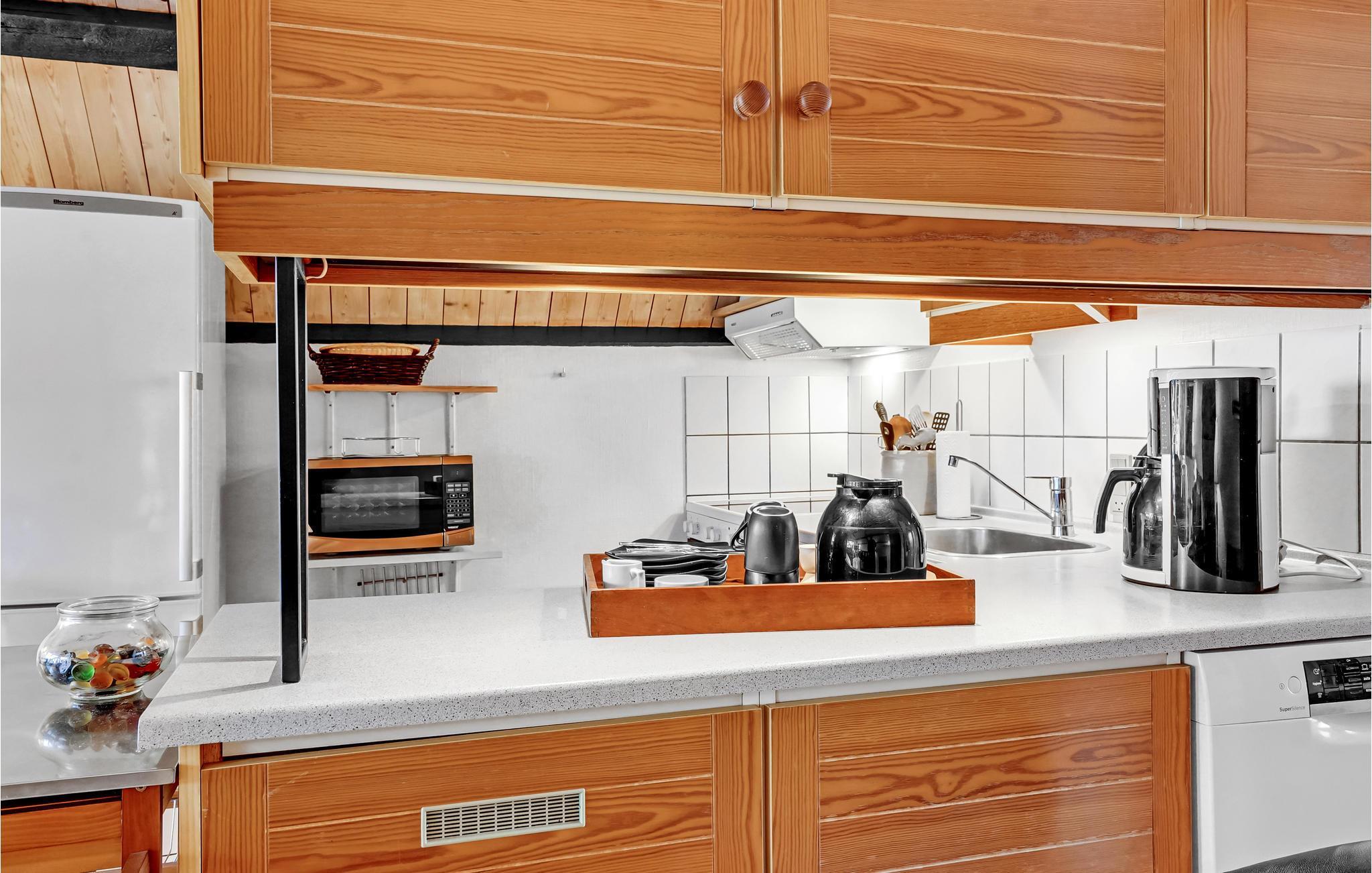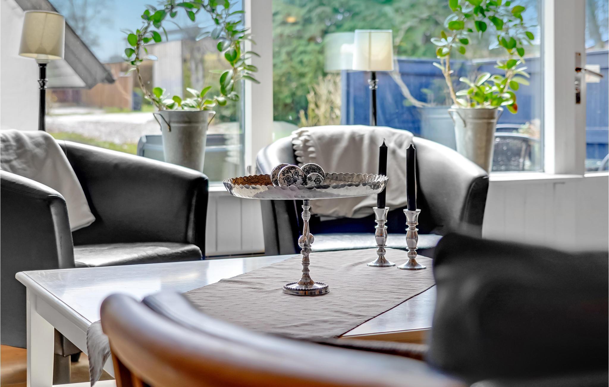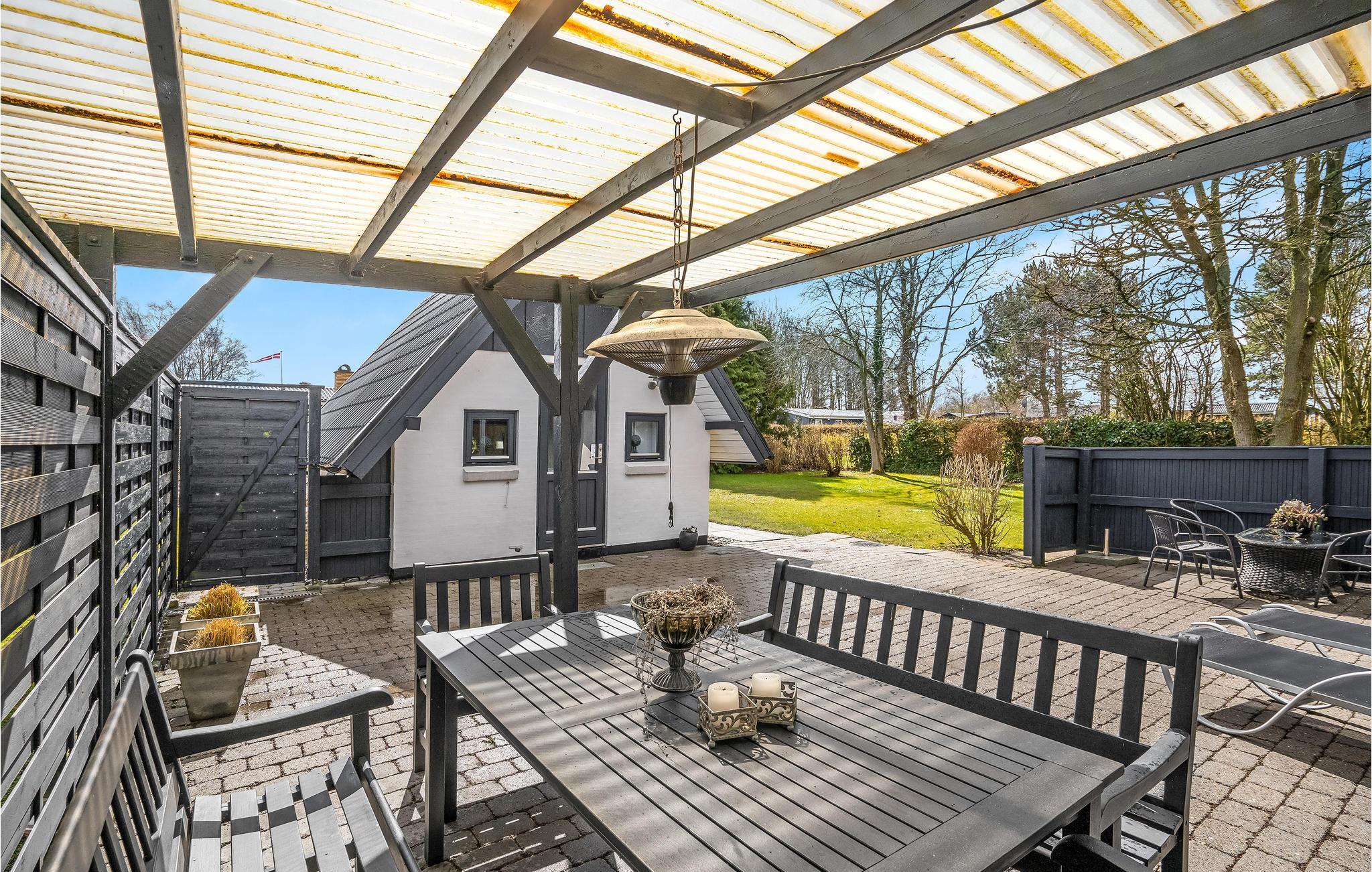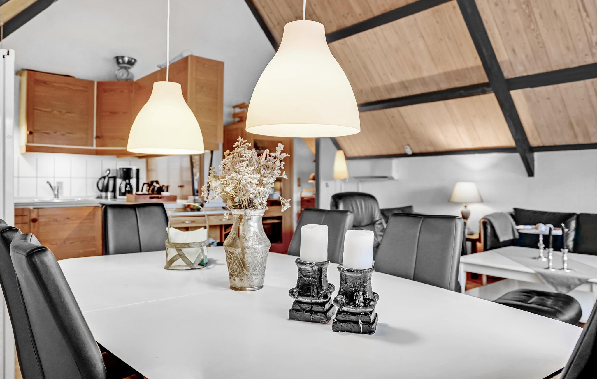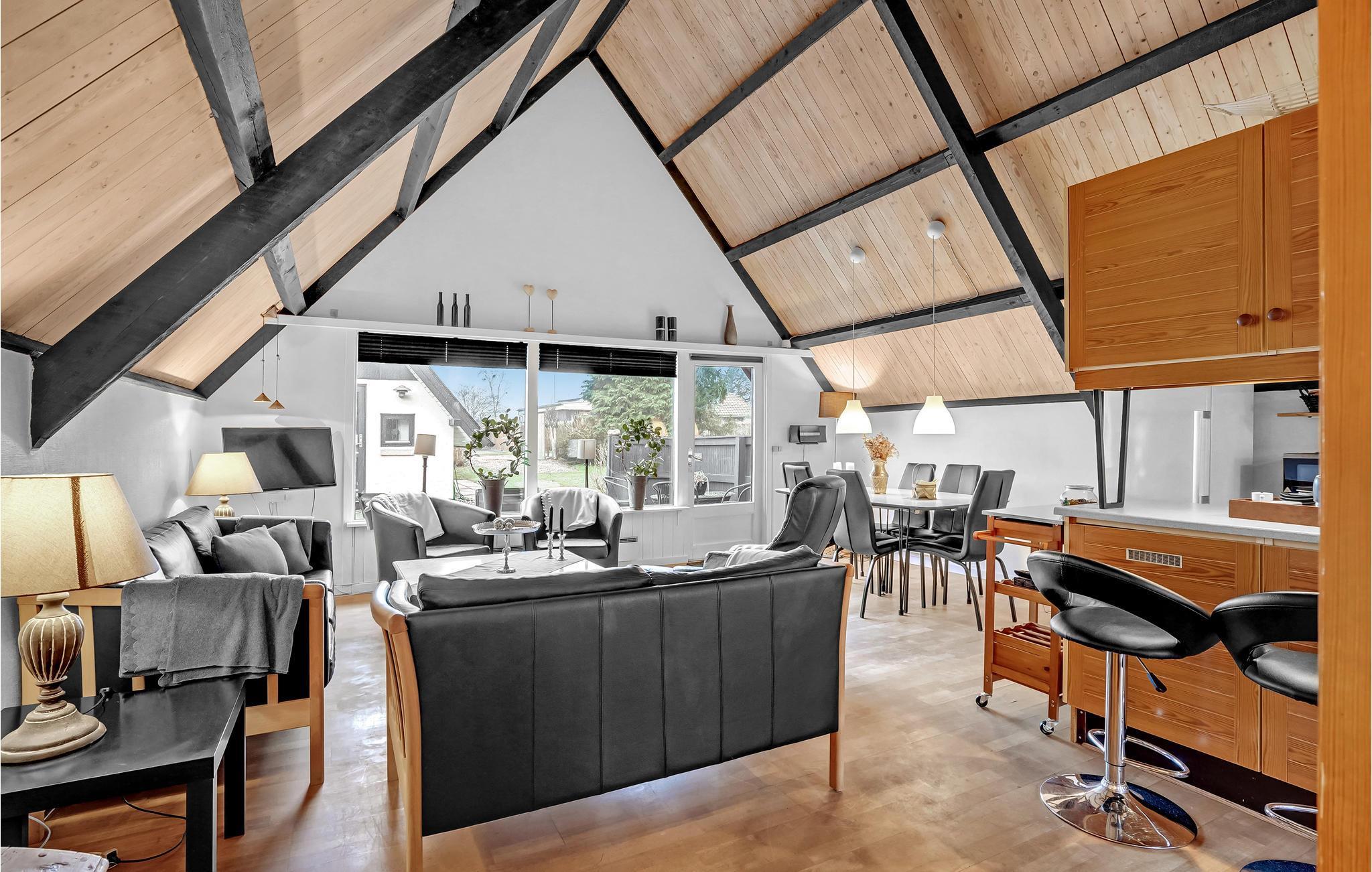 Dette indbydende feriehus ligger i anden række til havet, så I kan nå den børnevenlige sandstrand med gode bade- og fiskemuligheder på få skridt. Selve huset er smagfuldt indrettet med komfortable møbler af høj kvalitet. Åbent til kip i kombination med de mange træelementer og synlige træbjælker i loftet skaber en hyggelig atmosfære i den kombinerede spise- og opholdsstue. Huset består af to bygninger, forbundet af en stor fliseterrasse. I hovedhuset finder I førnævnte stue, hvor køkkenet også er, hvorimod den mindre bygning byder på sauna, badeværelse og et soveværelse. Der er yderligere et lille anneks i haven, hvor I finder et tredje soveværelse.